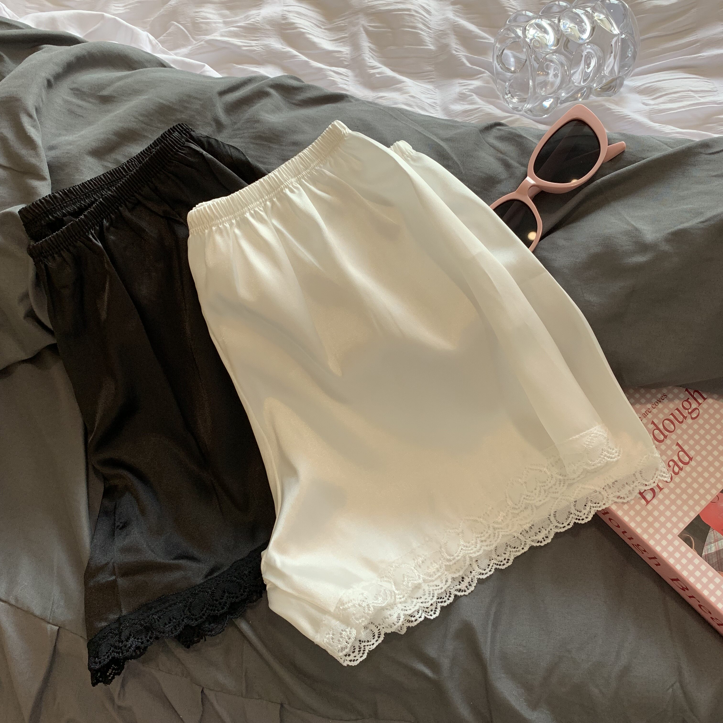 自畱款推薦~蕾絲花邊白色防走光打底褲女夏季內搭安全褲睡褲短褲