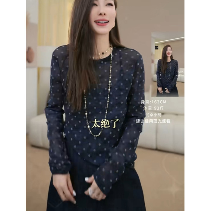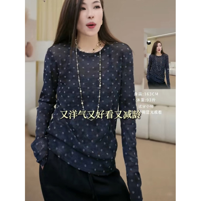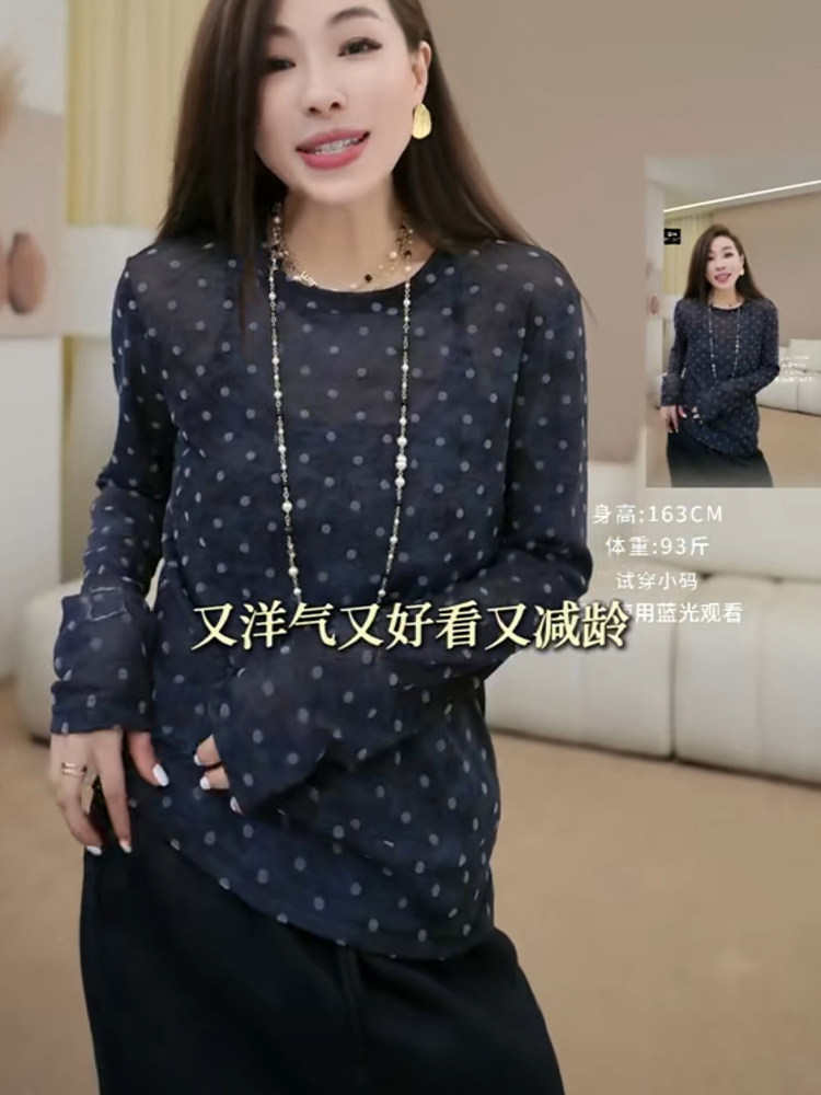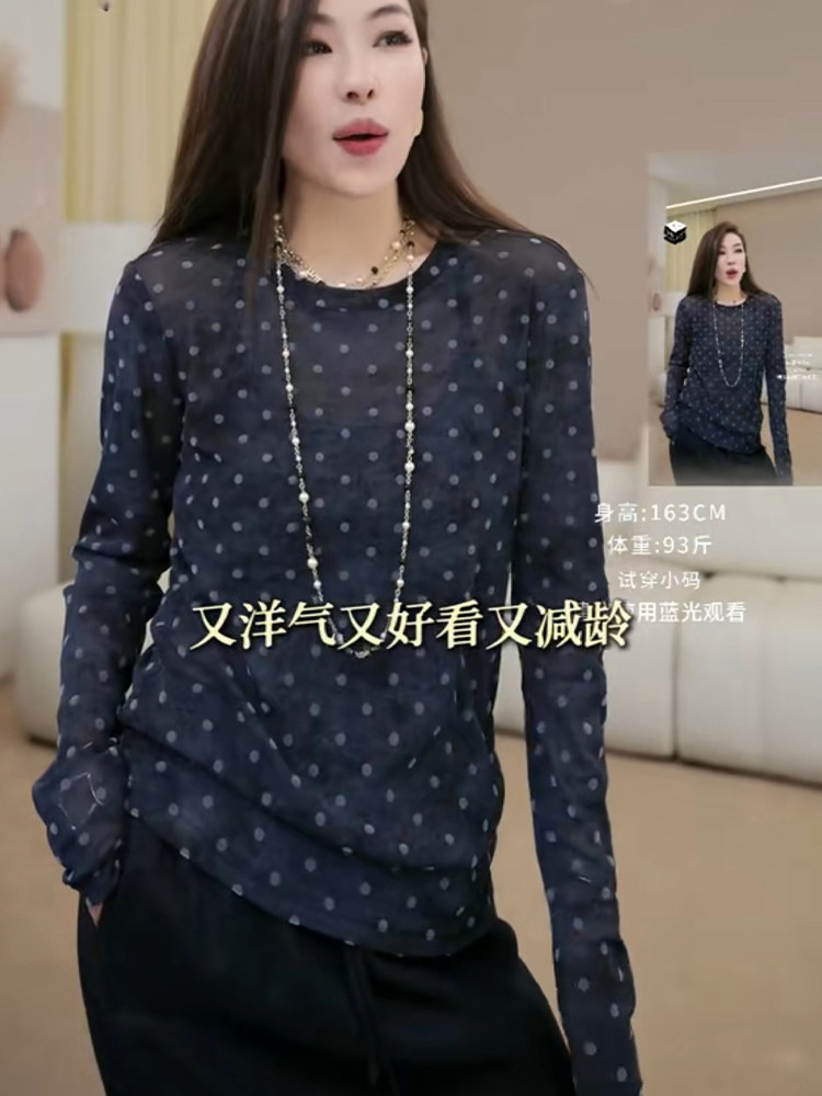 小衆韓版設計感波點輕薄長袖防曬t恤2025秋季微透顯瘦減齡上衣女