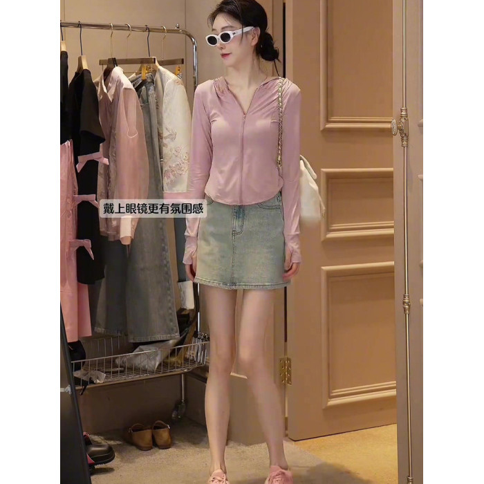 oajer歐紀兒旗艦女裝店鷗同款夏季款慵懶風甜辣修身短款防曬上衣
