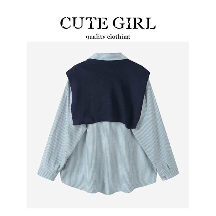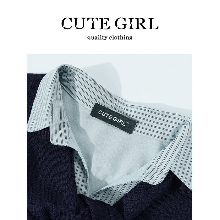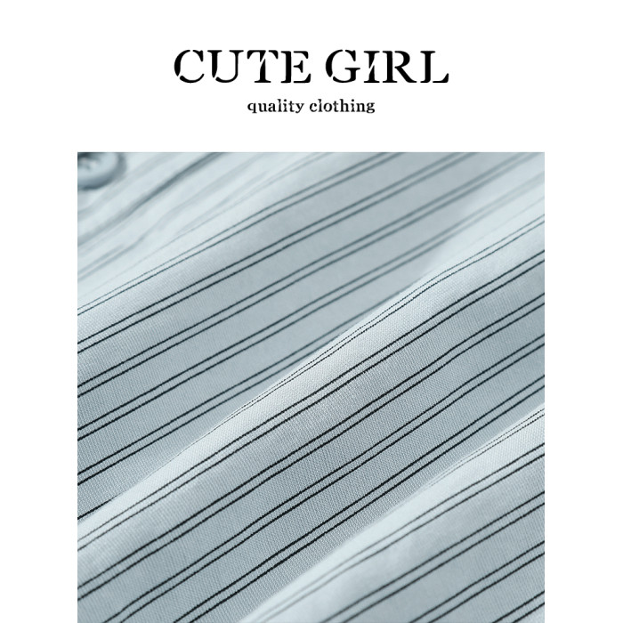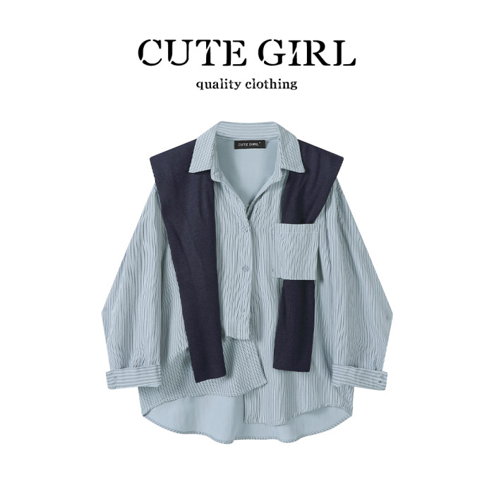 CuteGirl設計感條紋披肩Polo領襯衫女早秋季寬鬆休閒百搭通勤襯衣
