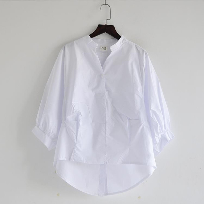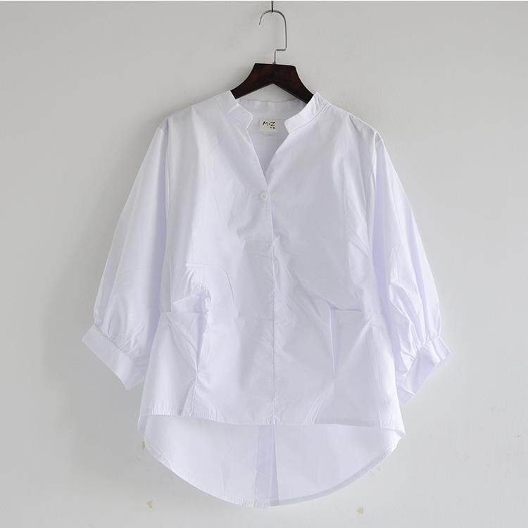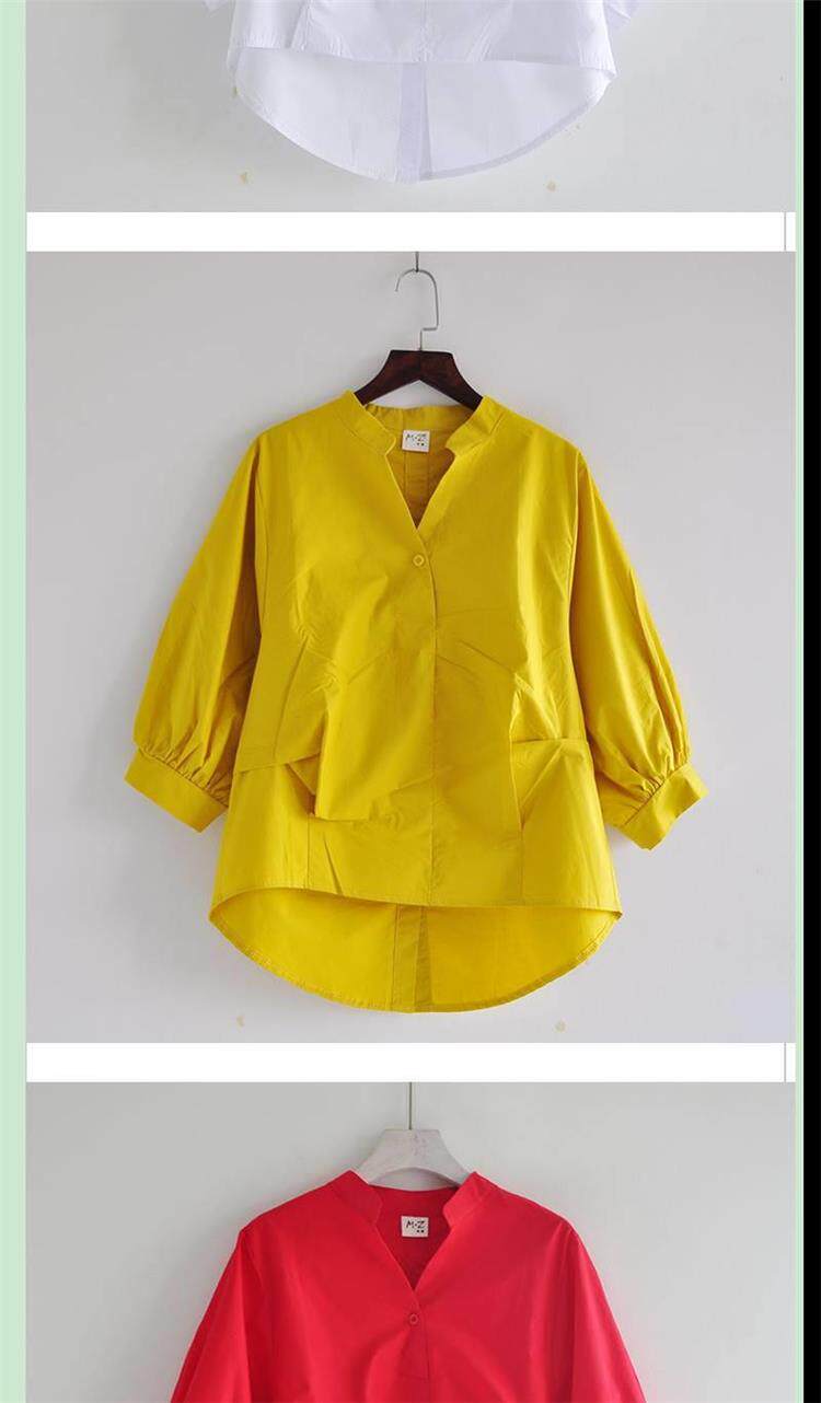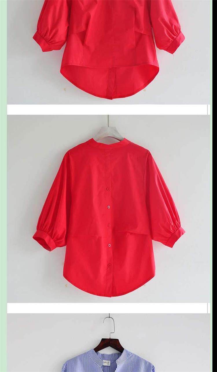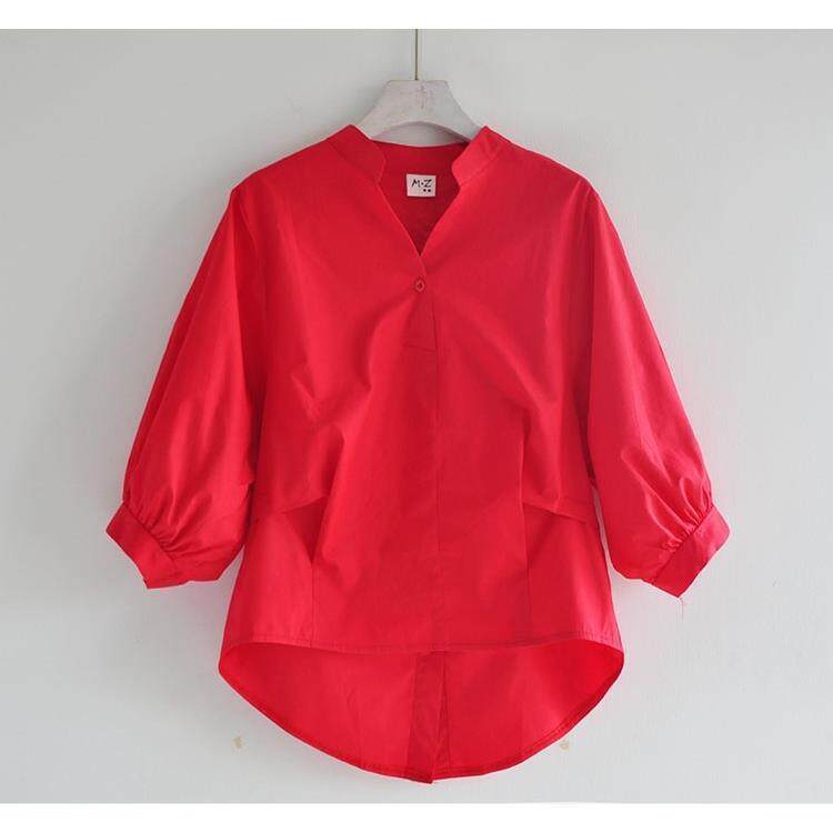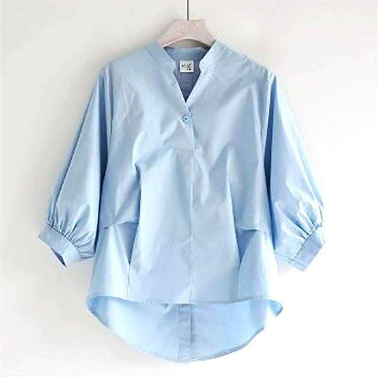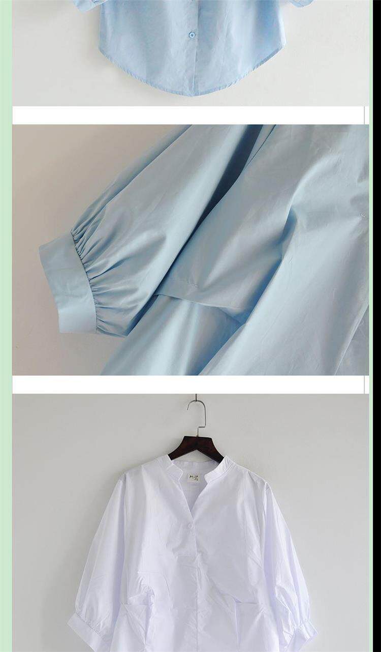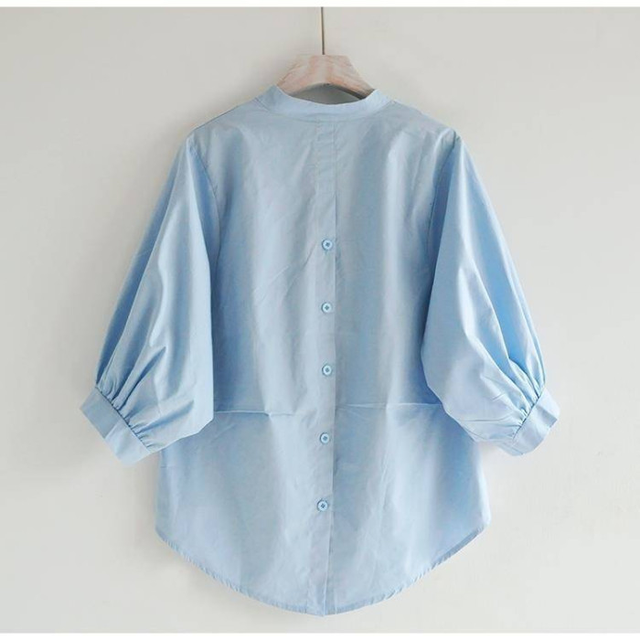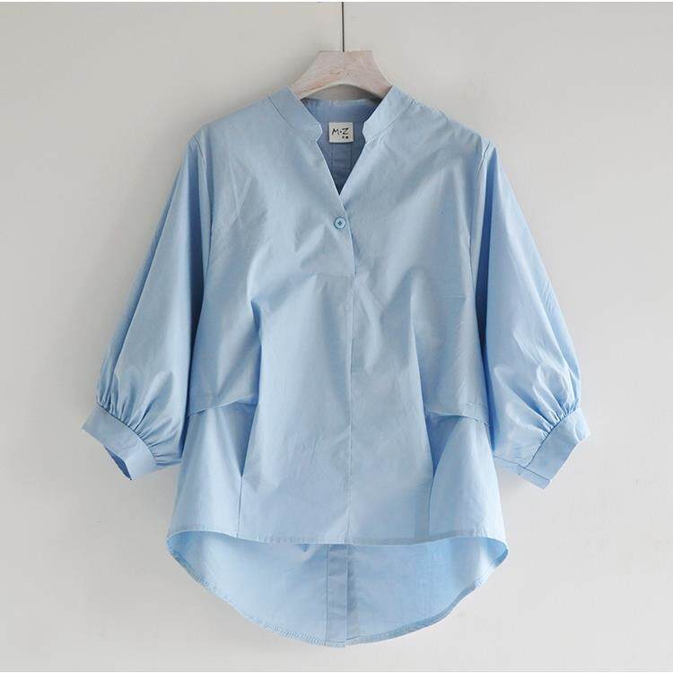 出口意大利大牌原單撤櫃餘單燈籠袖襯衫女裝純色V領上衣