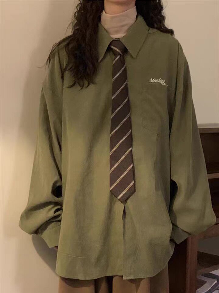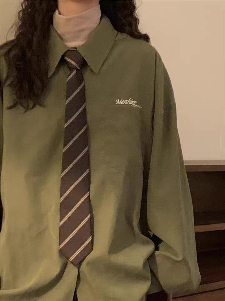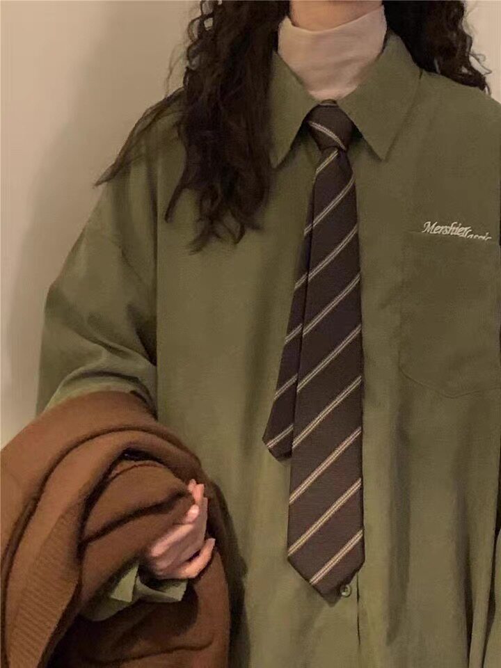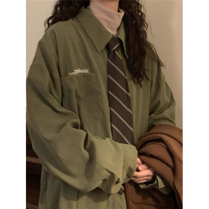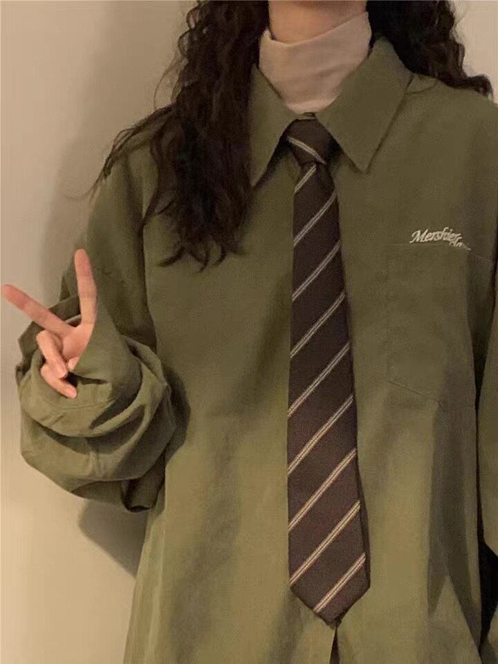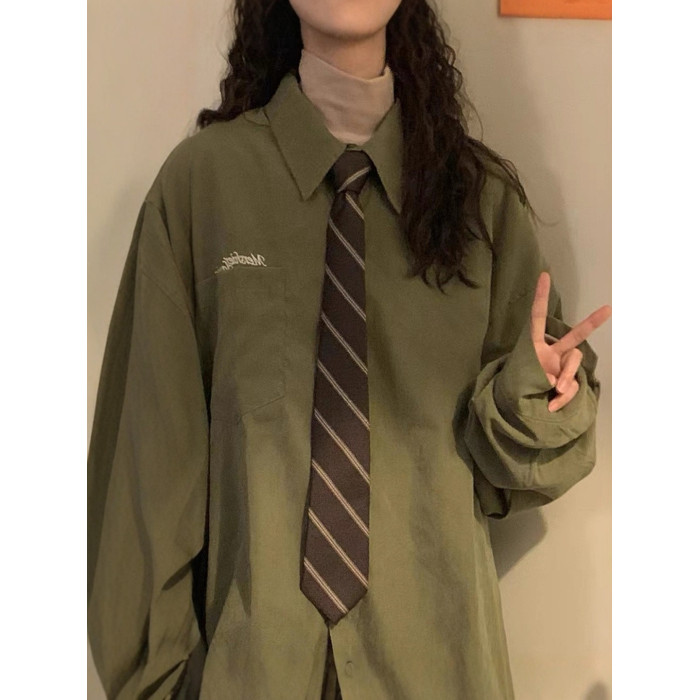 2026春秋季美式復古簡約內搭曡穿長袖襯衫外套女打底衫上衣配領帶