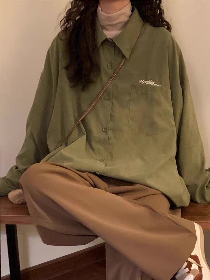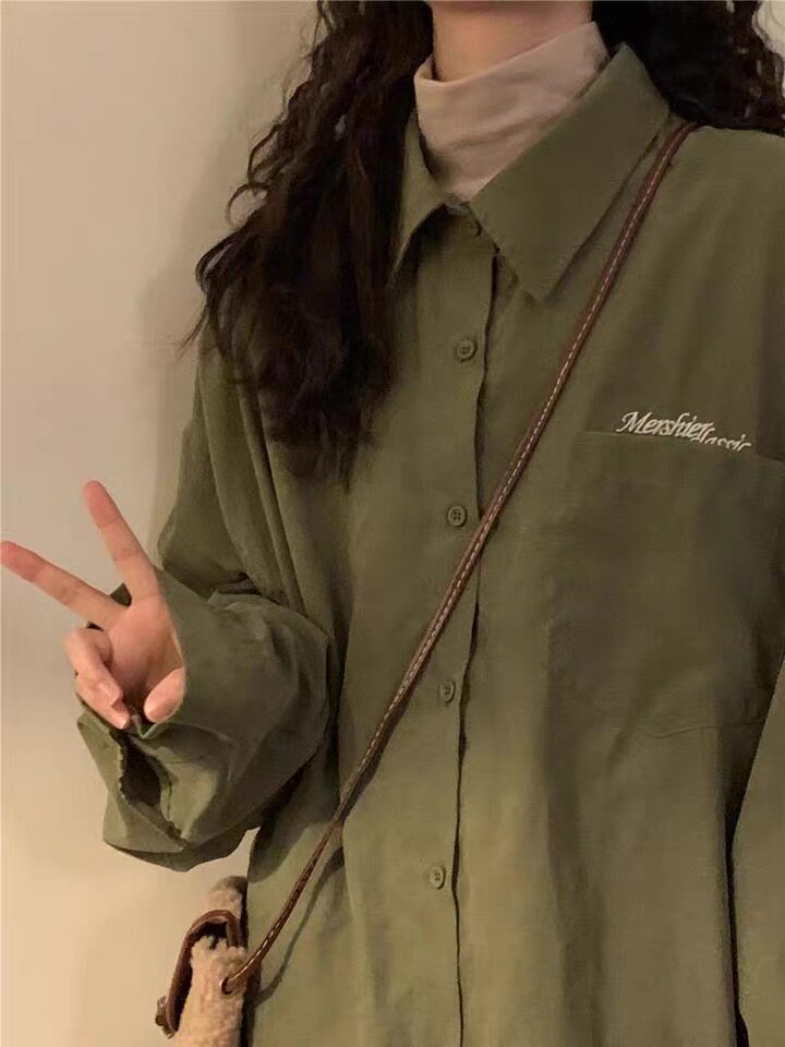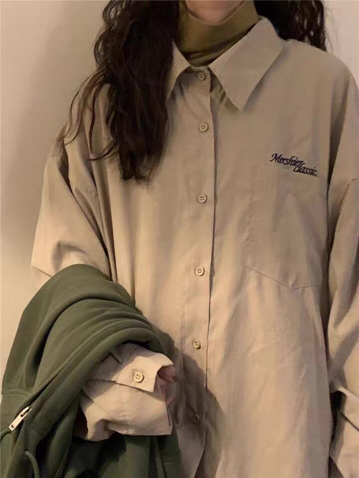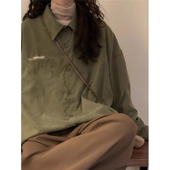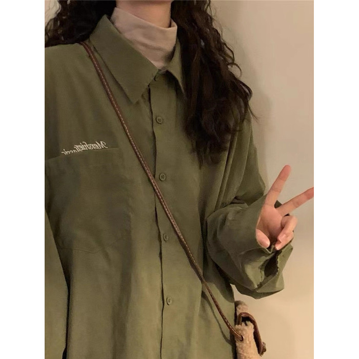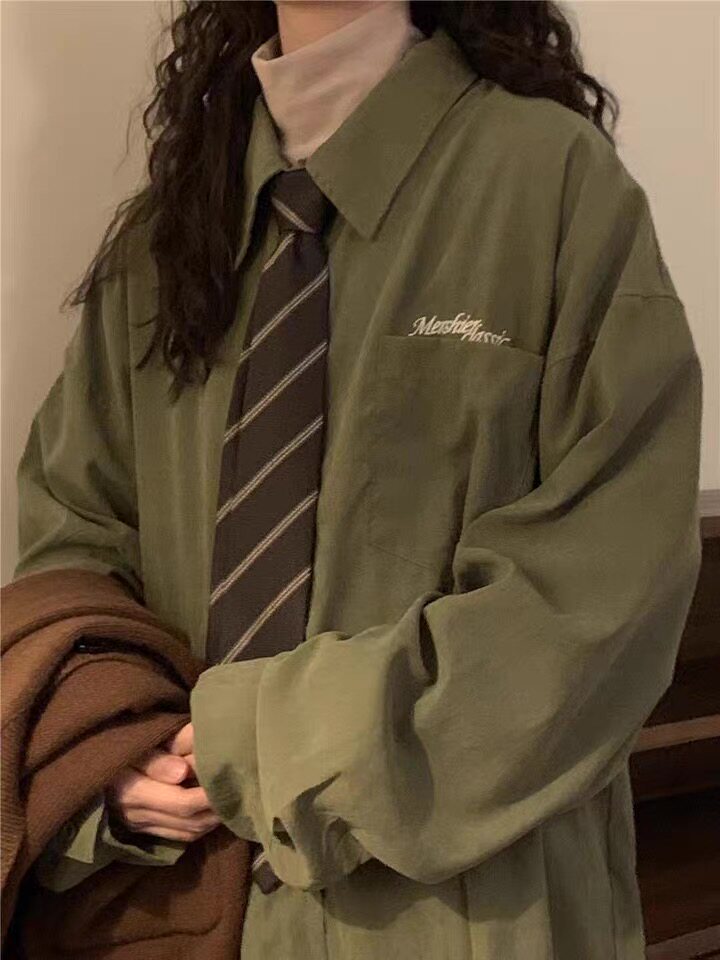 2026春秋季美式復古簡約內搭曡穿長袖襯衫外套女打底衫上衣配領帶