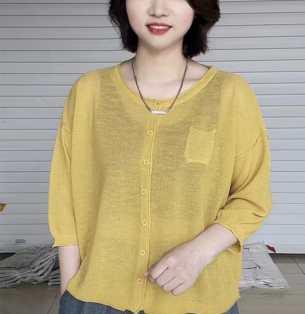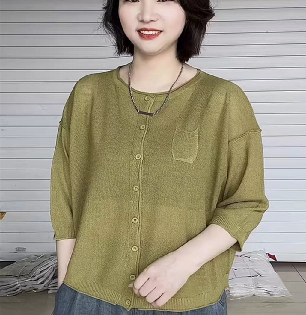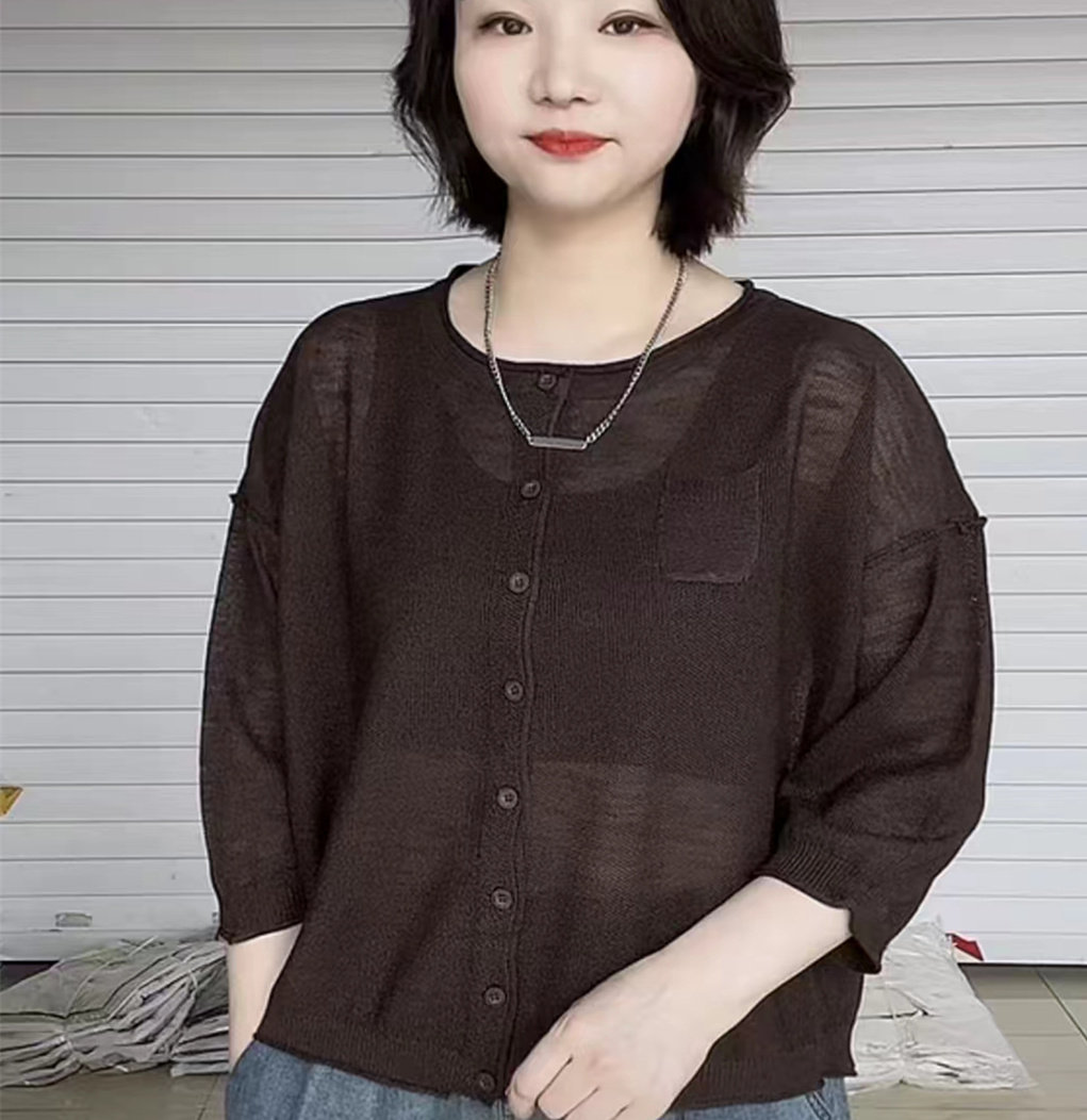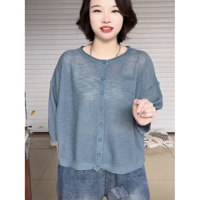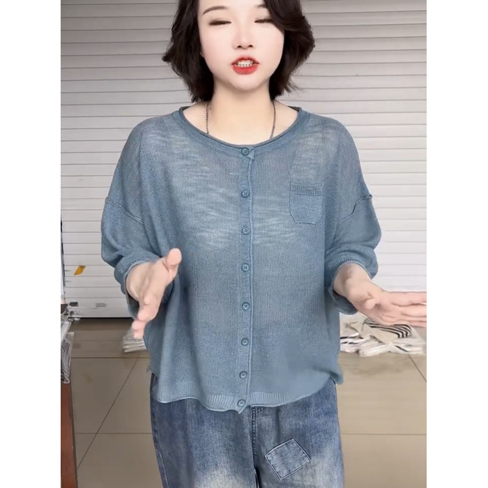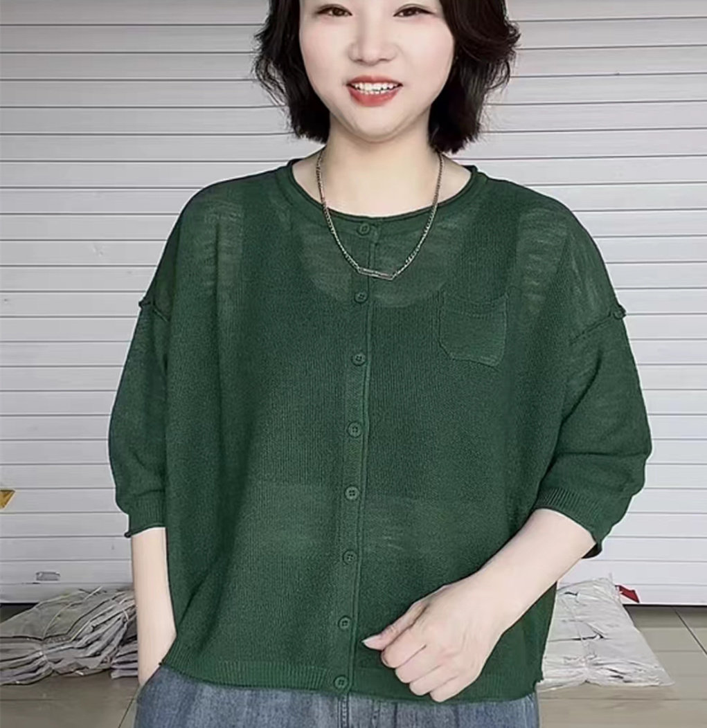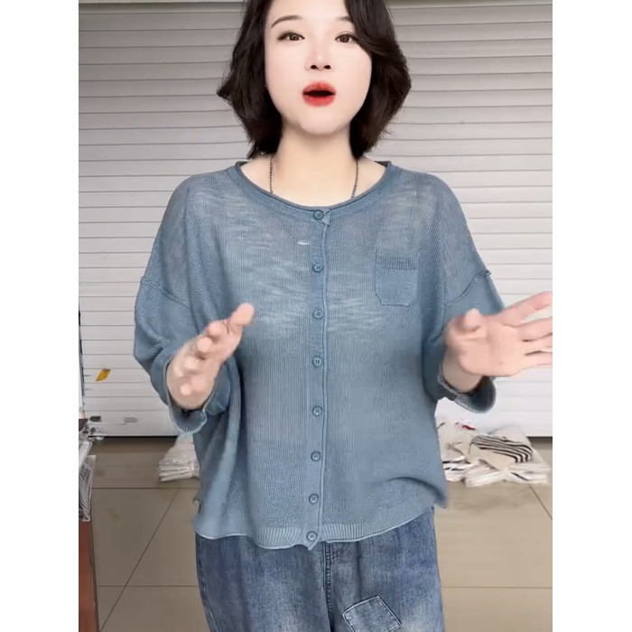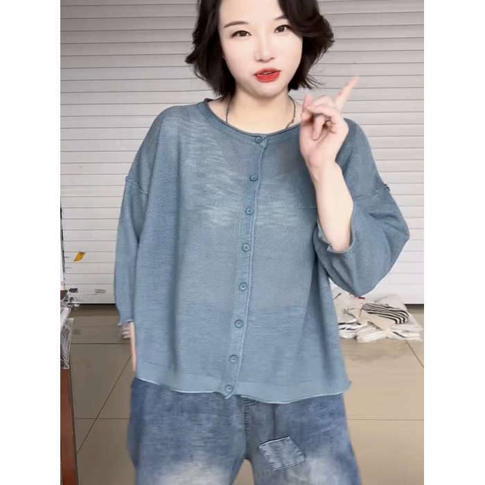 針織開衫2025春夏上衣寬鬆純色氣質時尚寬鬆百搭七分袖純色外搭女