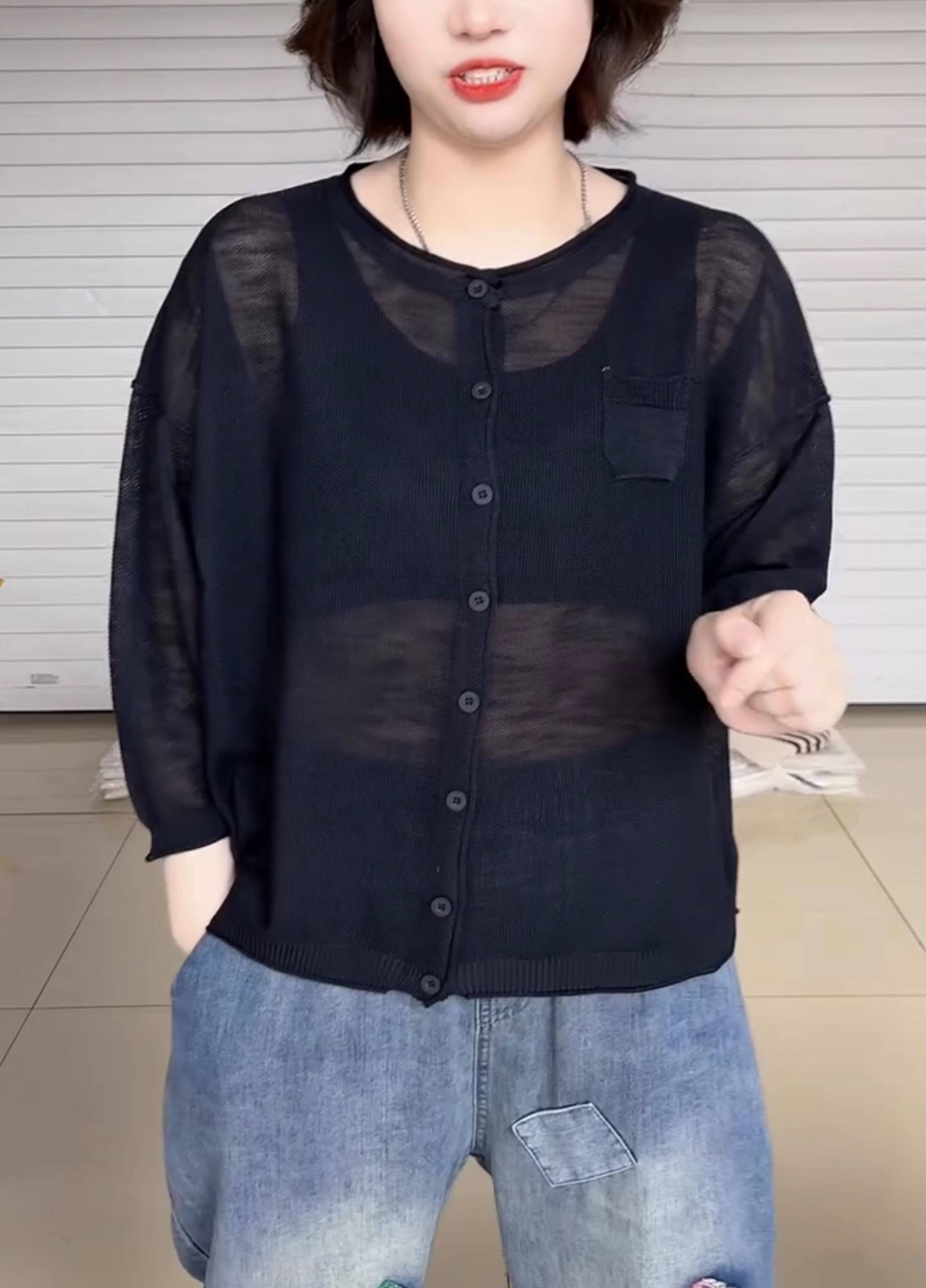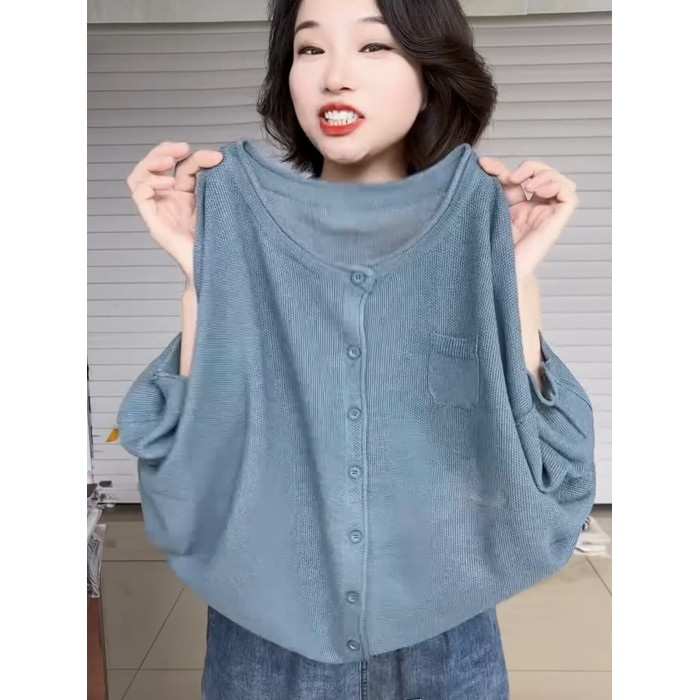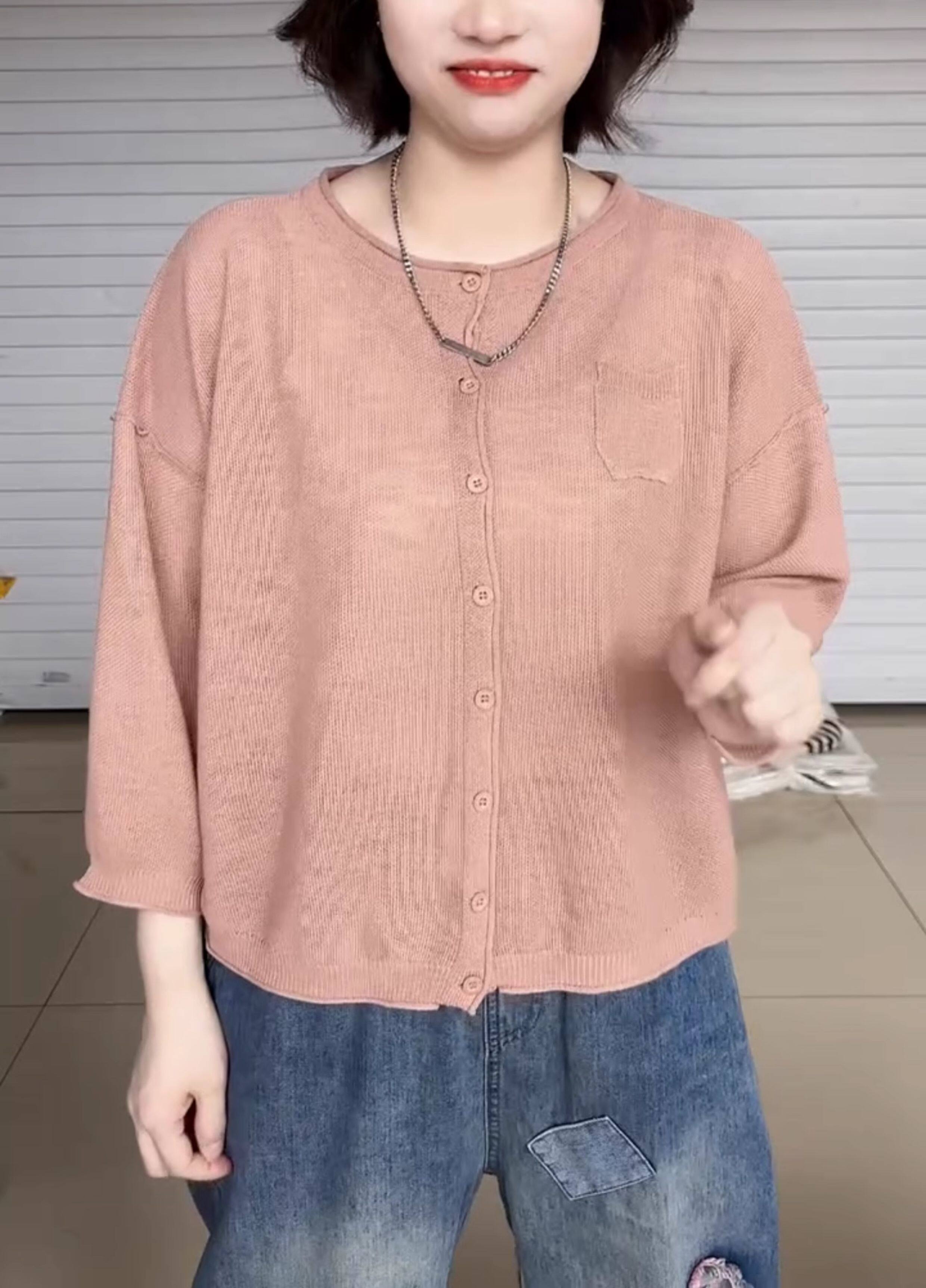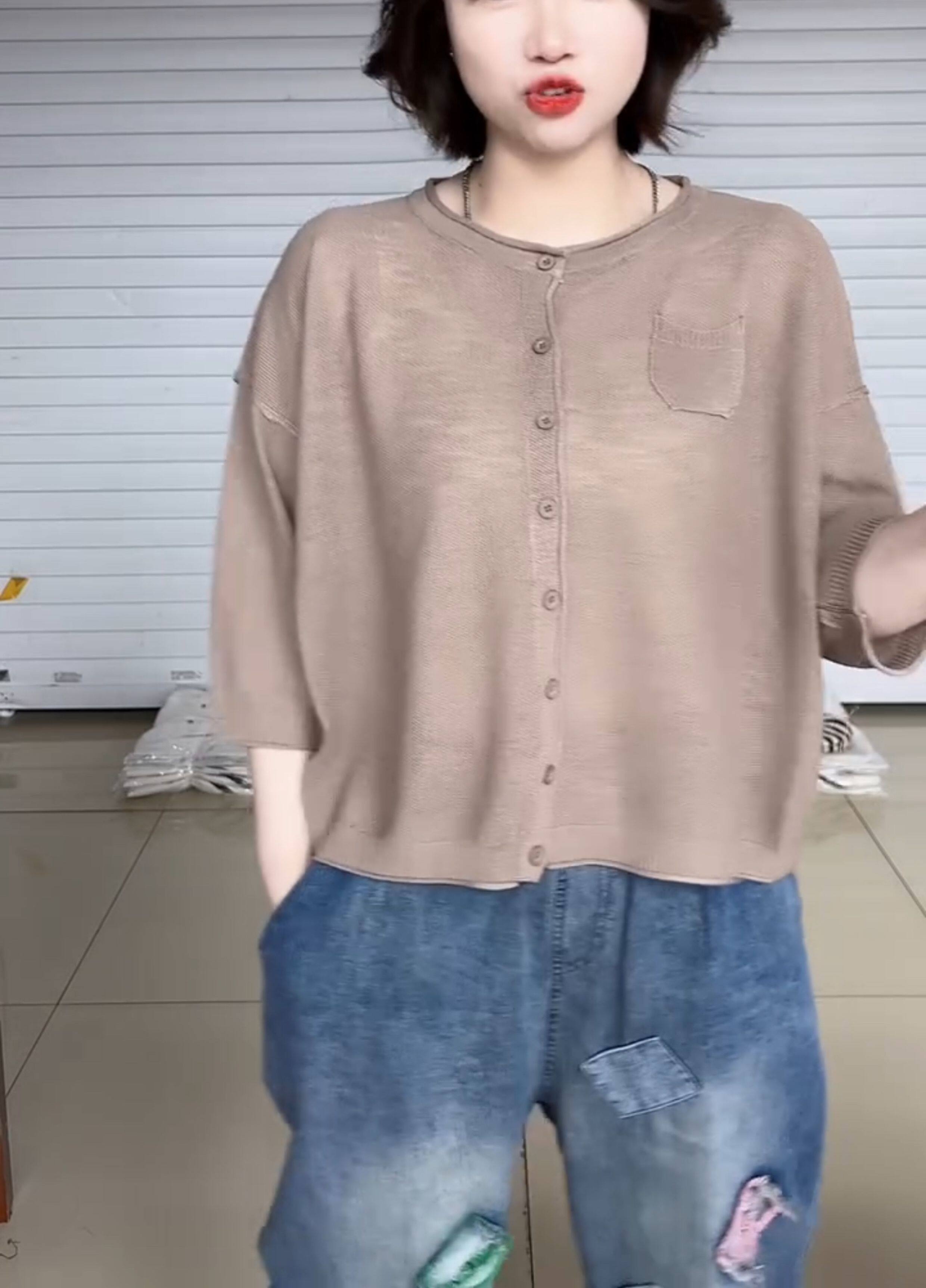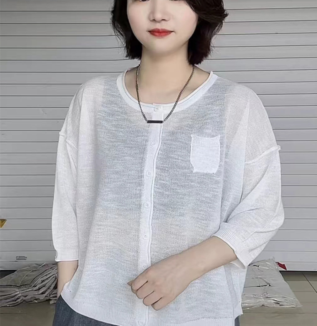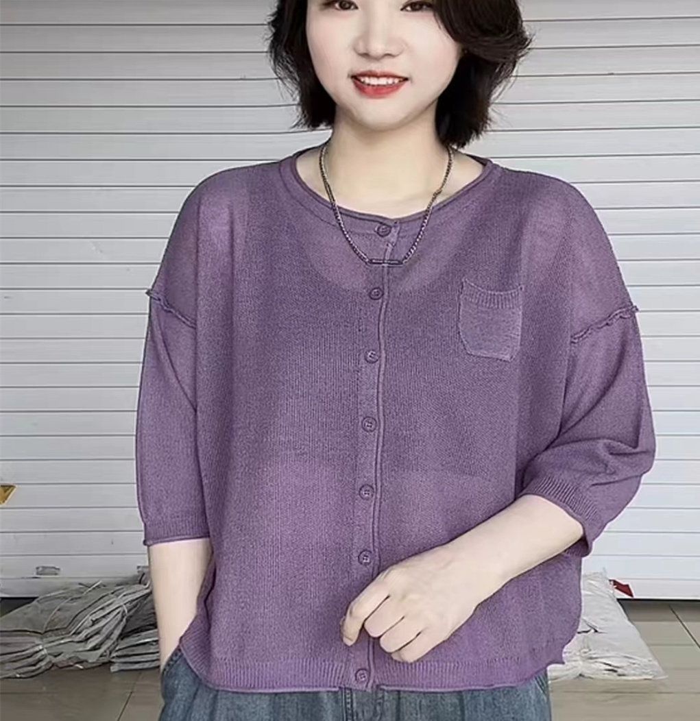 針織開衫2025春夏上衣寬鬆純色氣質時尚寬鬆百搭七分袖純色外搭女