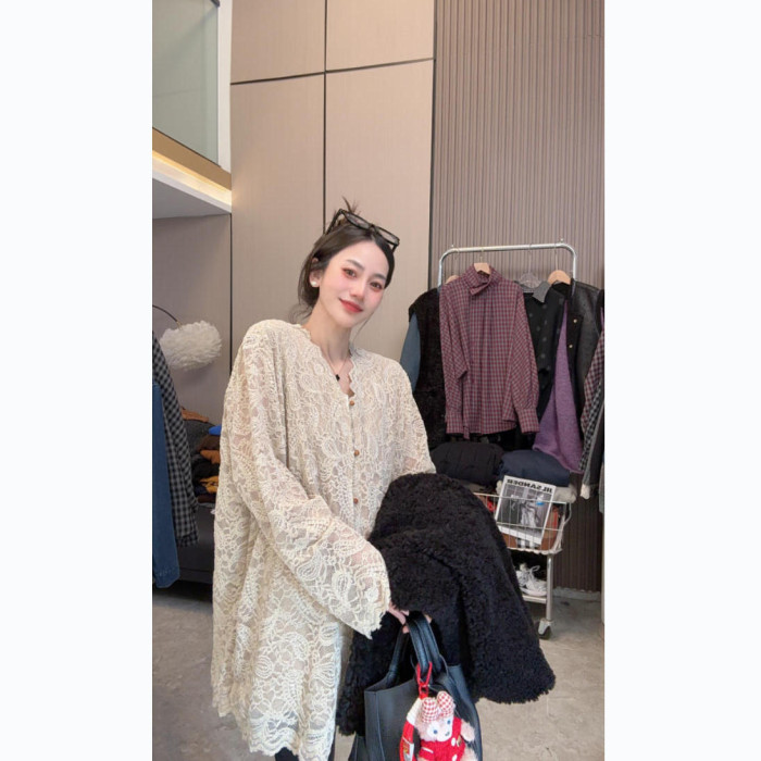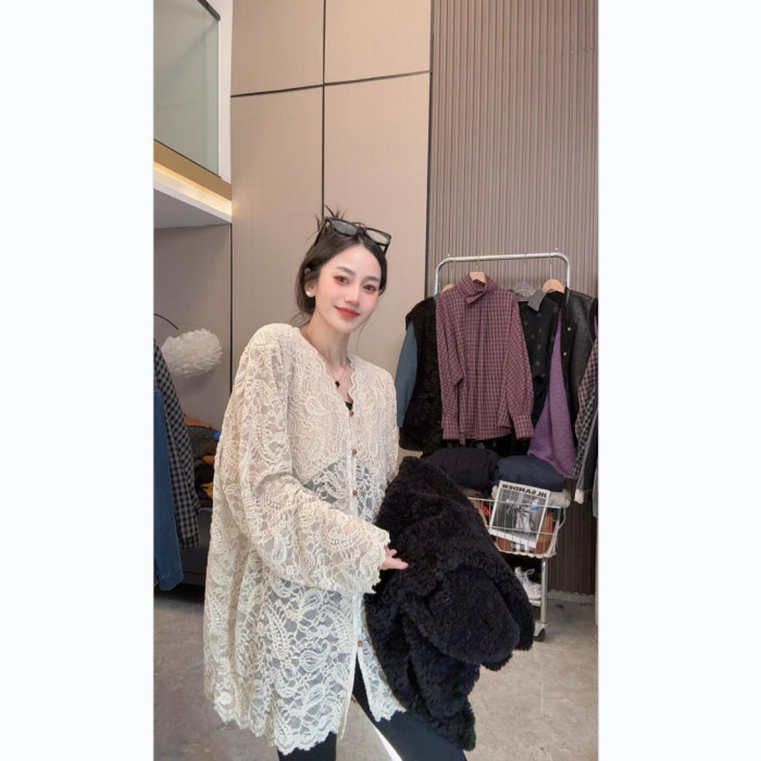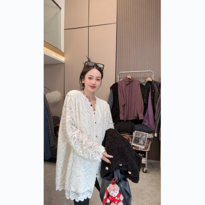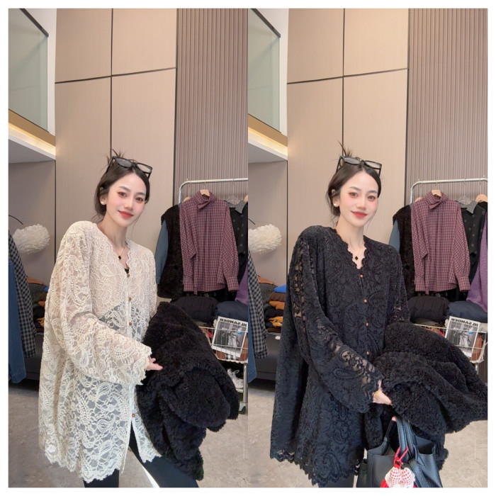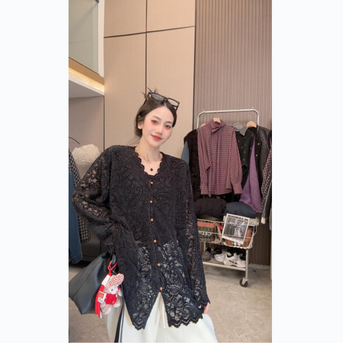 【溫柔陷阱】魅力穿搭~法式甜美V領花邊長袖蕾絲衫