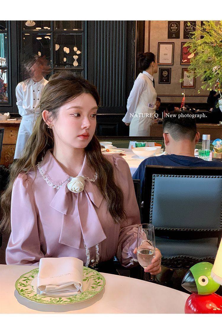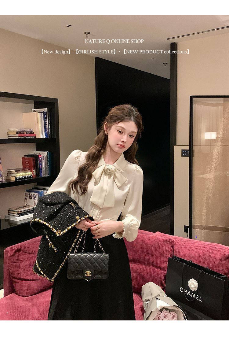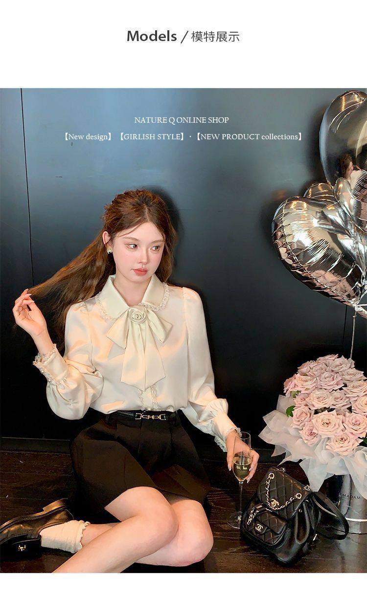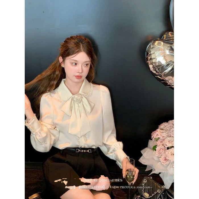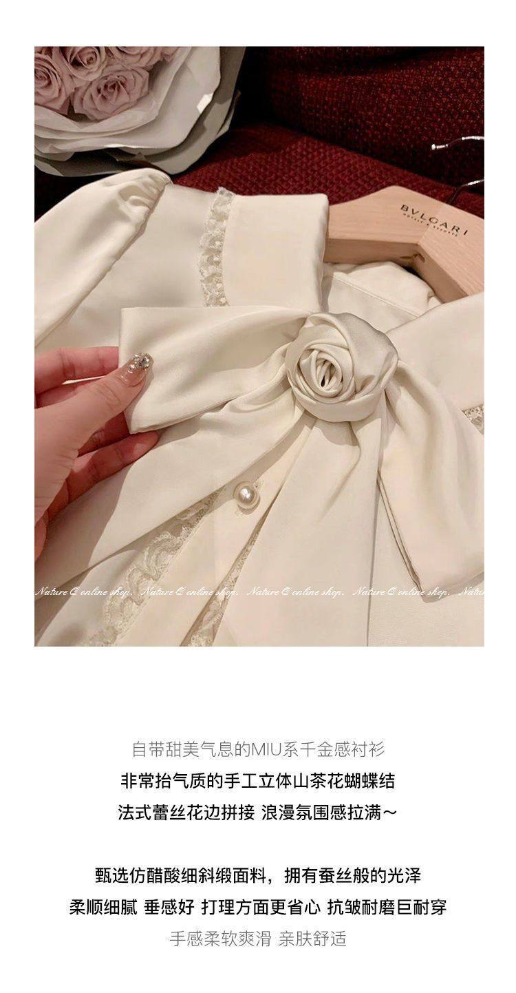 可拆卸山茶花蝴蝶結新款法式小香風娃娃領襯衫女白色氣質職業上衣