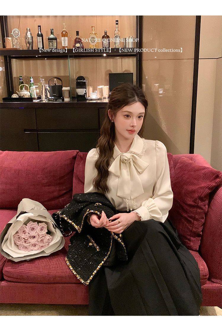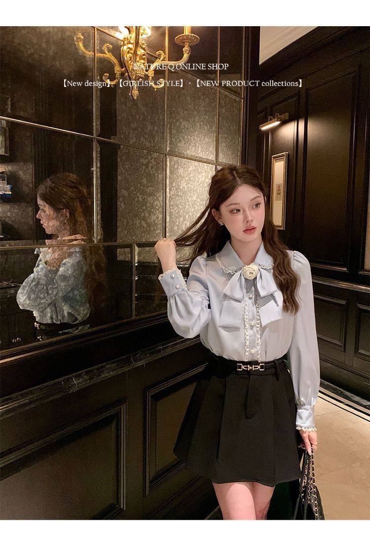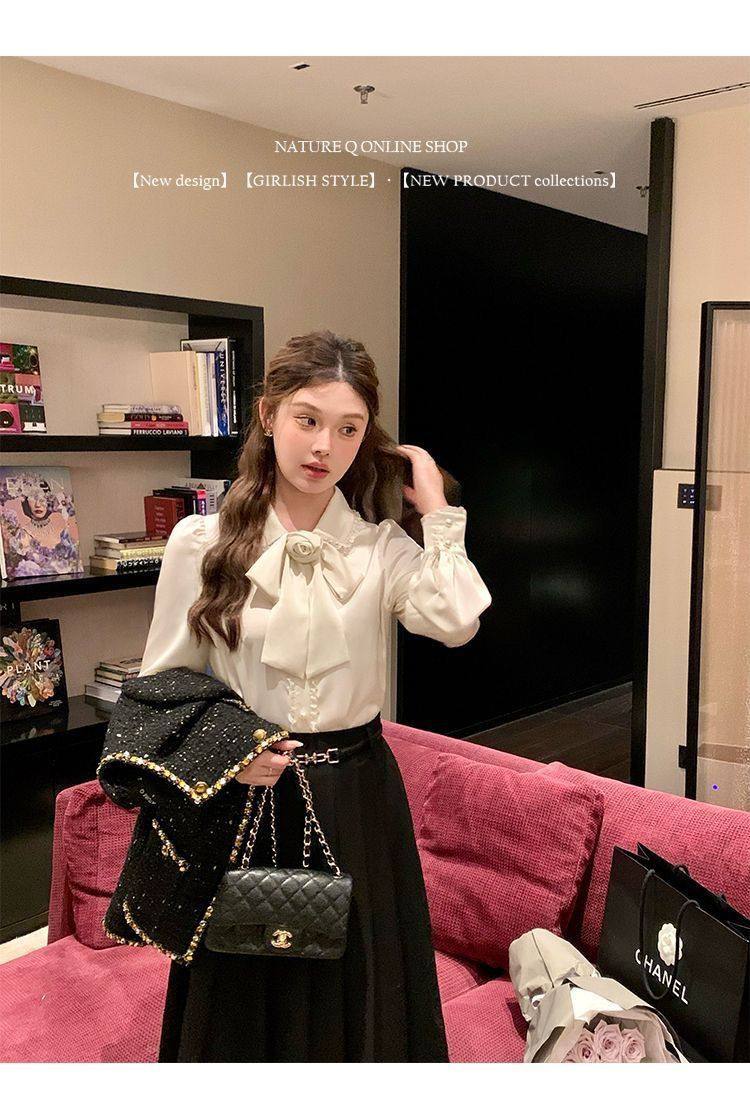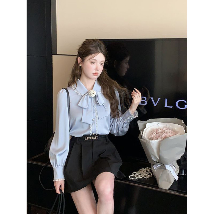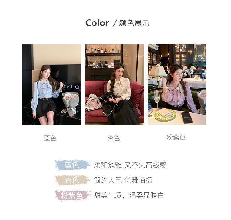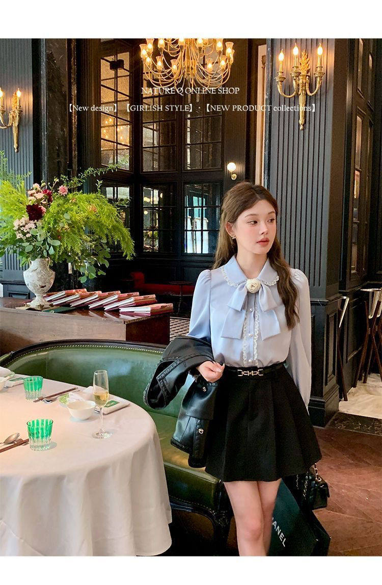 可拆卸山茶花蝴蝶結新款法式小香風娃娃領襯衫女白色氣質職業上衣