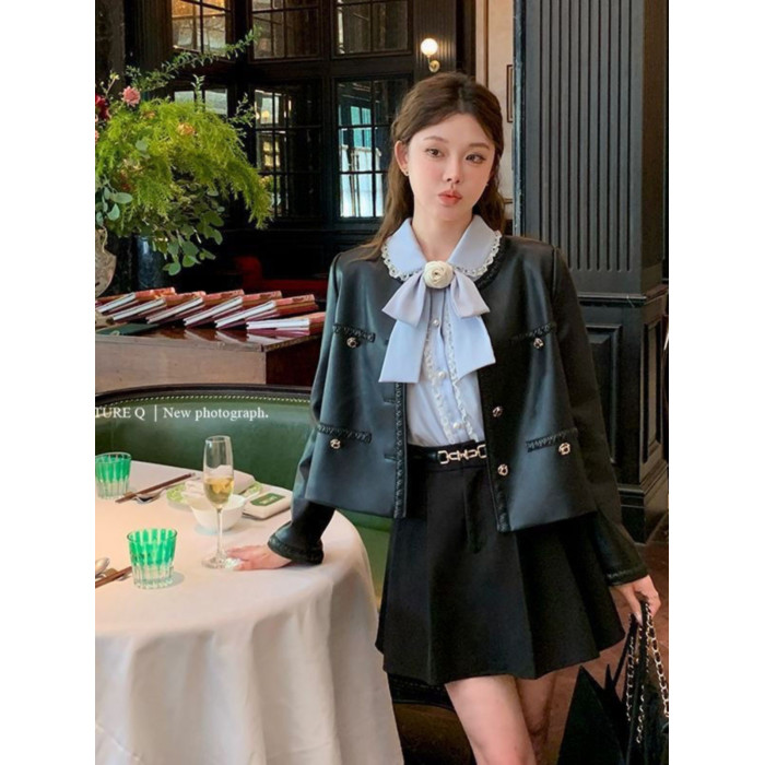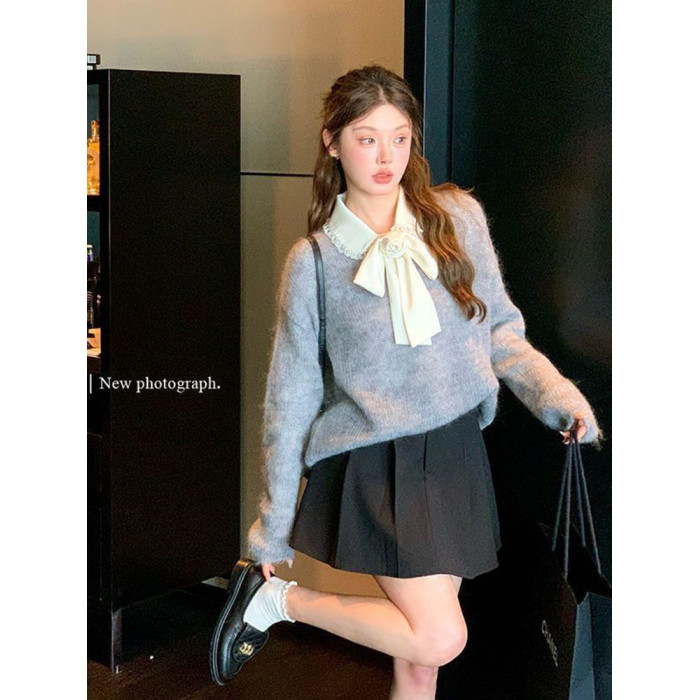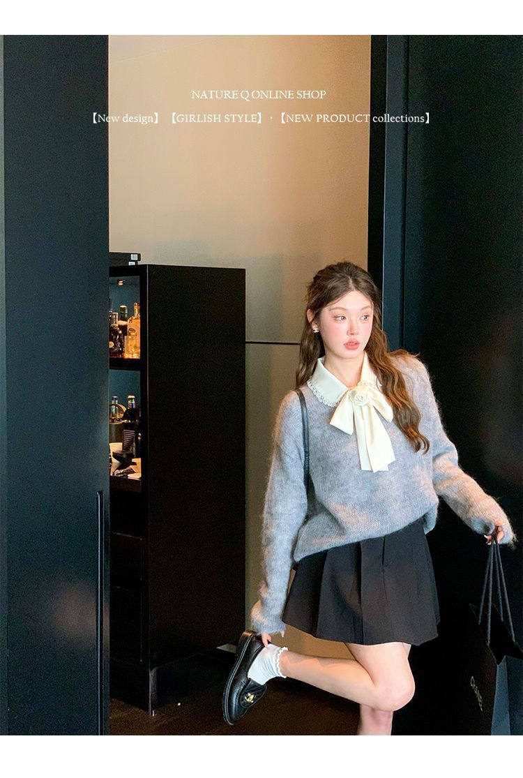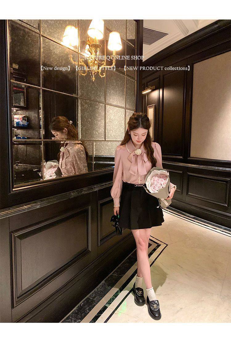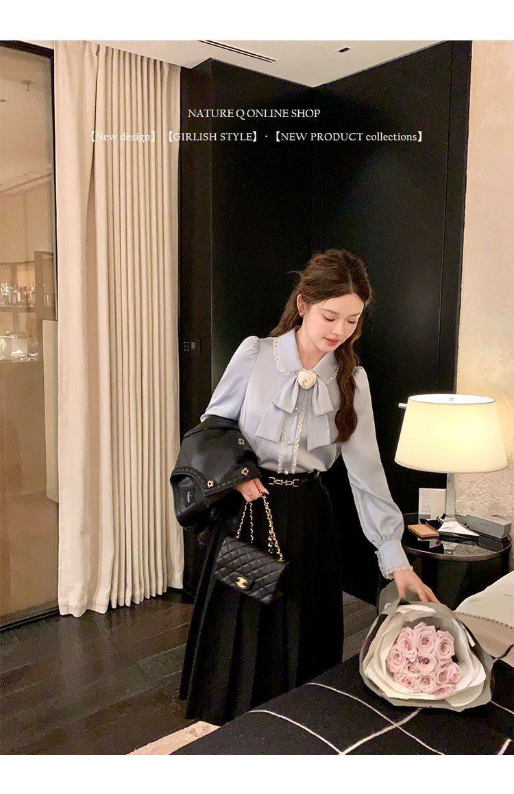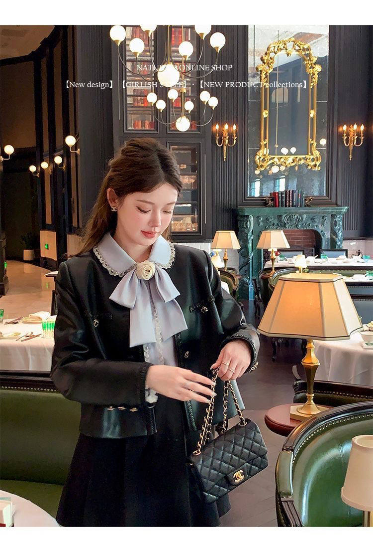 可拆卸山茶花蝴蝶結新款法式小香風娃娃領襯衫女白色氣質職業上衣