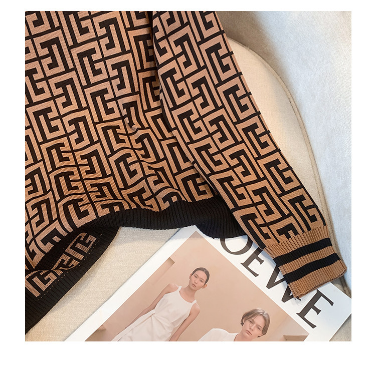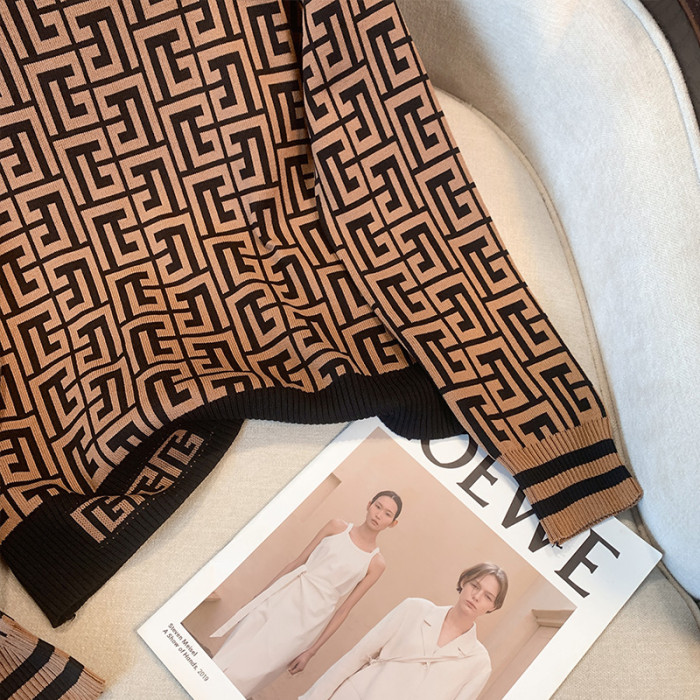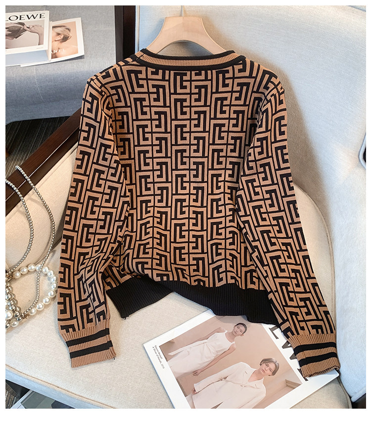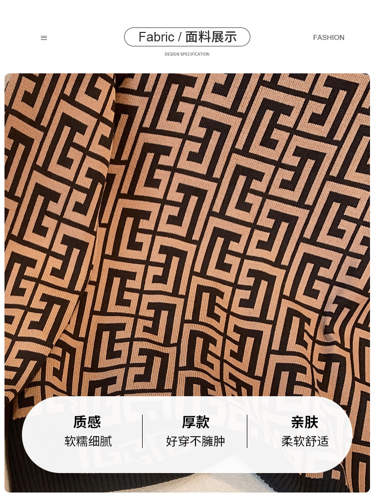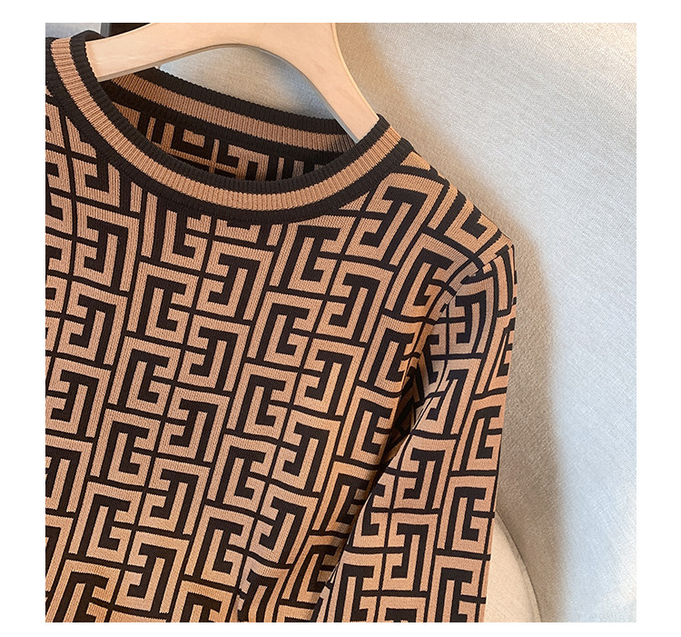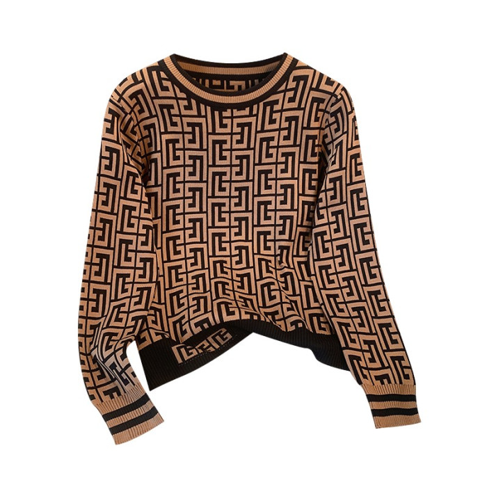 撿漏2024秋冬裝新款復古提花拼色長袖針織衫女裝圓領套頭打底毛衣