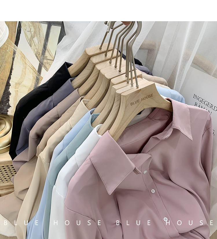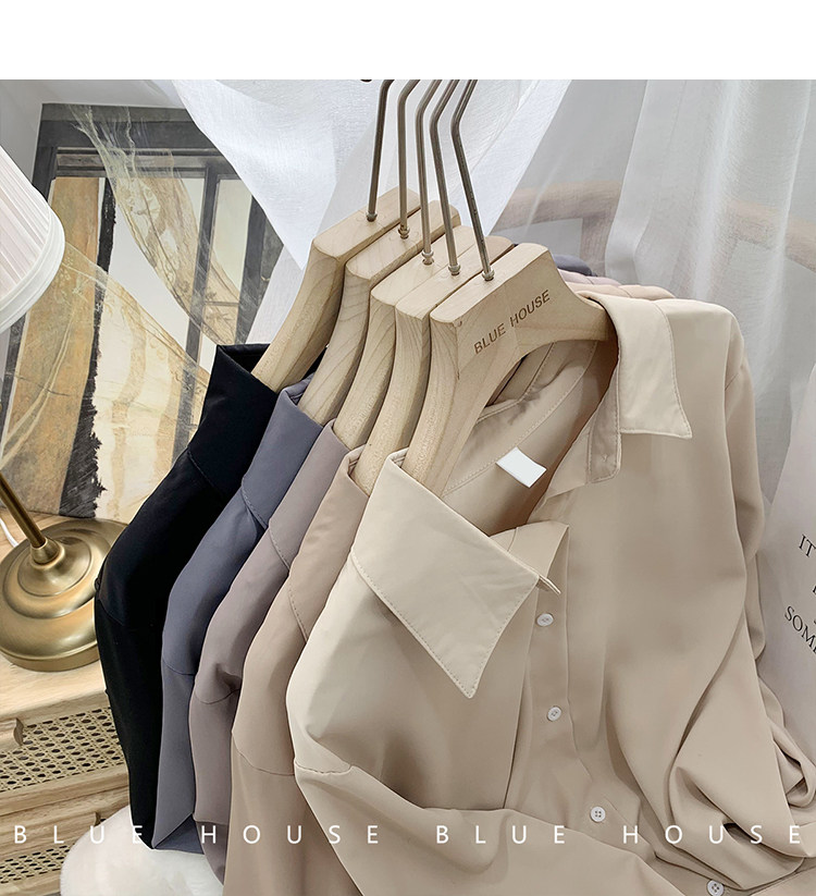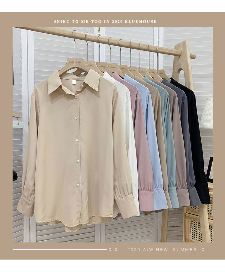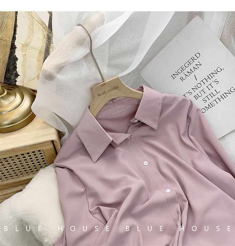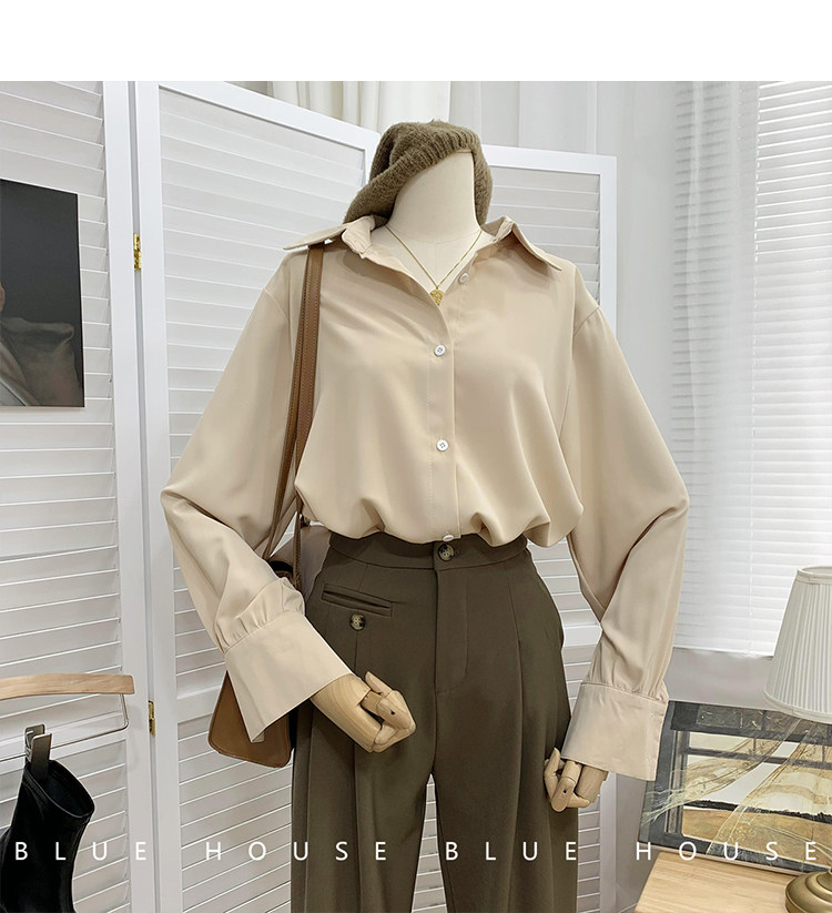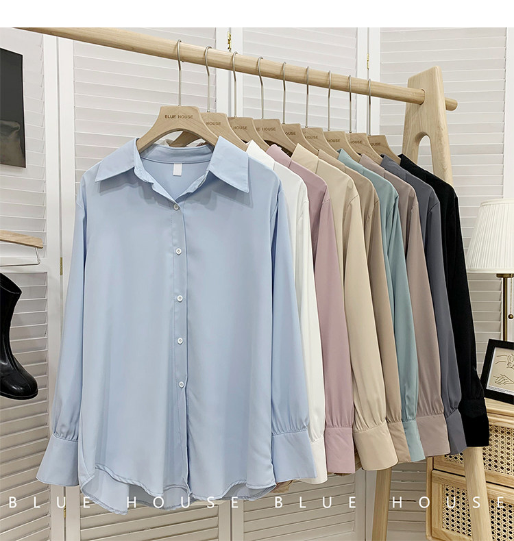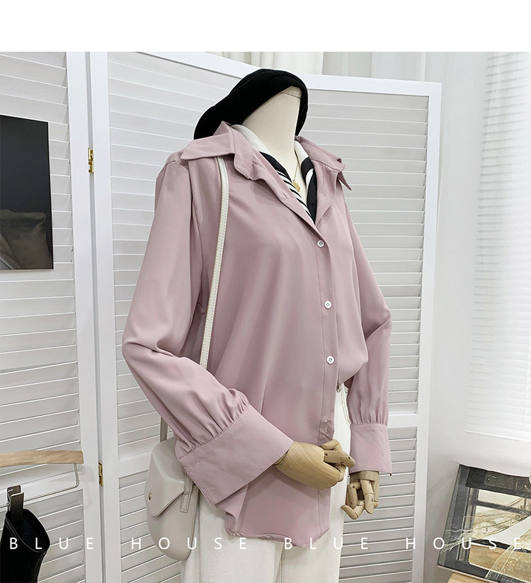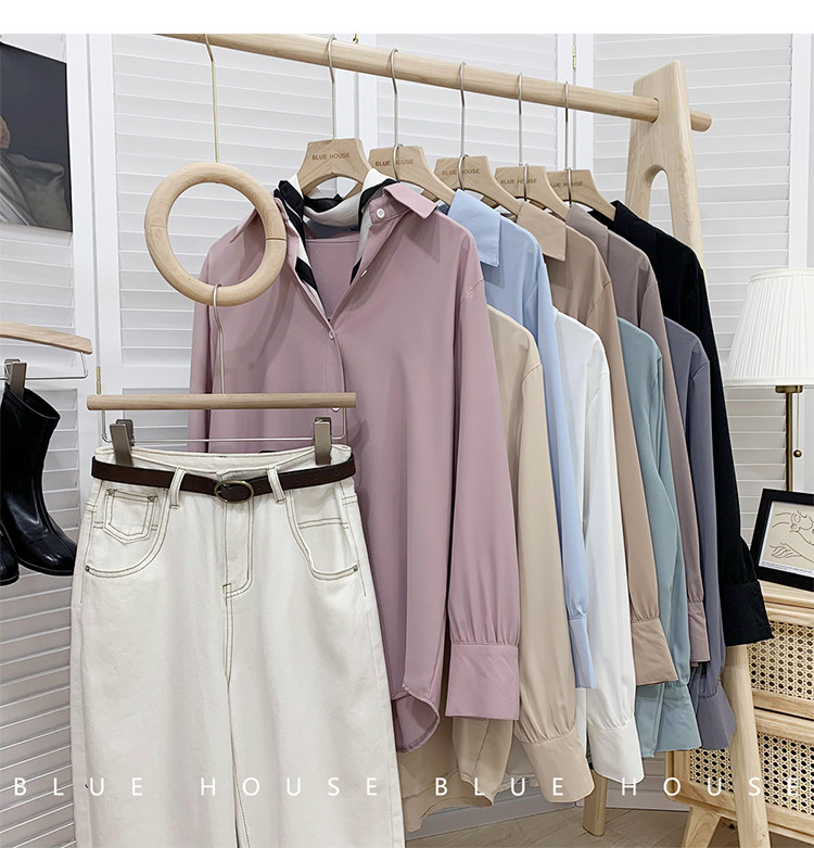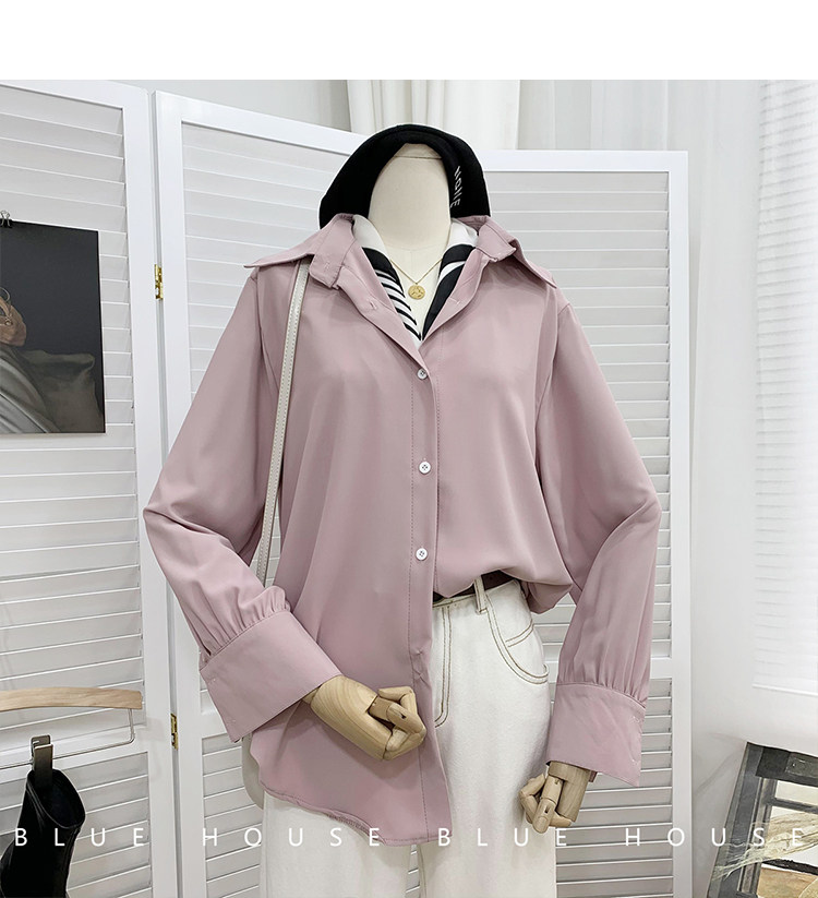 氣質淡雅莫蘭迪長袖淨版襯衫女早春秋季寬鬆垂感休閒襯衣百搭上衣