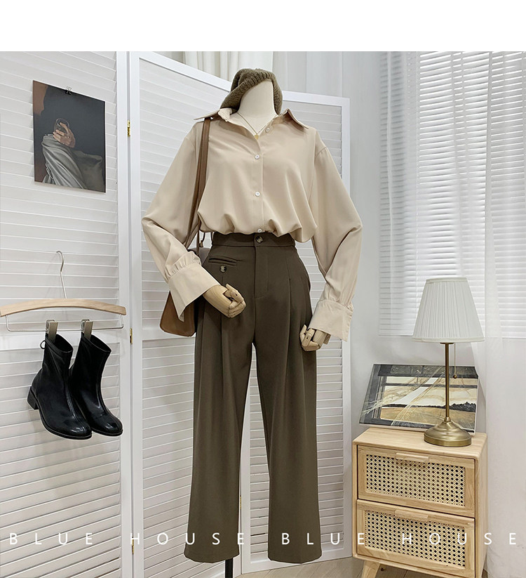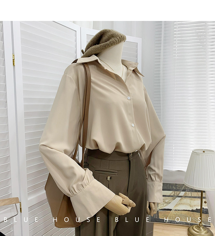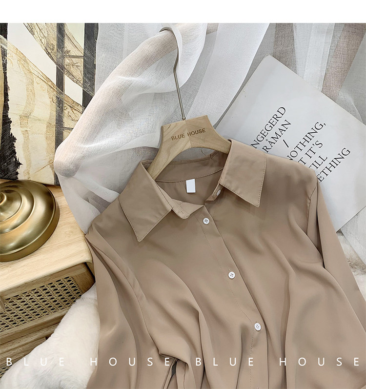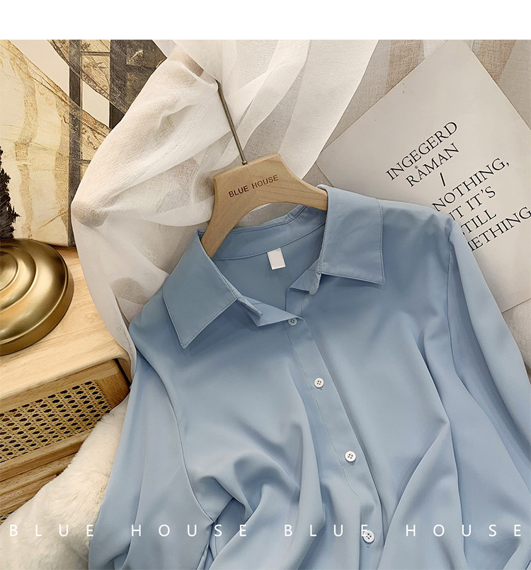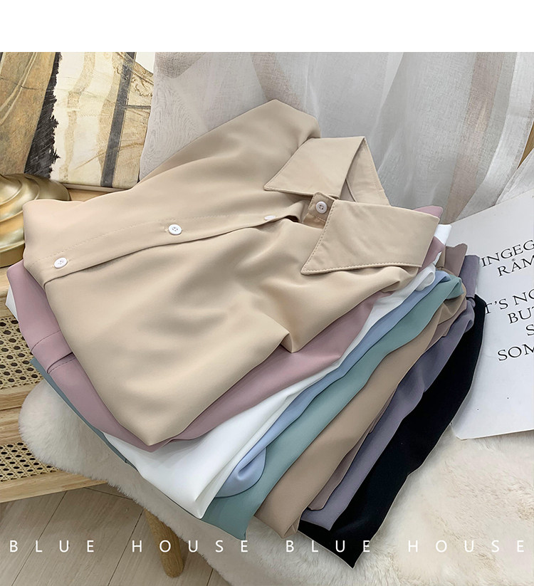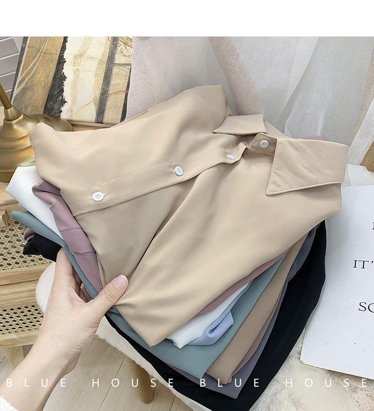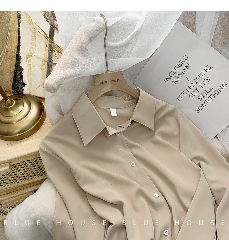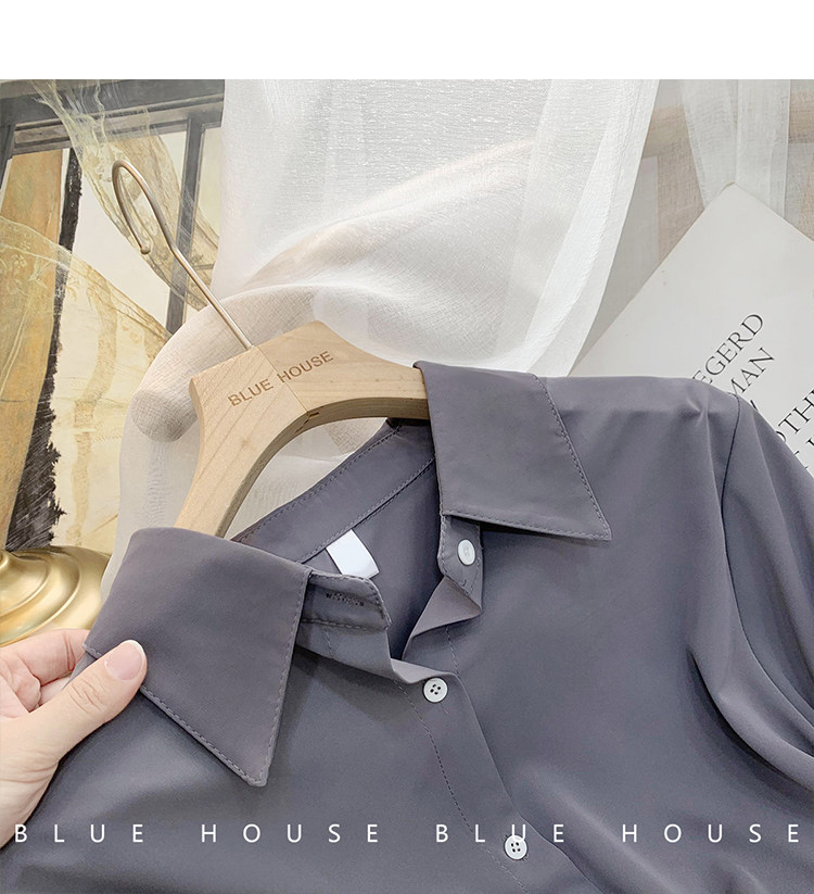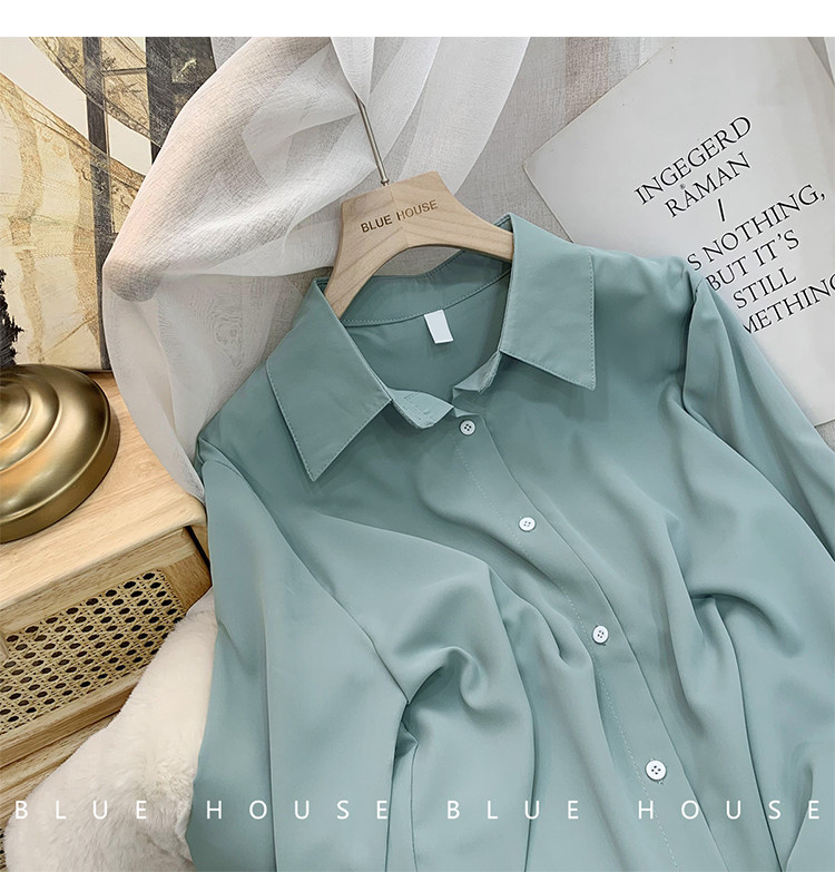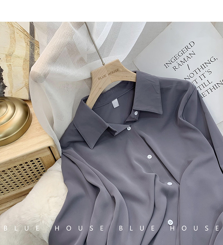 氣質淡雅莫蘭迪長袖淨版襯衫女早春秋季寬鬆垂感休閒襯衣百搭上衣