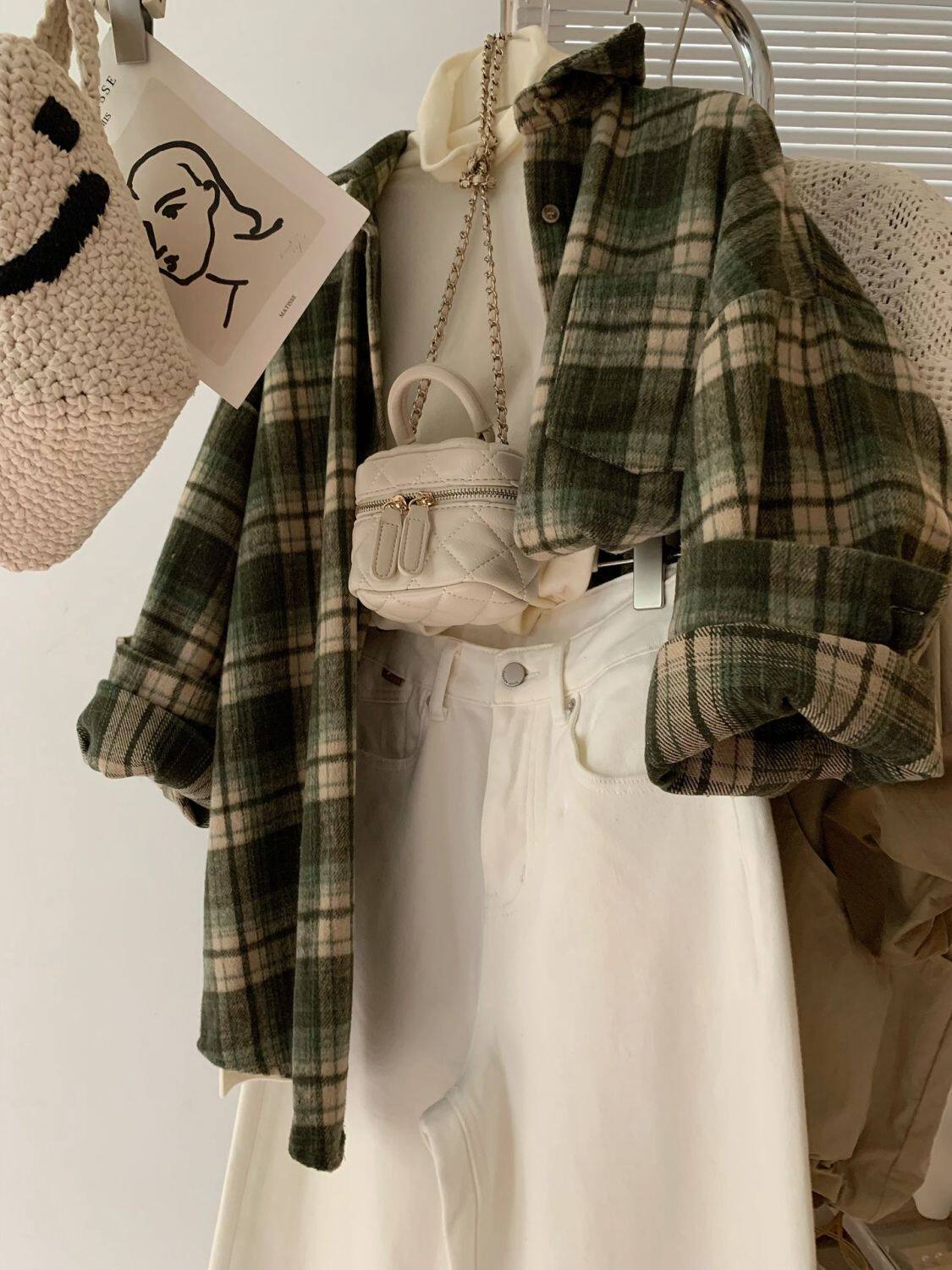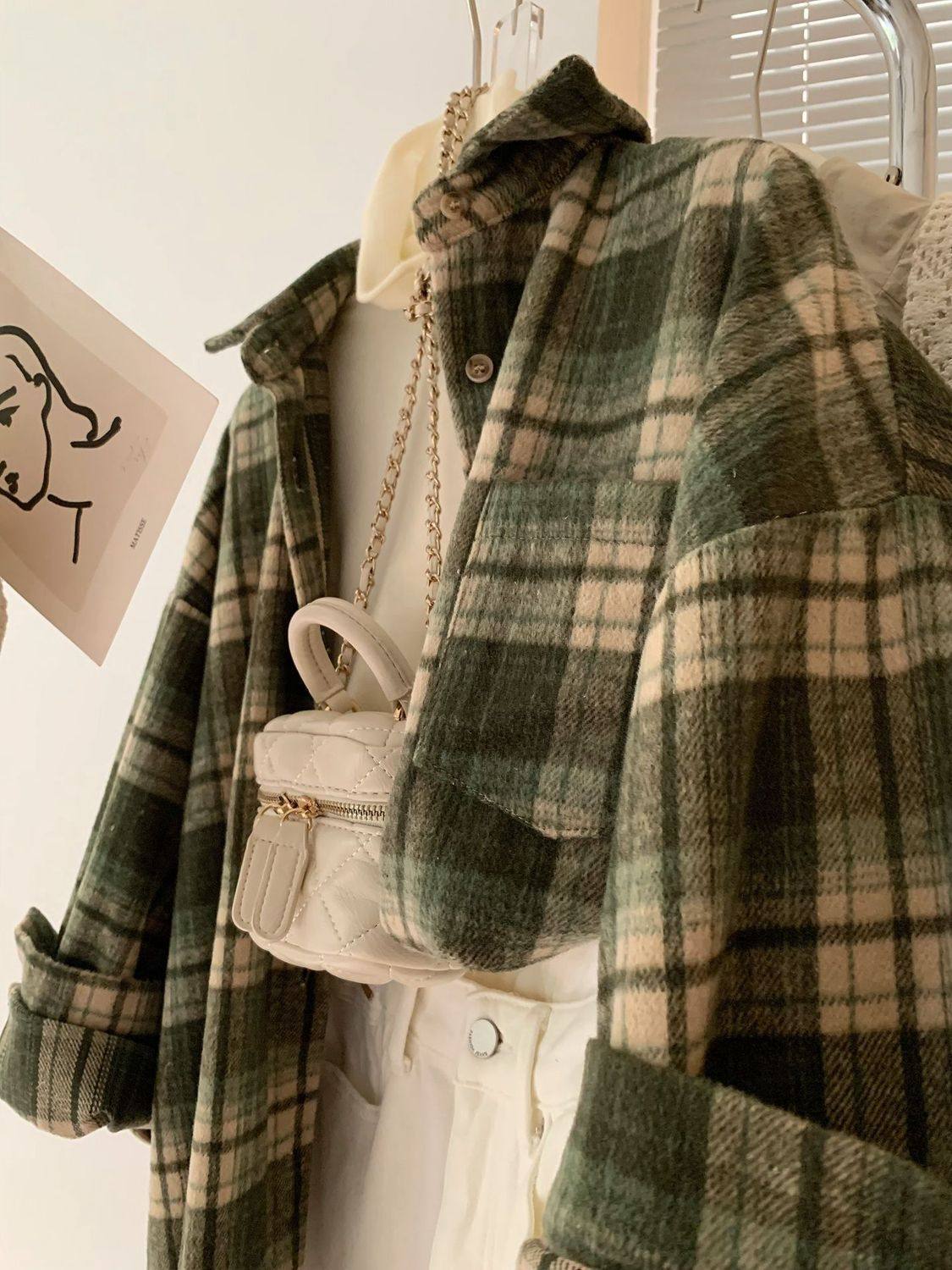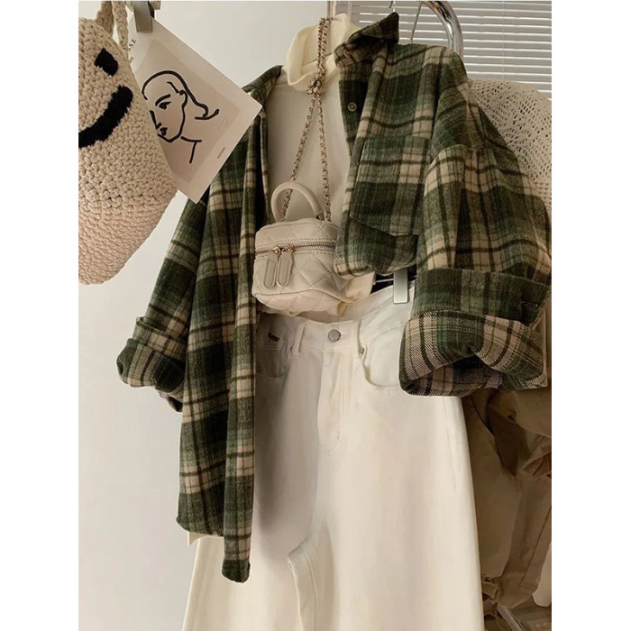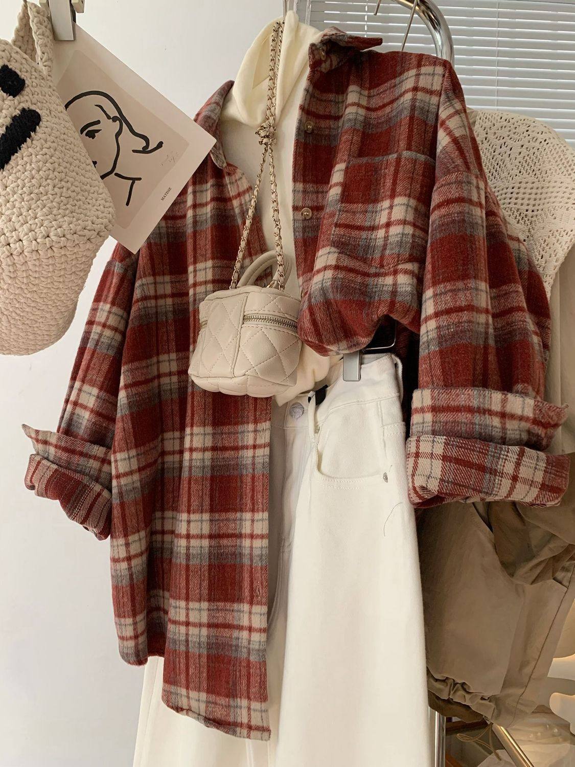 巨顯白!超好看紅色毛呢格子襯衫女時髦洋氣法式復古曡穿襯衣上衣