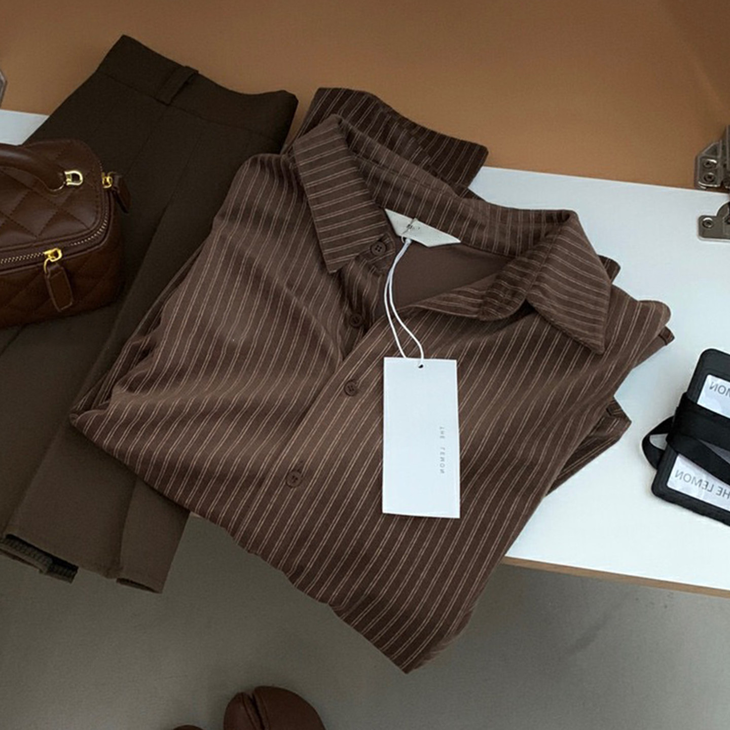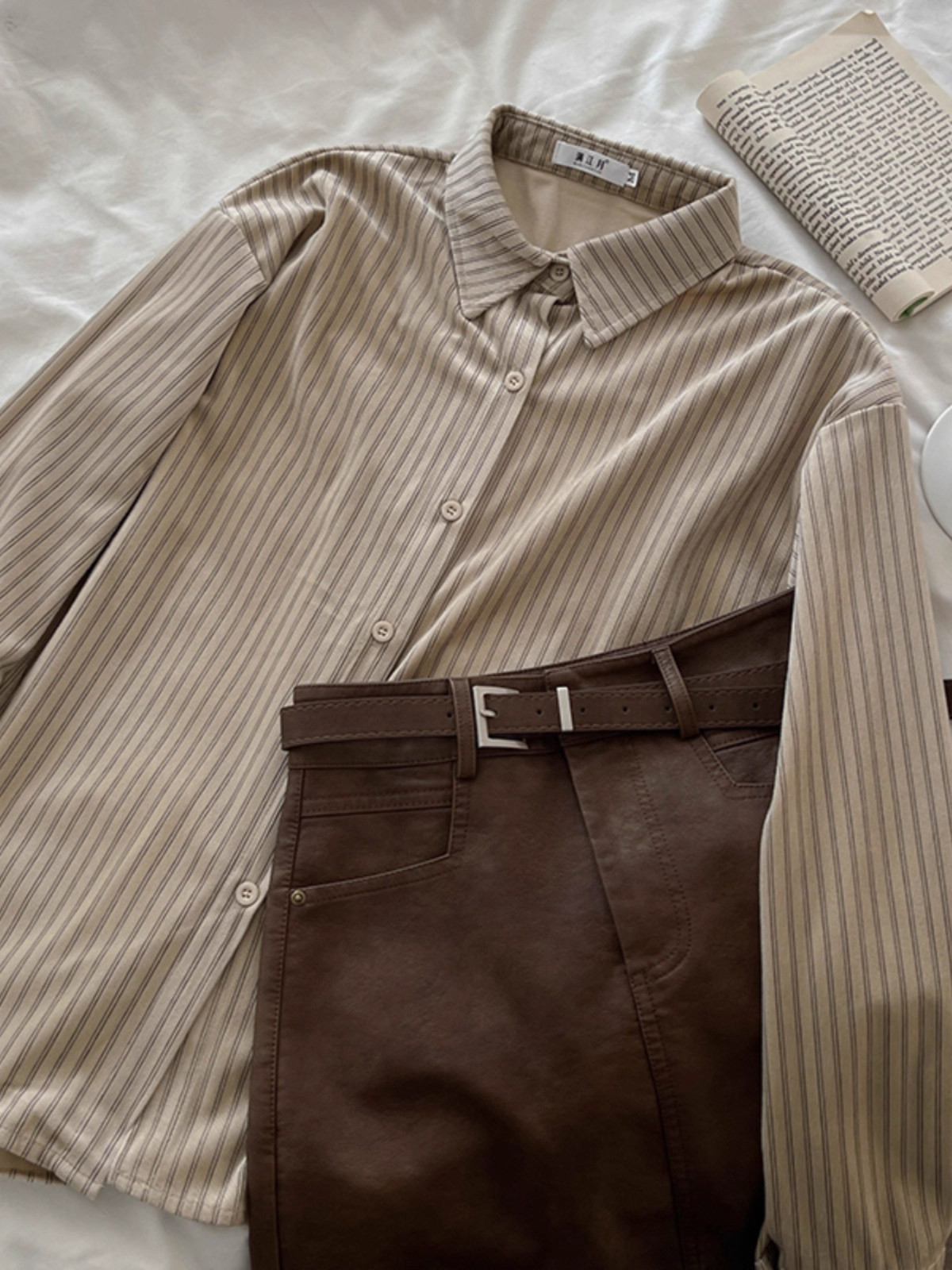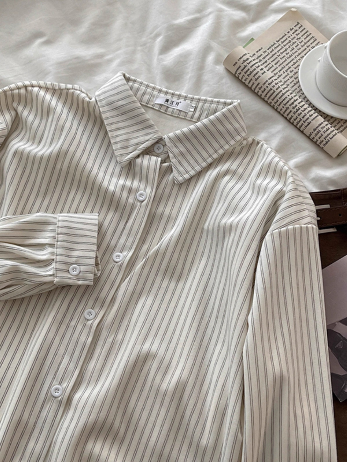 韓系慵懶風咖啡色條紋襯衫女春秋2025新款寬鬆燈芯絨曡穿長袖上衣