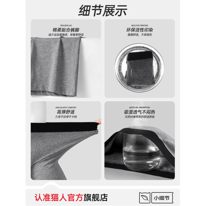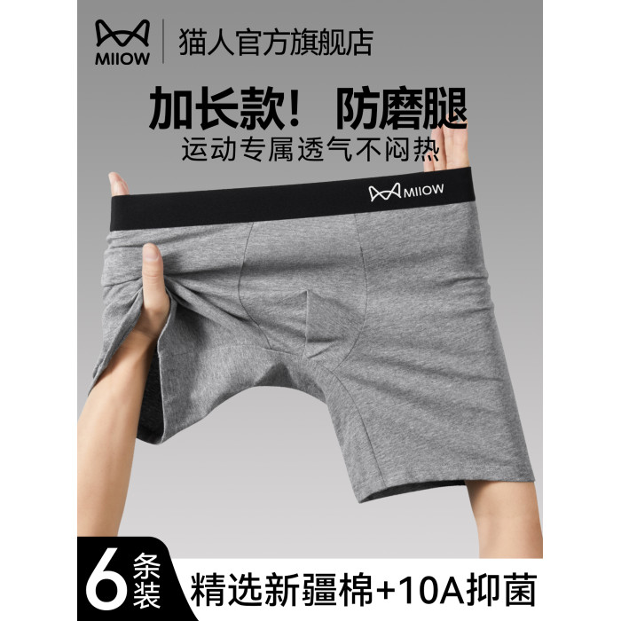 貓人男士內褲純棉加長防磨腿運動透氣四角褲2026新款大碼平角短褲