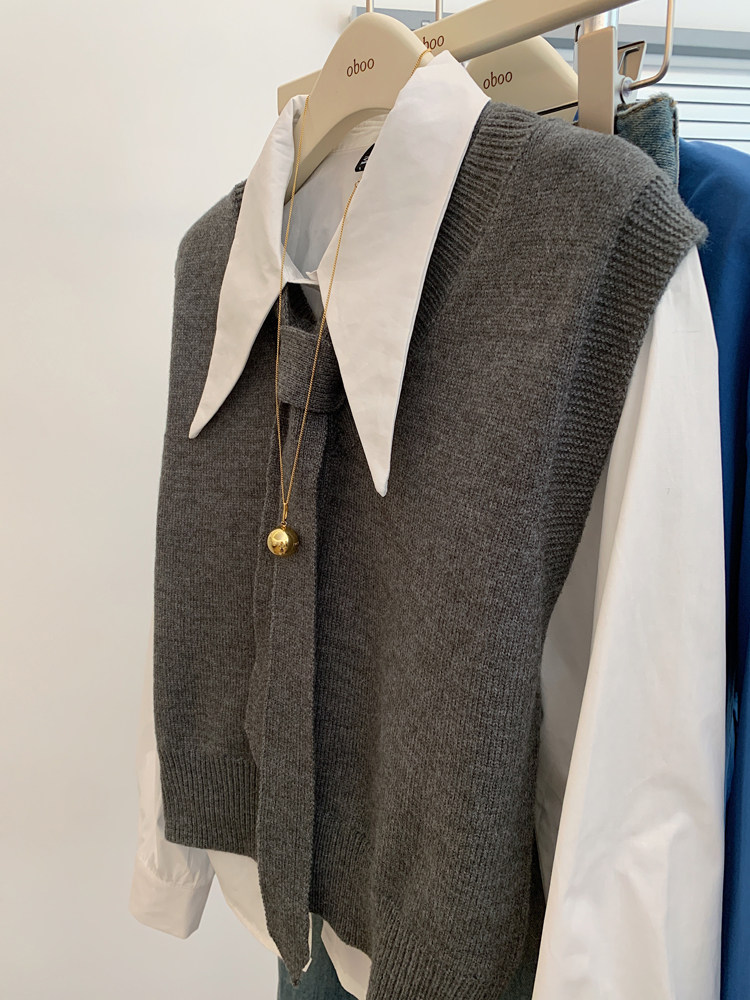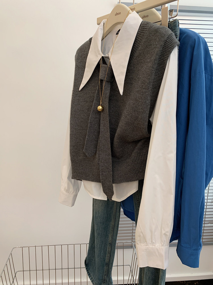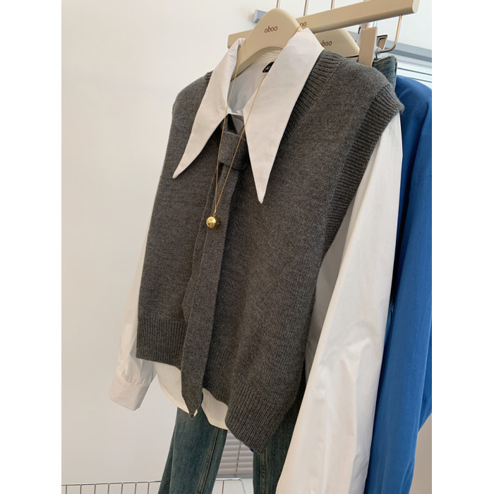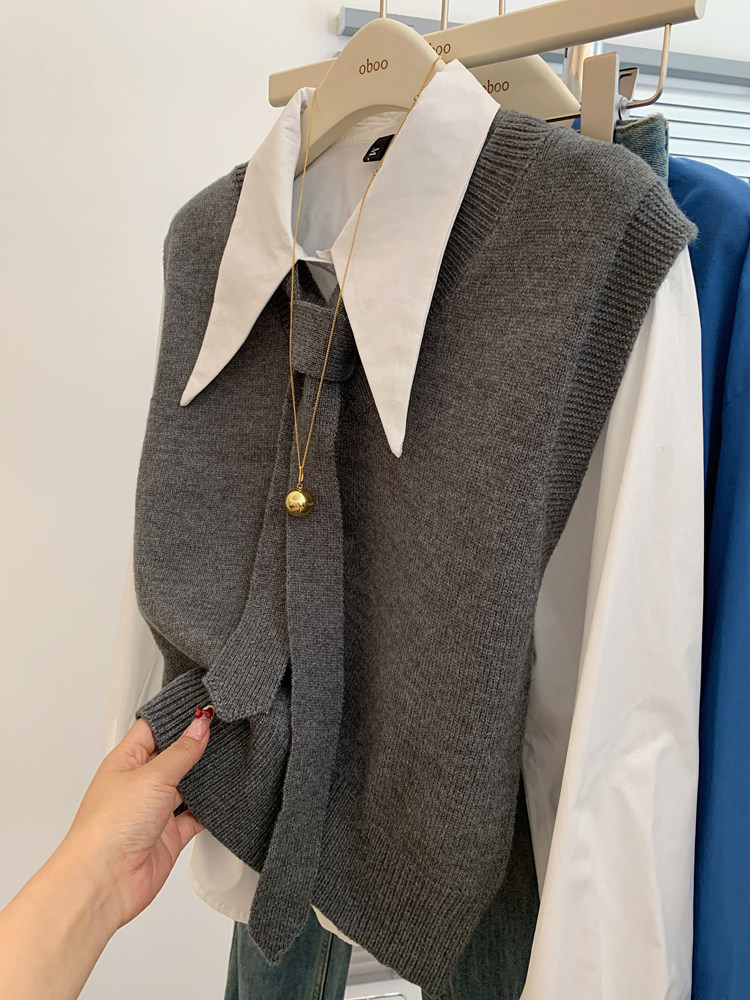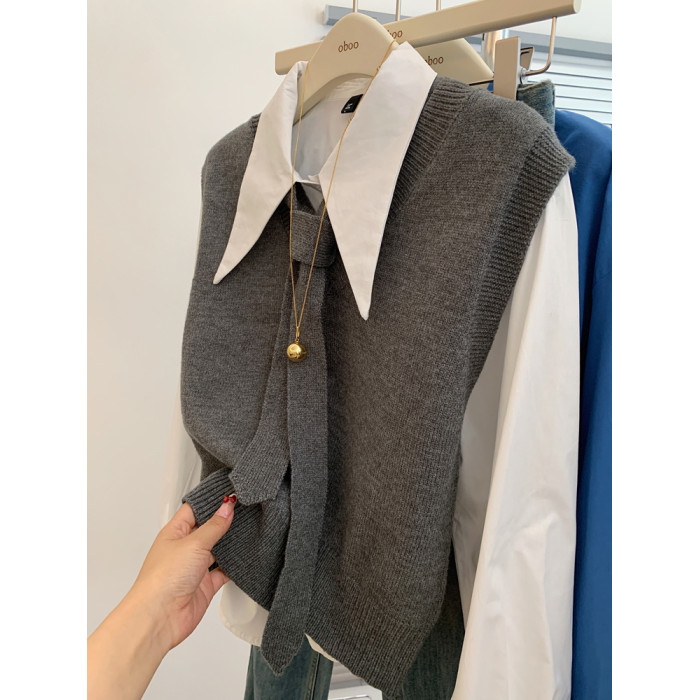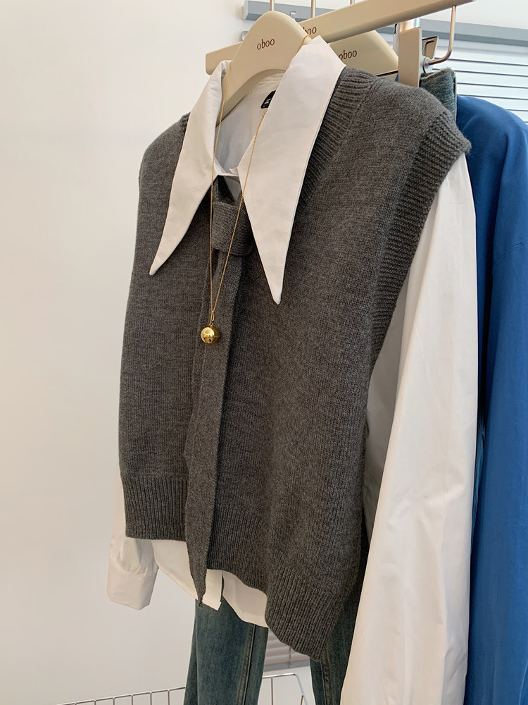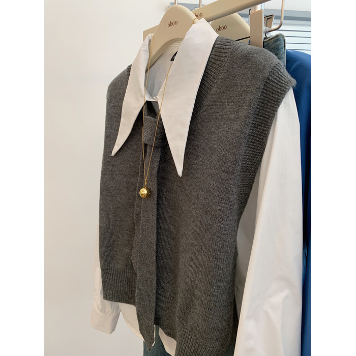 兩件套襯衫曡穿針織背心毛衣馬甲女內搭可外穿高級感氣質上衣秋季