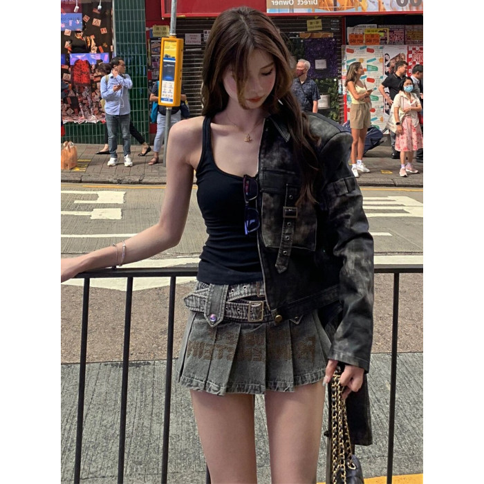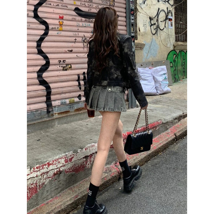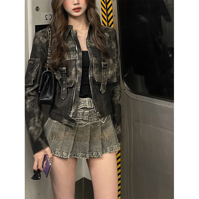 7iAe 秋冬新款小衆設計感高級感街頭港風短款機車夾克皮衣外套女