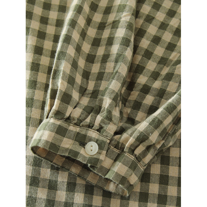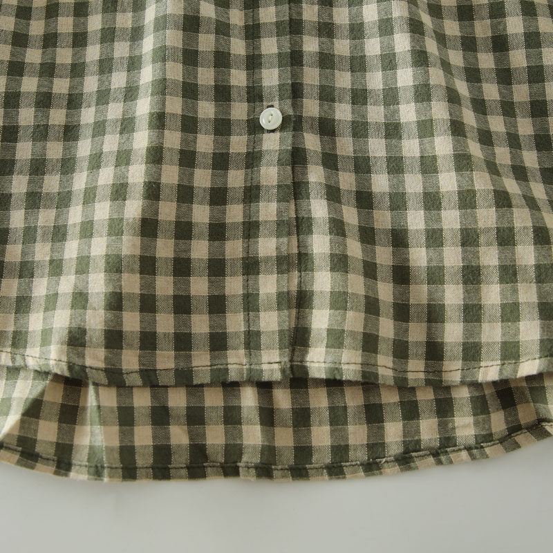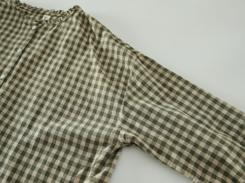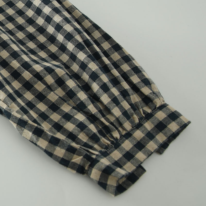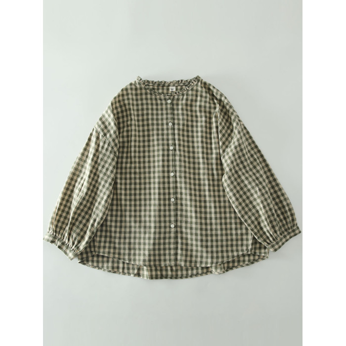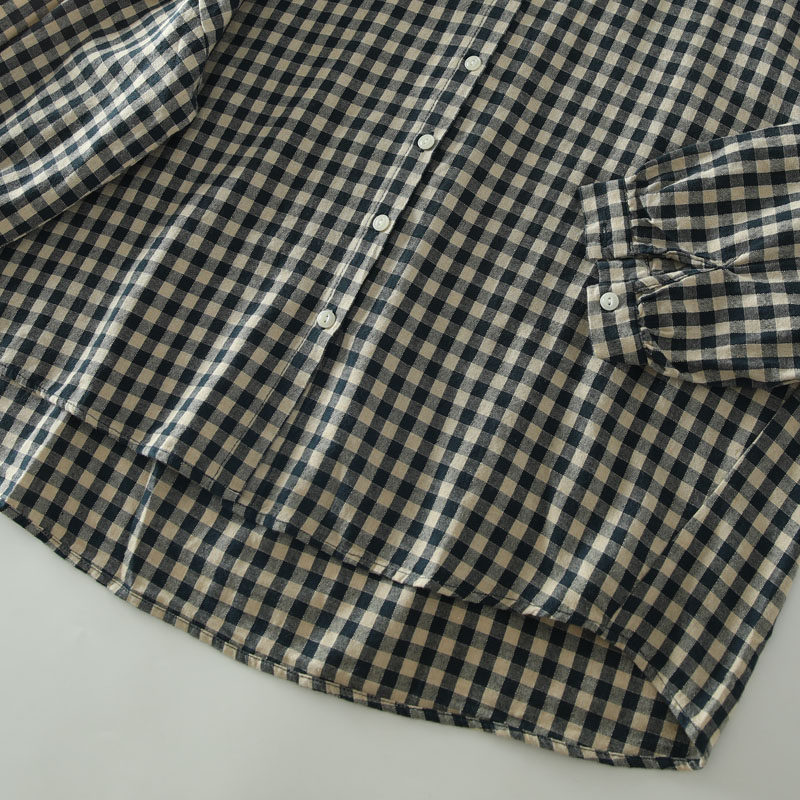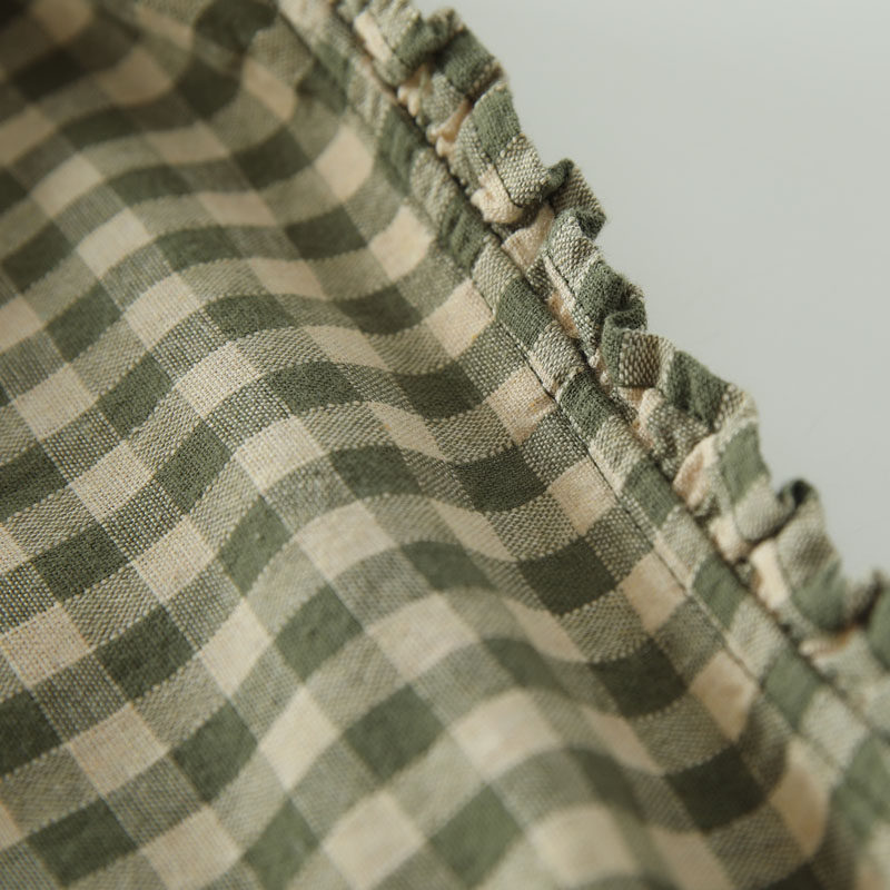甜美日系木耳花邊領純棉格子長袖襯衫女寬鬆百搭小衫上衣春秋新款