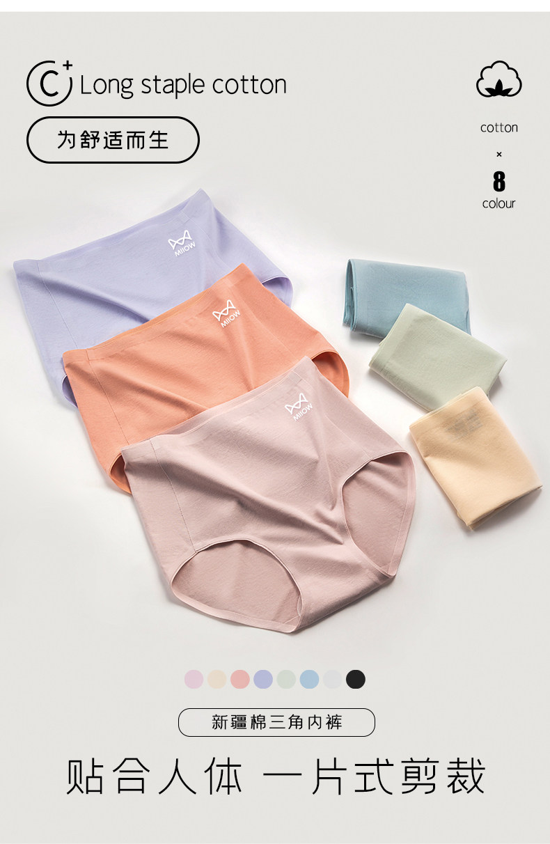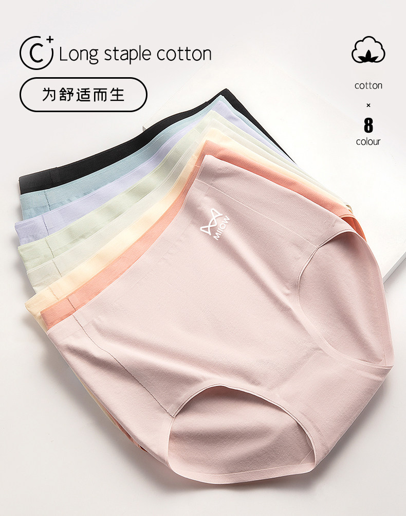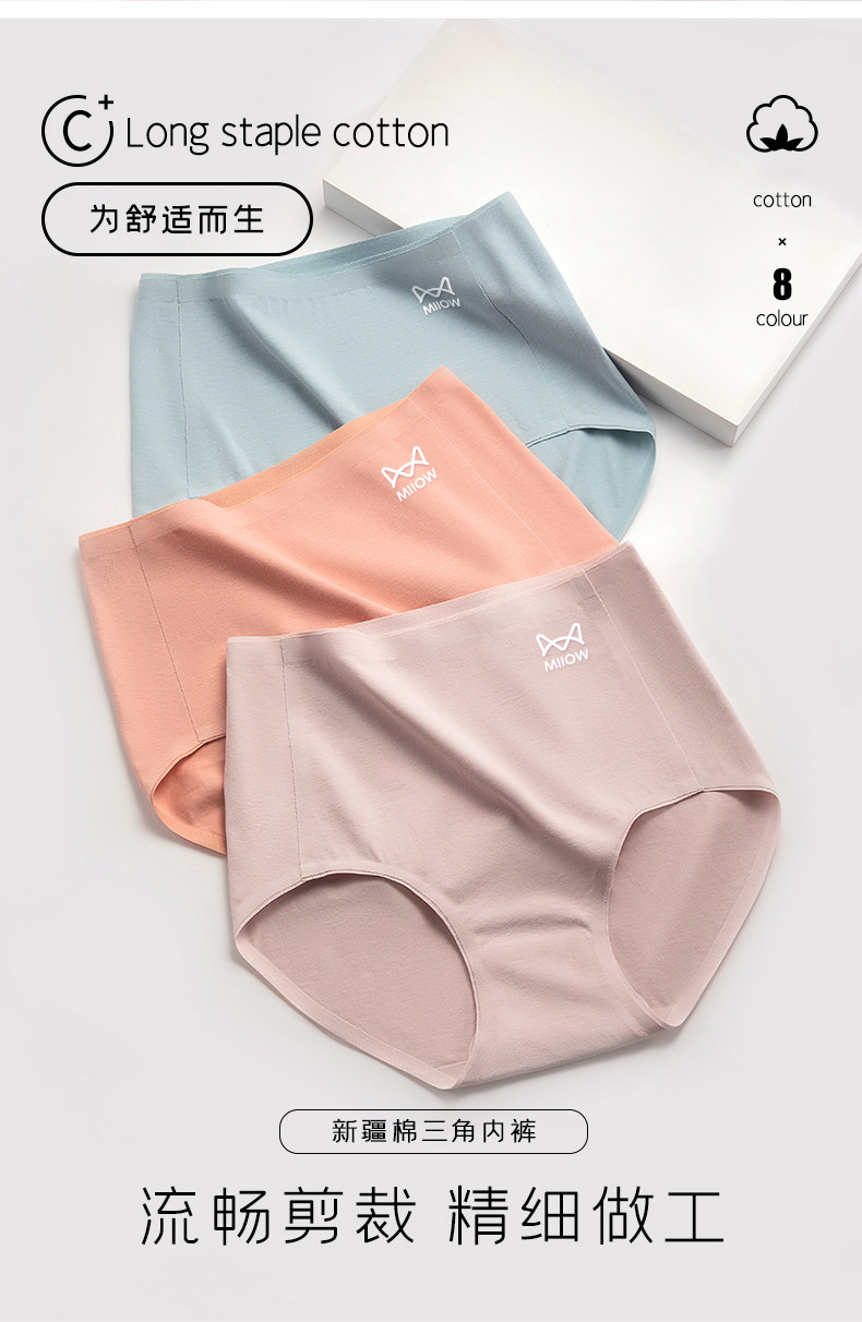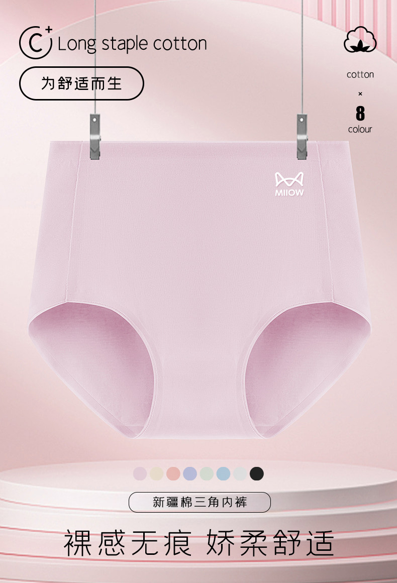 貓人無痕高腰內褲女士純棉收腹全棉抗菌襠女式新款女生三角短褲頭