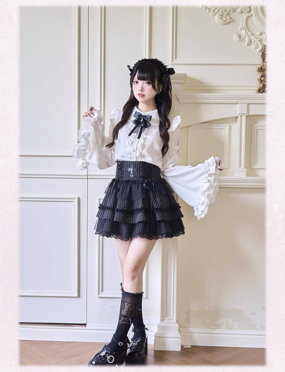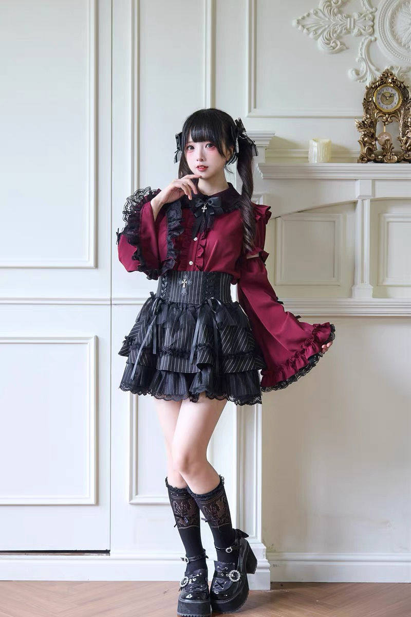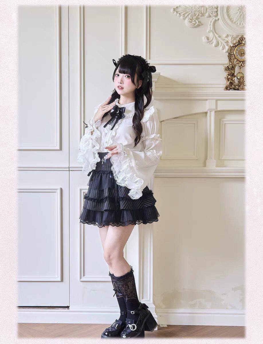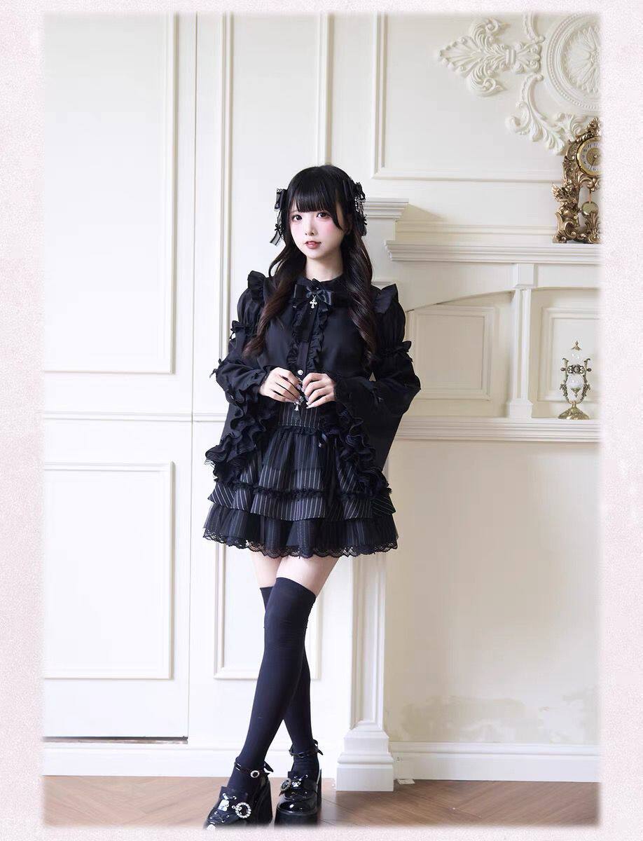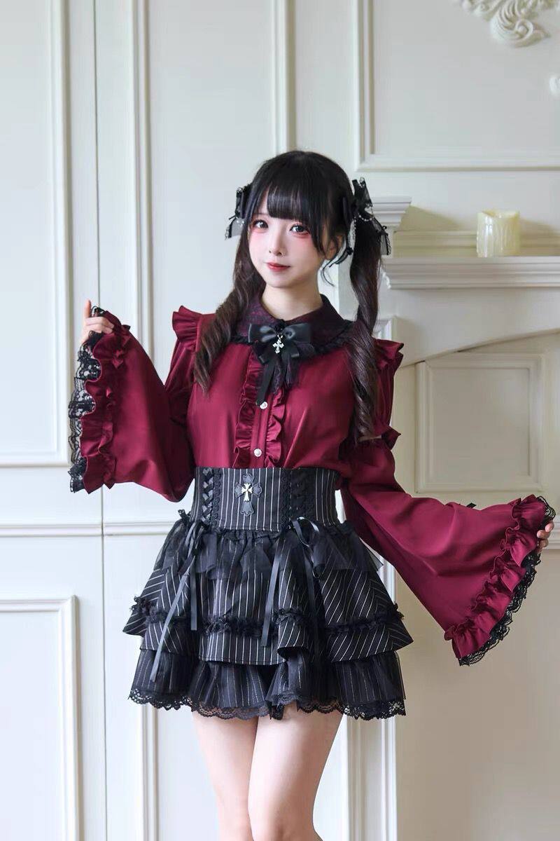 原創設計夜雀姬袖內搭 蕾服量産型上衣哥特芭蕾風Lolita日系襯衫A