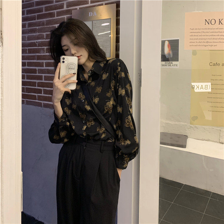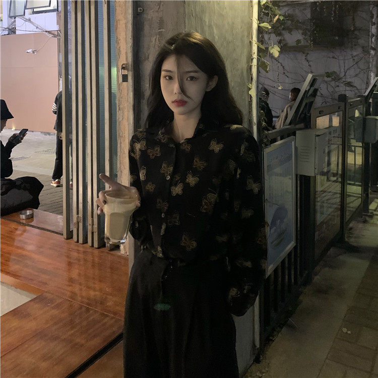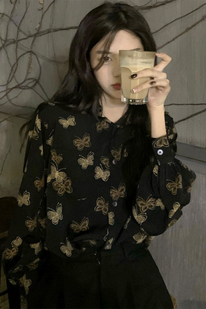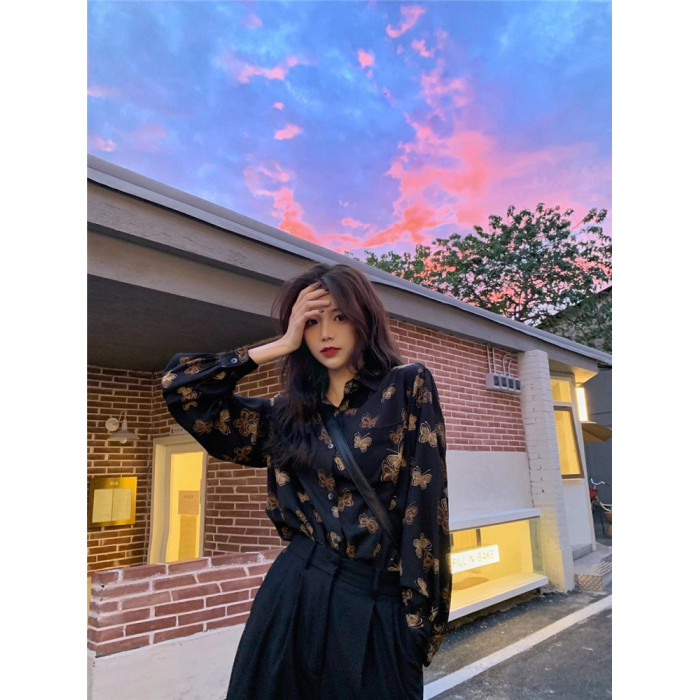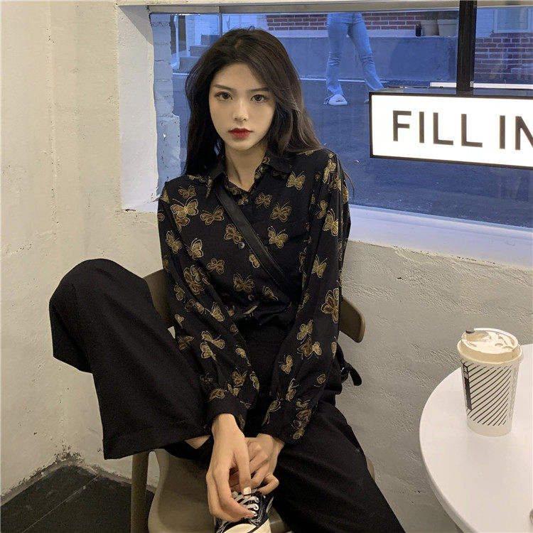 大碼胖妹妹蝴蝶襯衫女春秋裝新款設計感小衆復古港風輕熟法式上衣