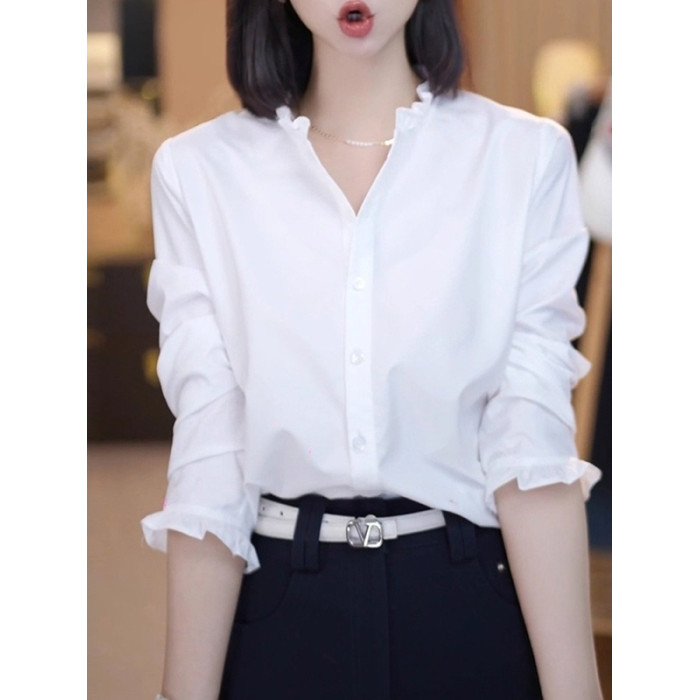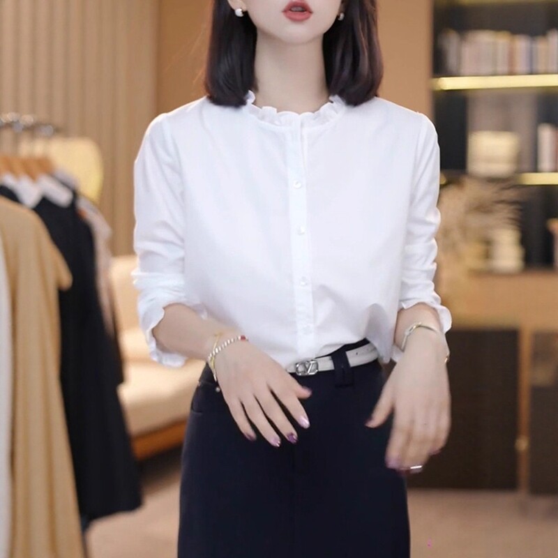 大碼時尚百搭荷葉邊白色襯衫女春季2026新款胖mm顯瘦氣質寬鬆上衣