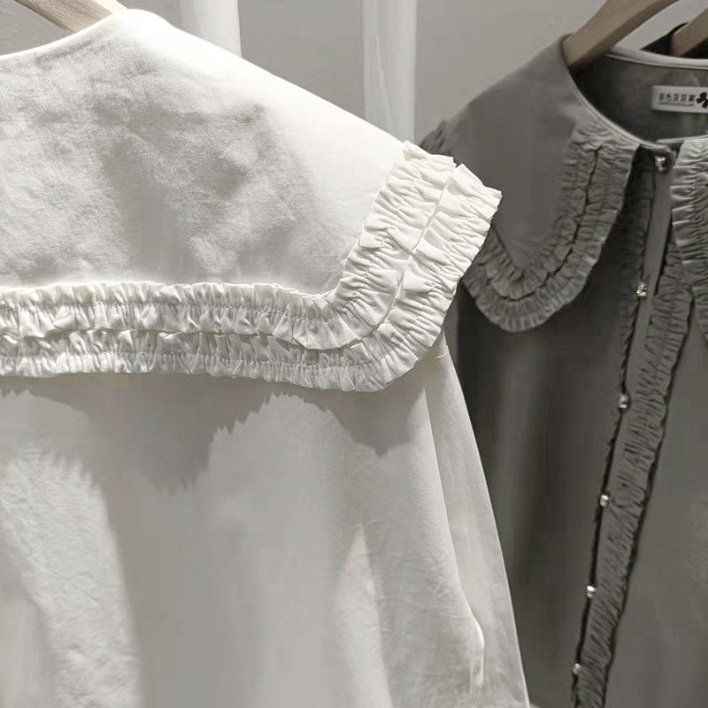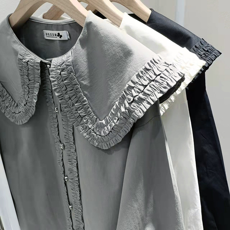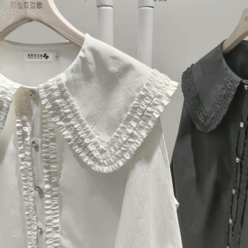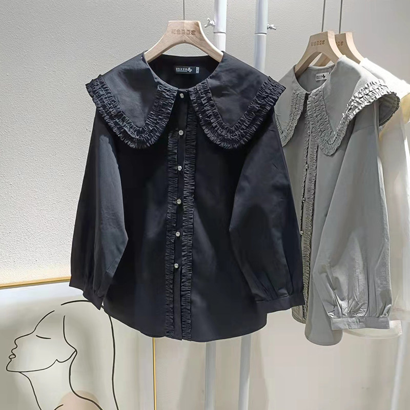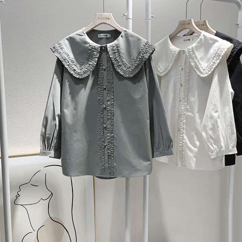 歐貨法式垂感襯衫女春秋氣質減齡襯衣設計感小衆大領花邊上衣大碼