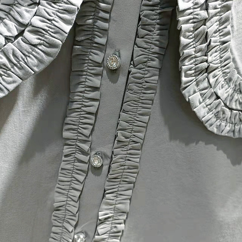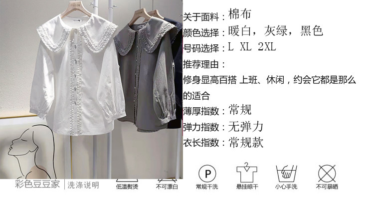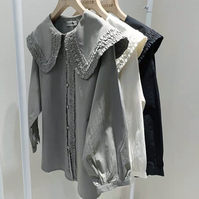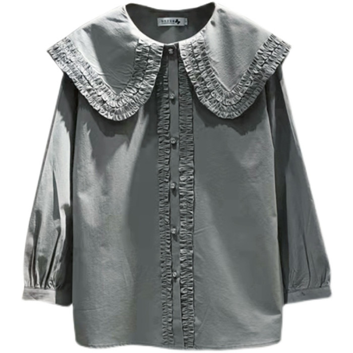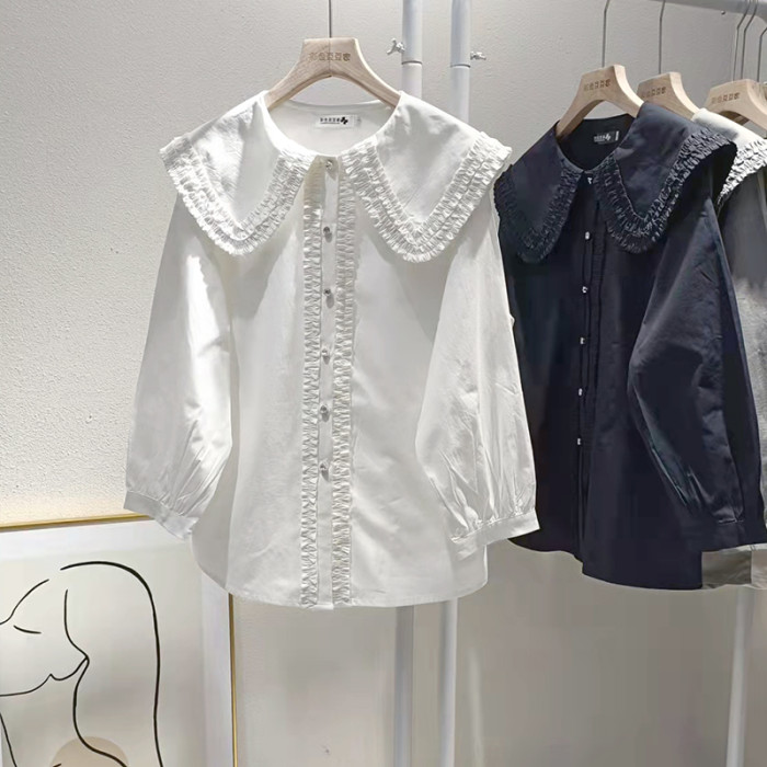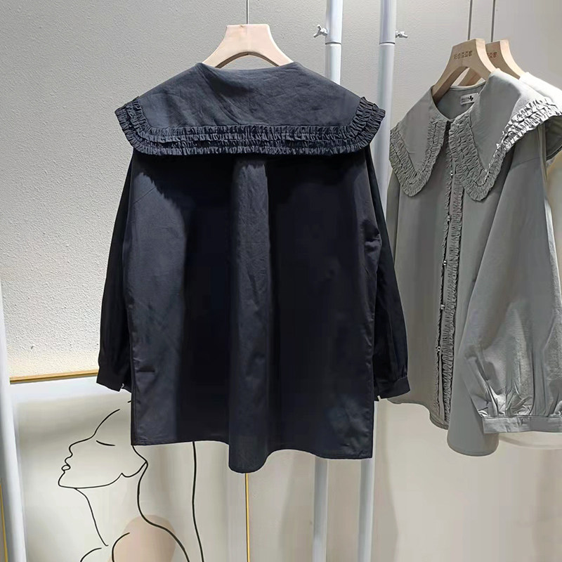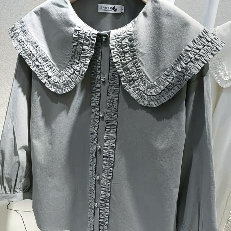 歐貨法式垂感襯衫女春秋氣質減齡襯衣設計感小衆大領花邊上衣大碼