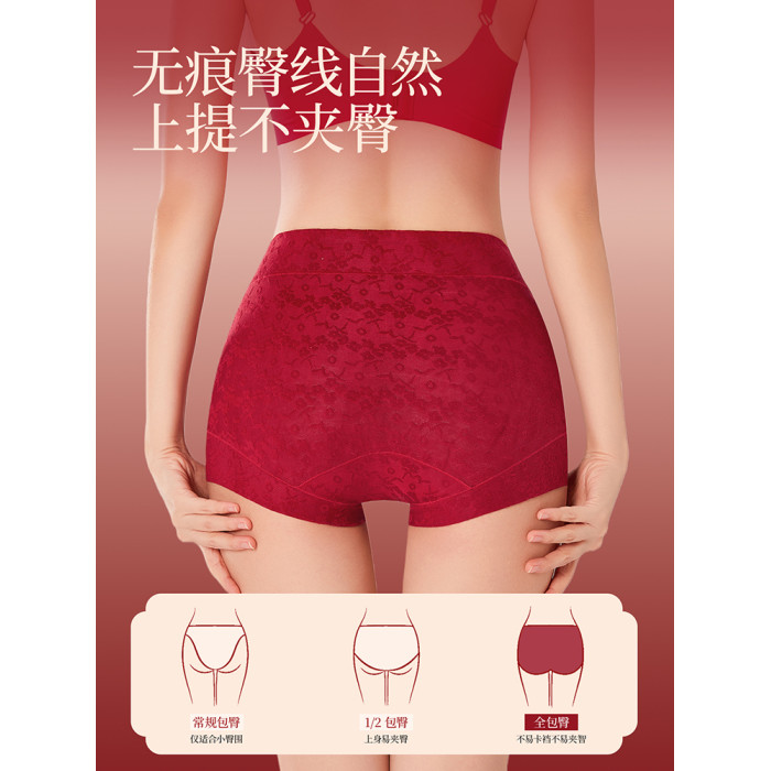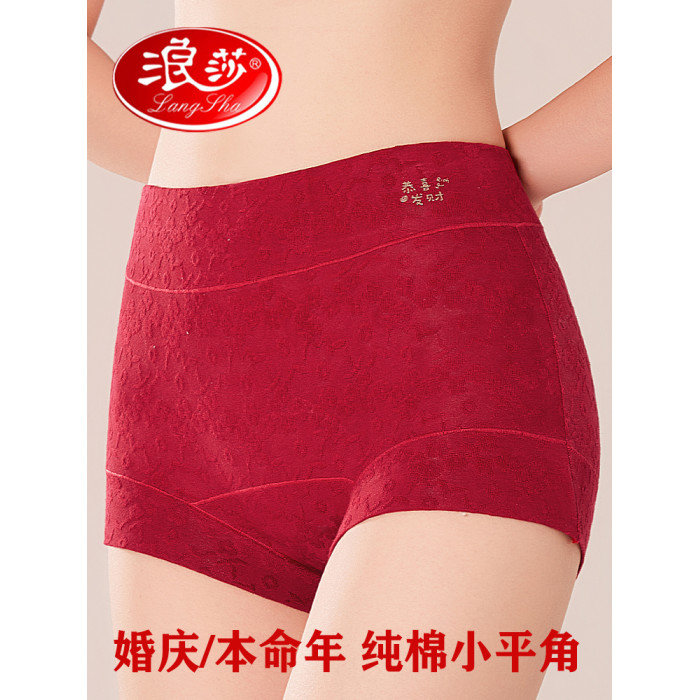 浪莎高腰四角紅色內褲女本命年2026馬年新款100%純棉結婚平角內褲