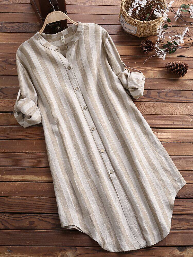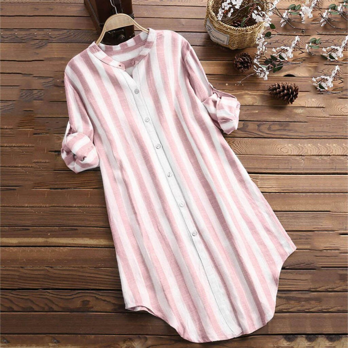 200斤胖mm襯衫女寬鬆條紋中長款遮肚顯瘦長袖大碼棉麻襯衣春