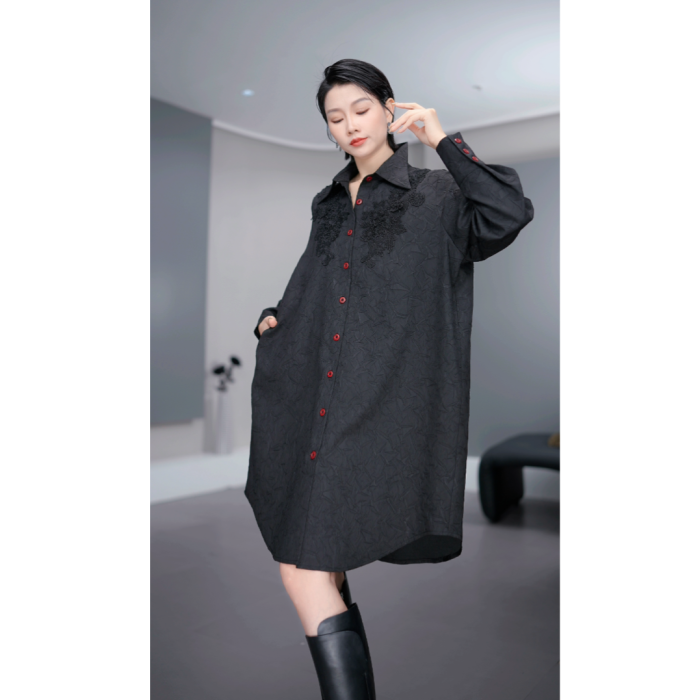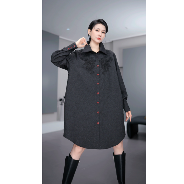 鑫鑫2025冬季新款流行時尚潮牌女裝暗黑系刺綉設計百搭襯衫8097