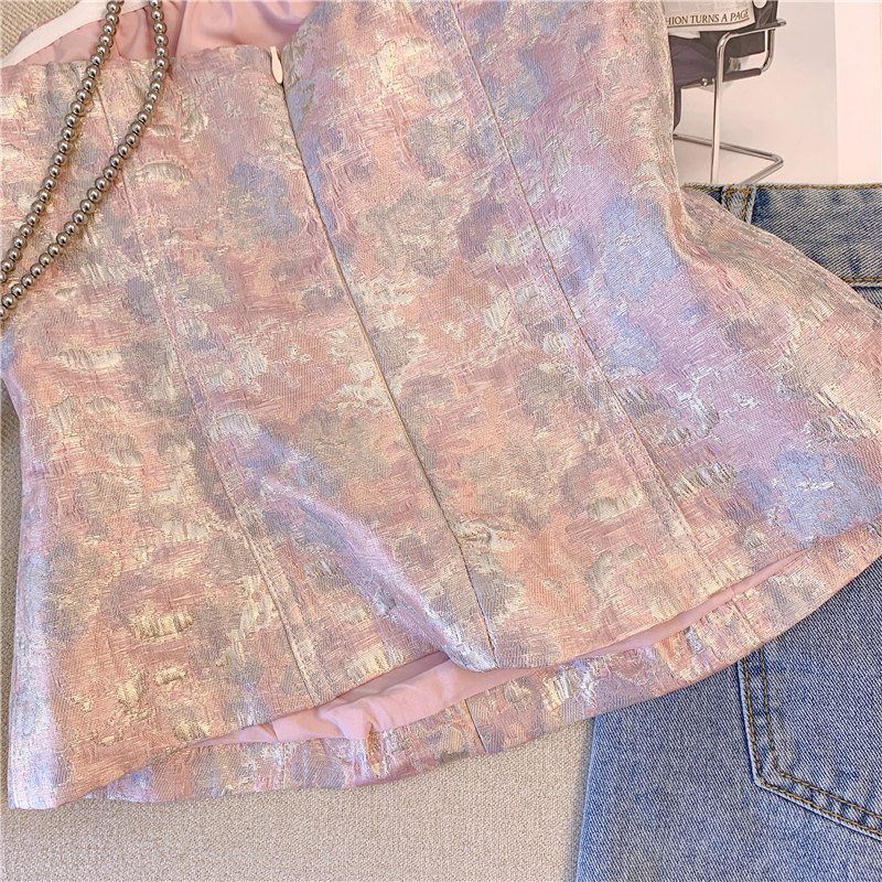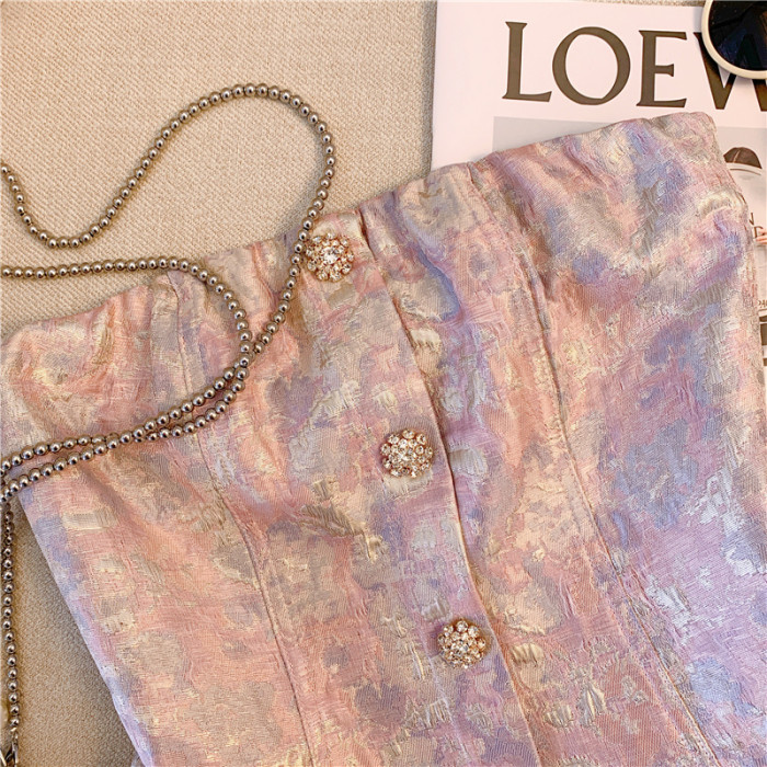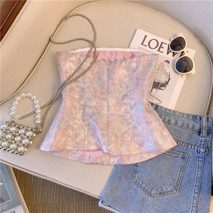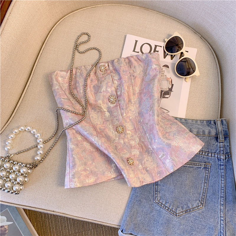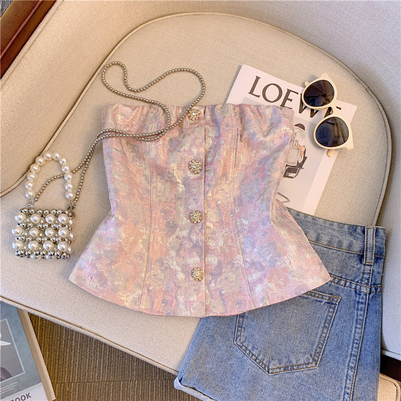 廣州十三行爆款女裝印花鑽釦抹胸背心女外穿2025新款性感辣妹短款