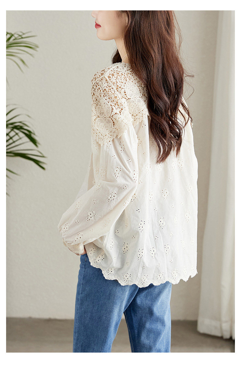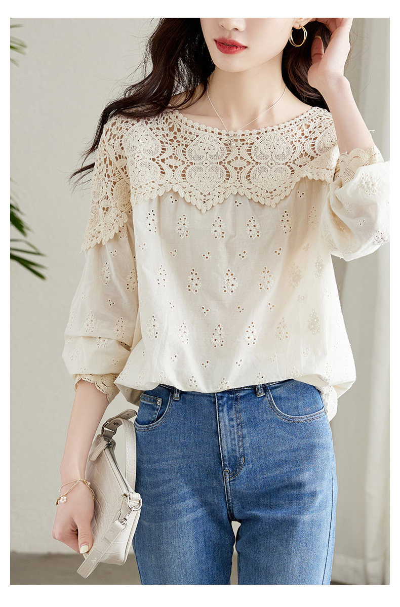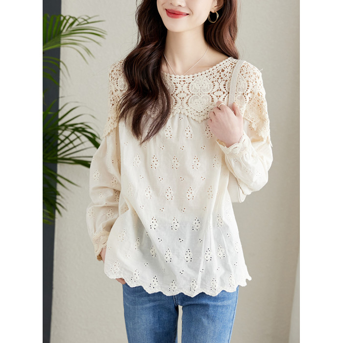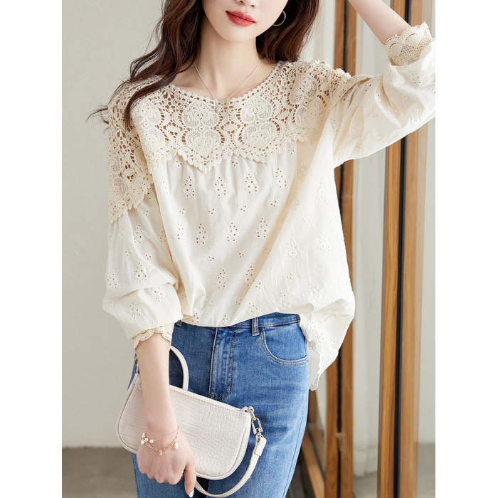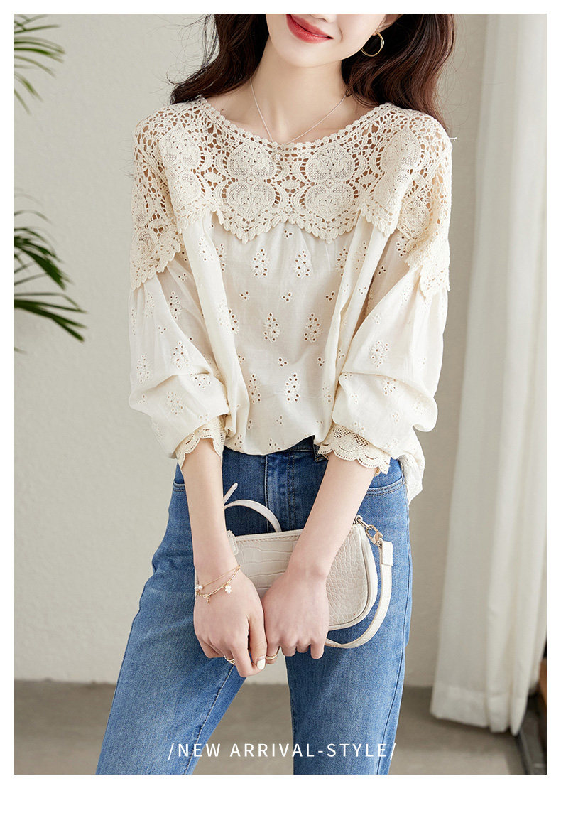 【好物推薦】【高品質】早春裝今年新款長袖蕾絲上衣漂亮洋氣小衫