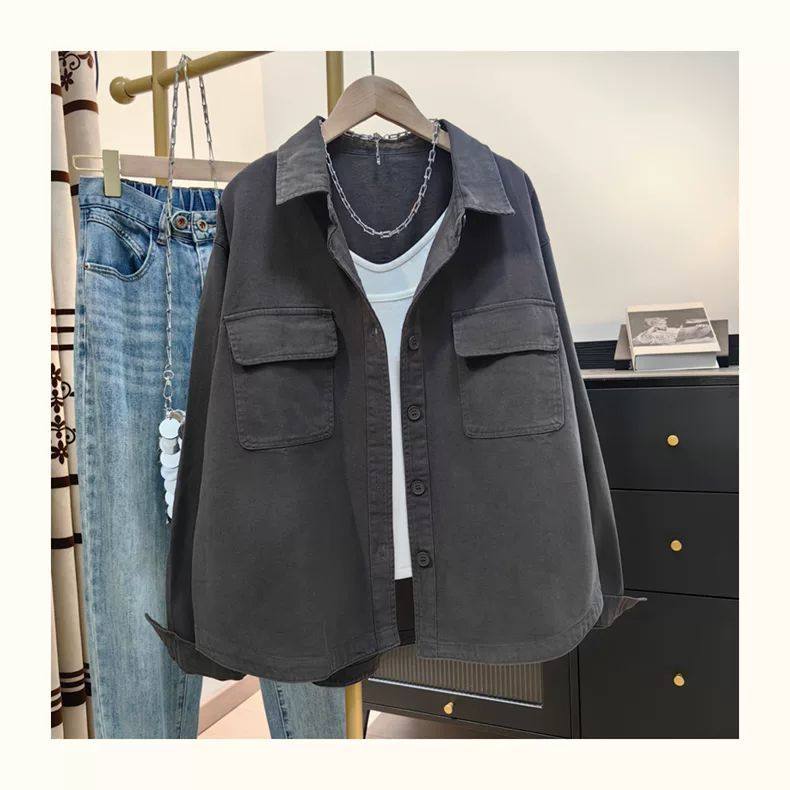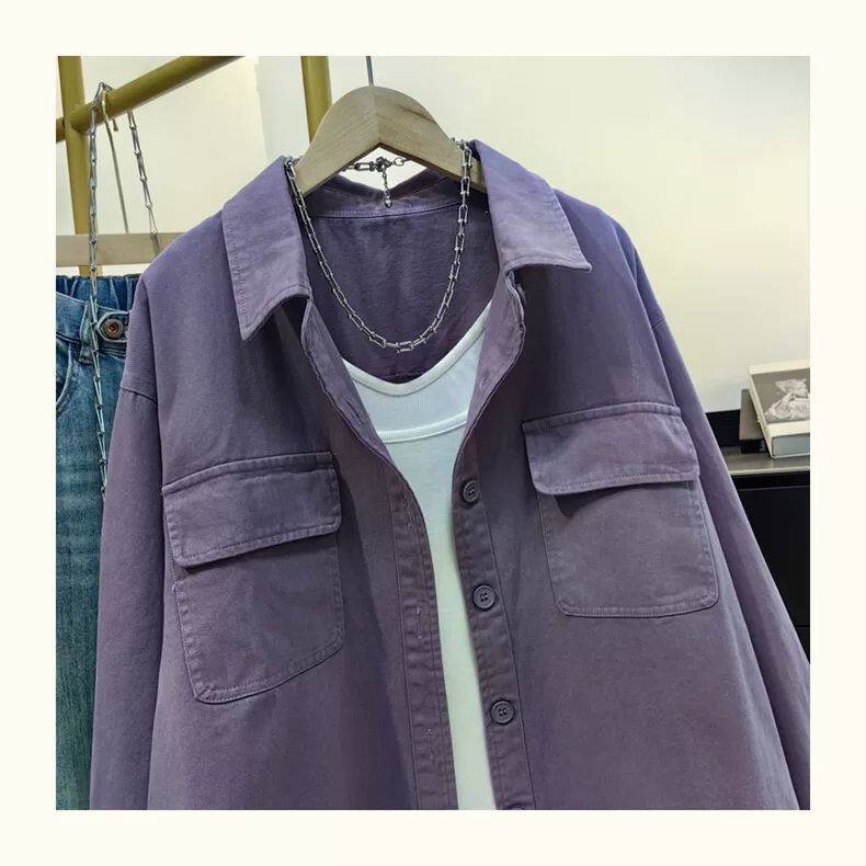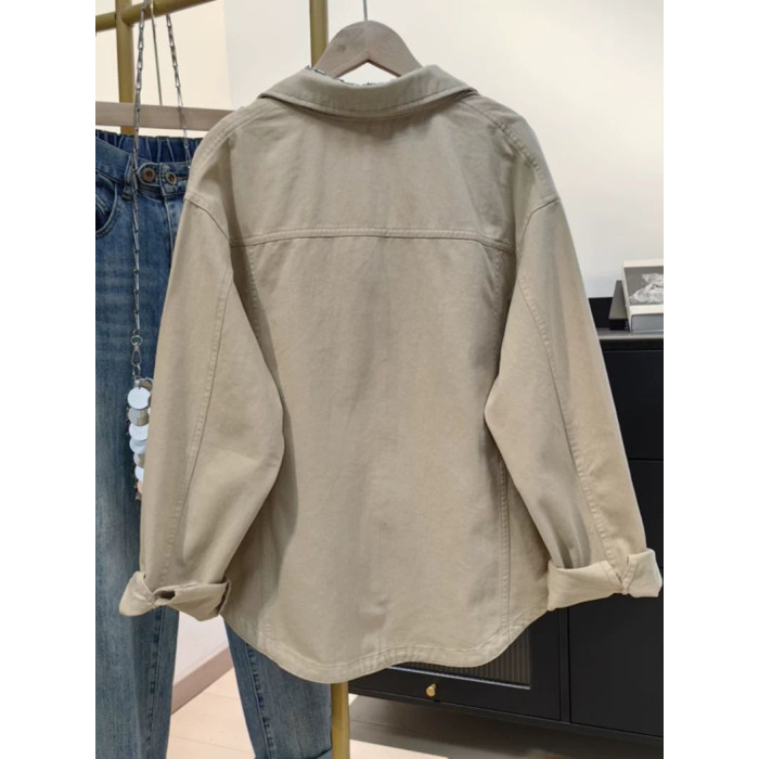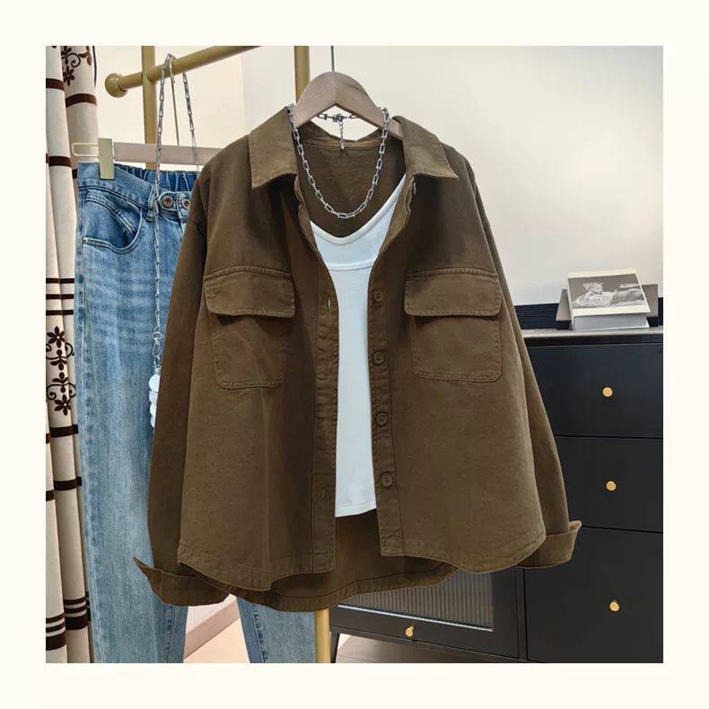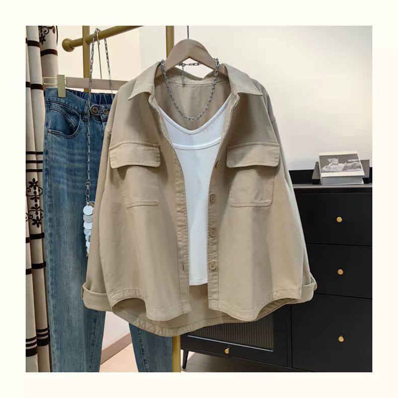 純棉襯衣女長袖韓版設計感休閒工裝秋季新款小個子寬鬆襯衫薄外套