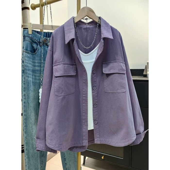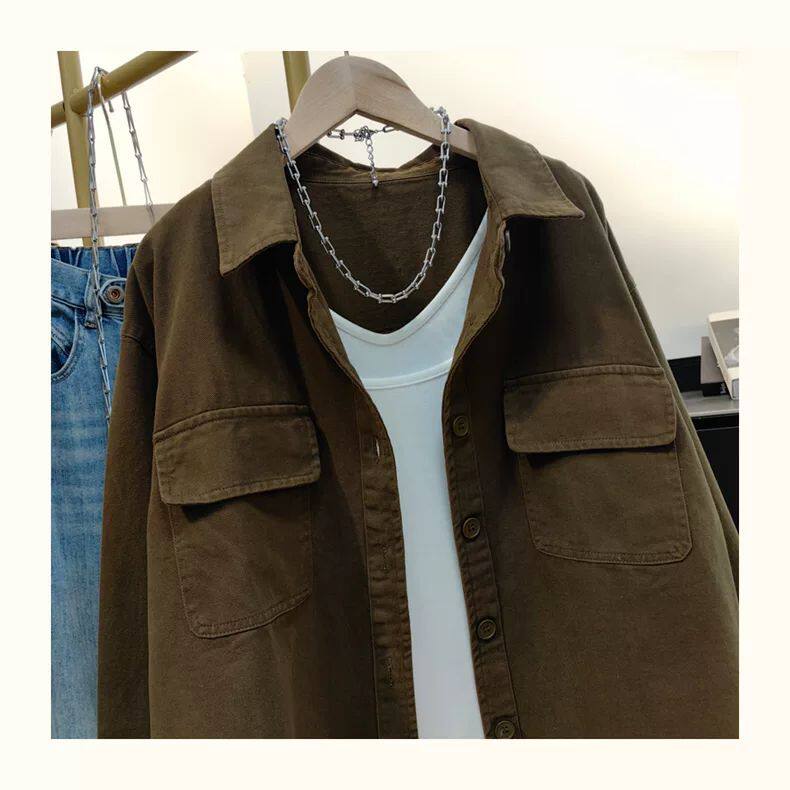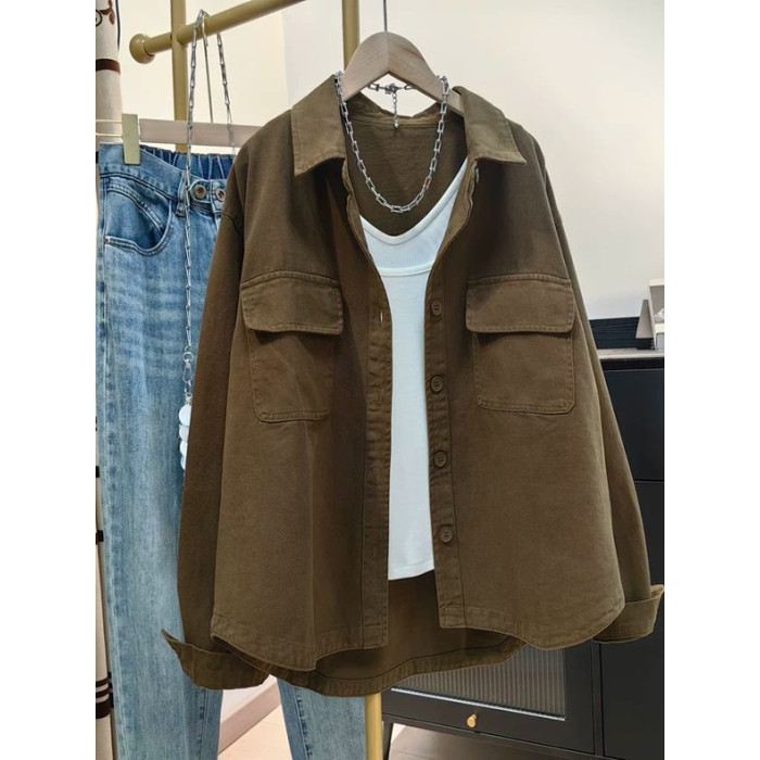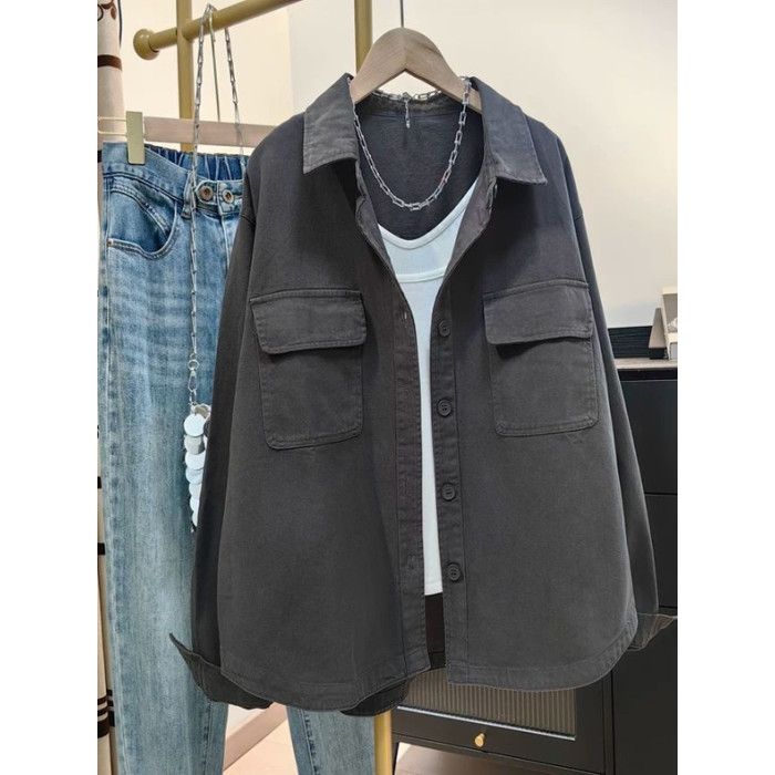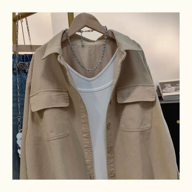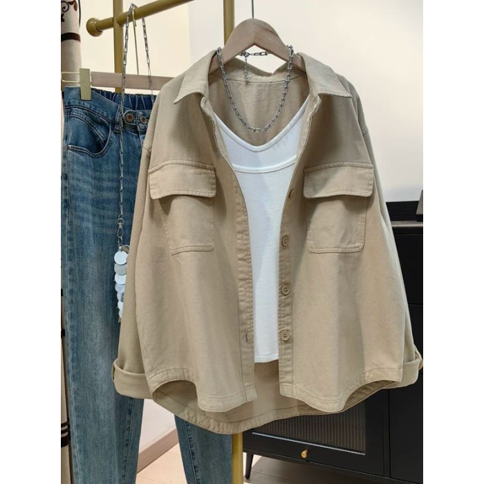 純棉襯衣女長袖韓版設計感休閒工裝秋季新款小個子寬鬆襯衫薄外套