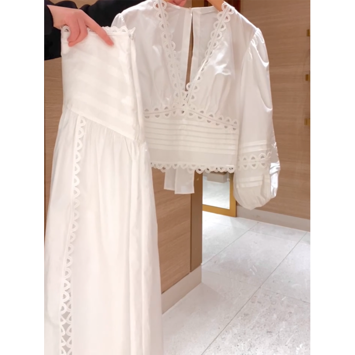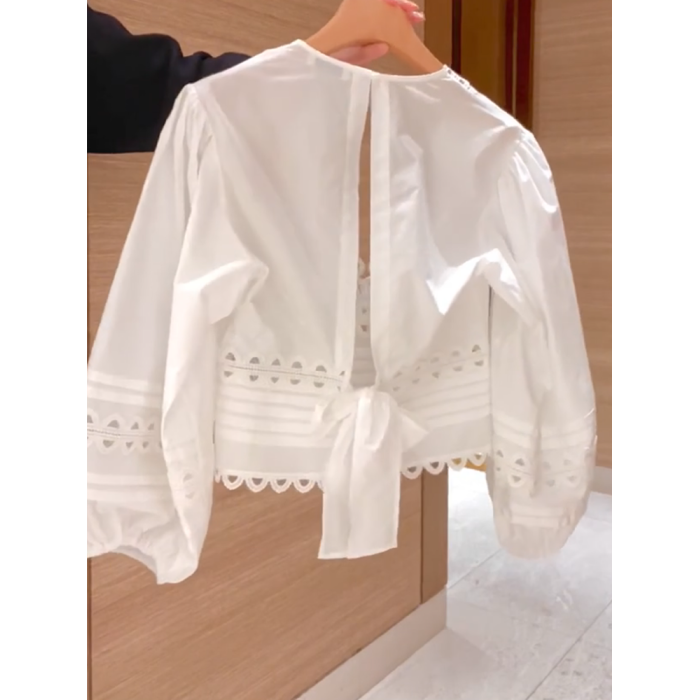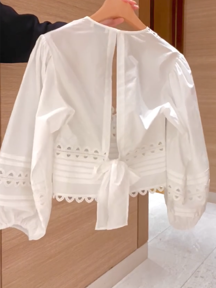2026年夏新款法式套裝顯瘦後背綁帶小衆設計長袖襯衫+白色半身裙