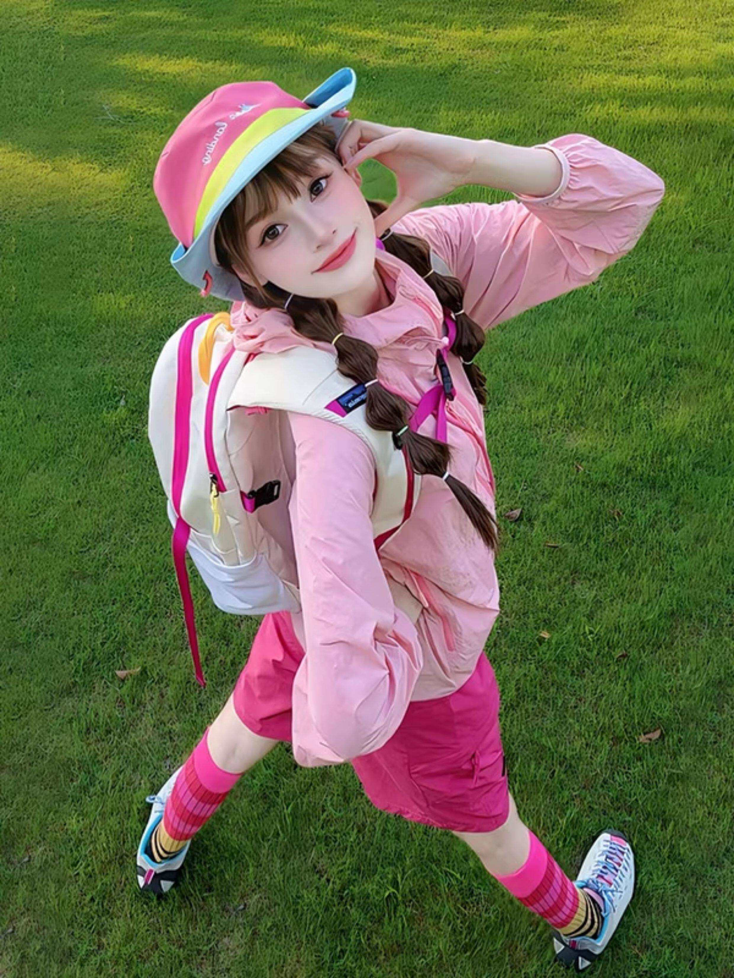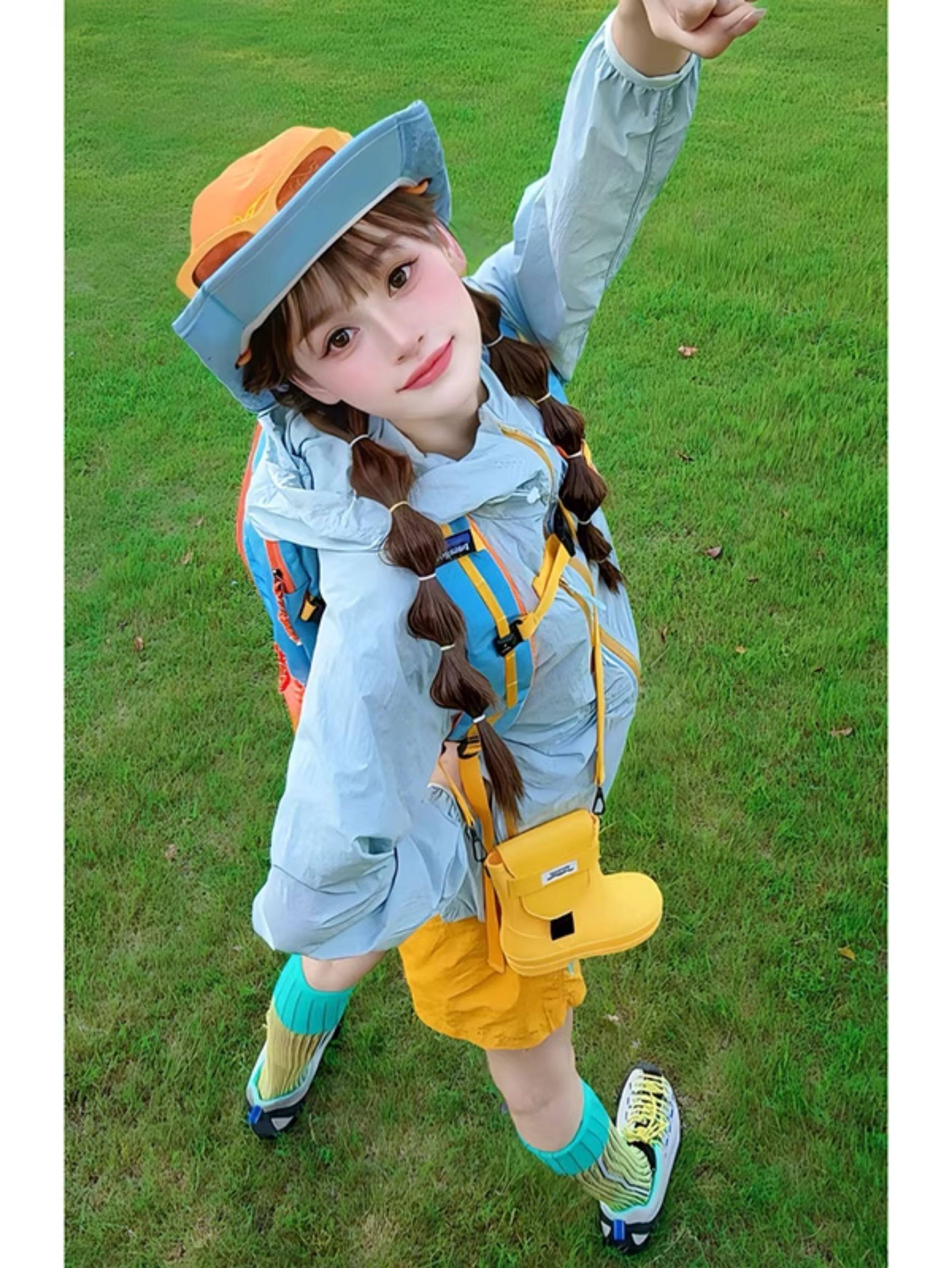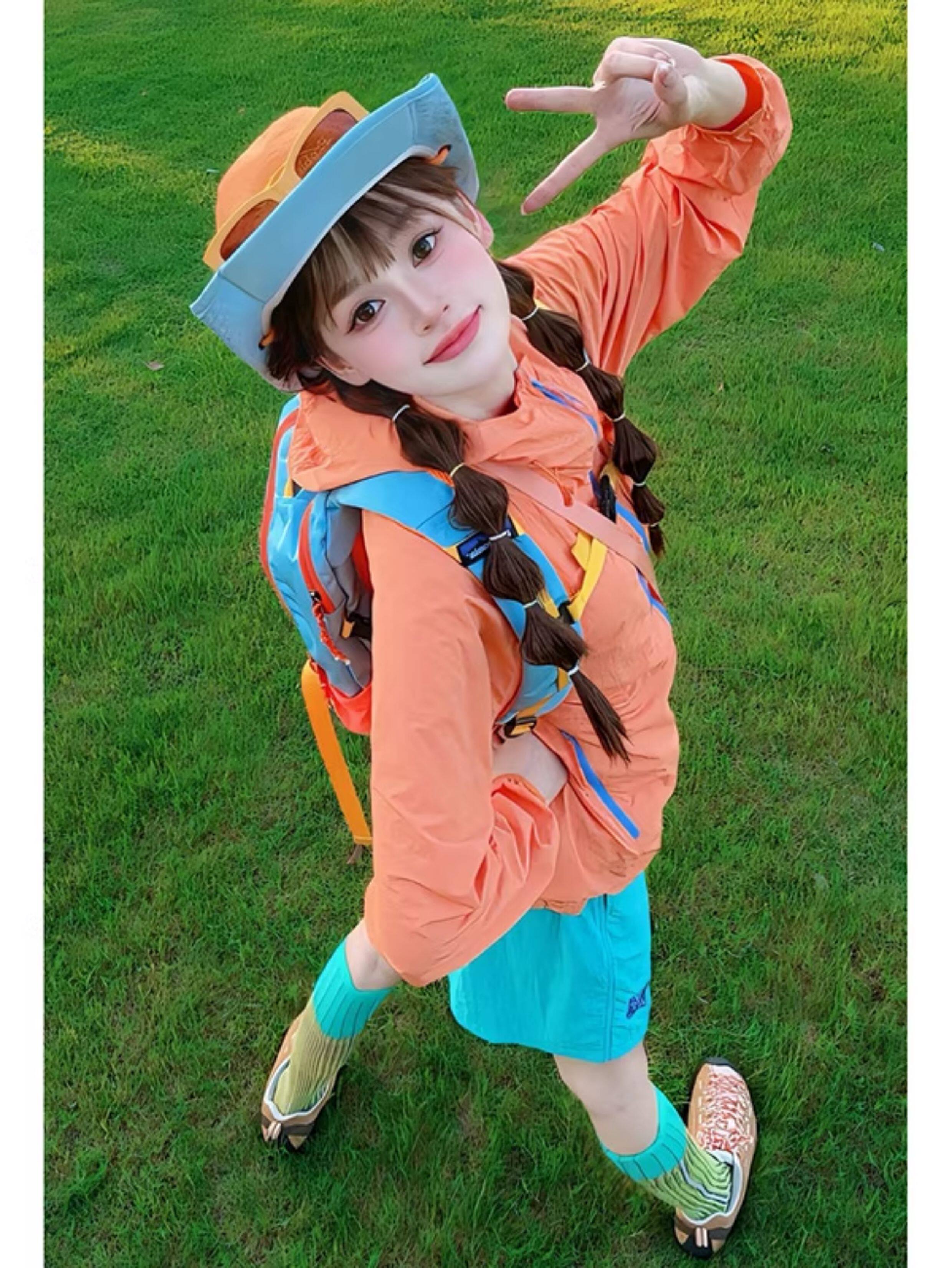 夏季多巴胺穿搭女裝套裝戶外輕薄防曬衣速乾冰絲皮膚衣長袖沖鋒衣