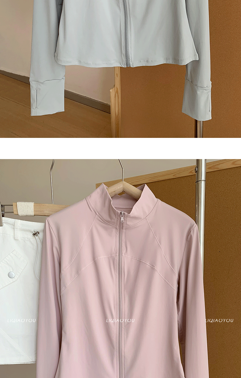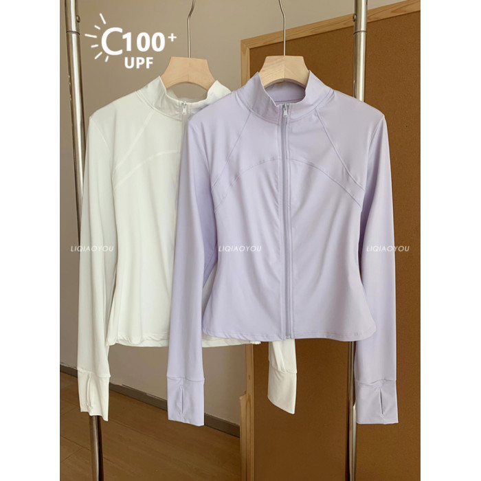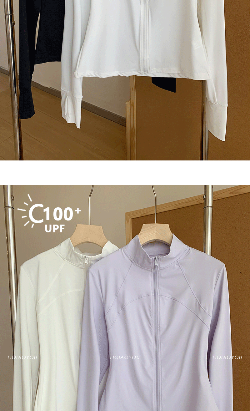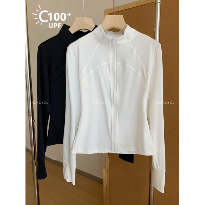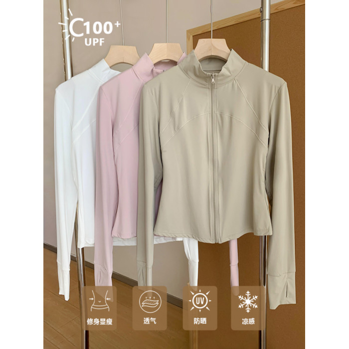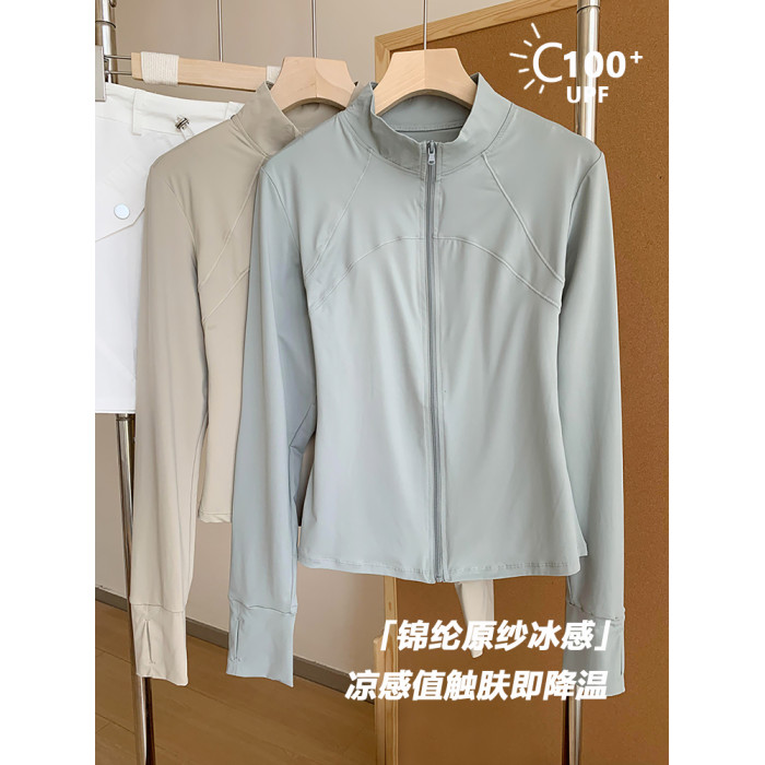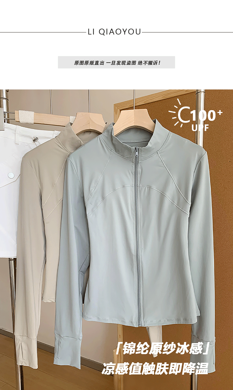 李喬優 冰感立領修身防曬衣女2025夏抗UV輕薄透氣顯瘦瑜珈服外套