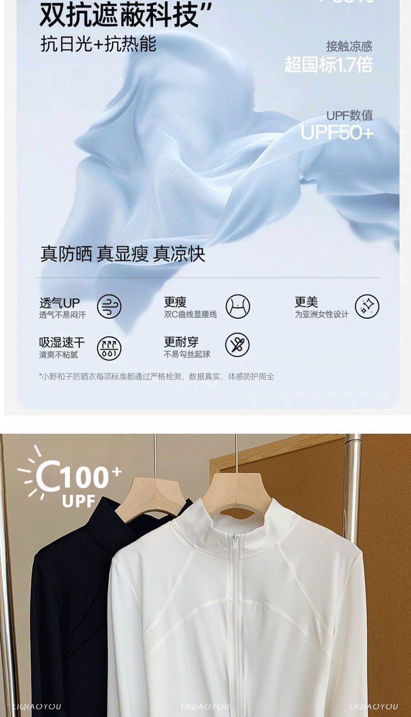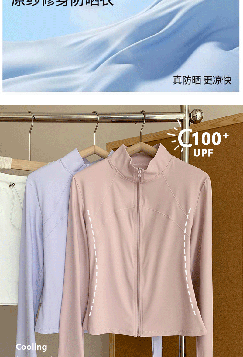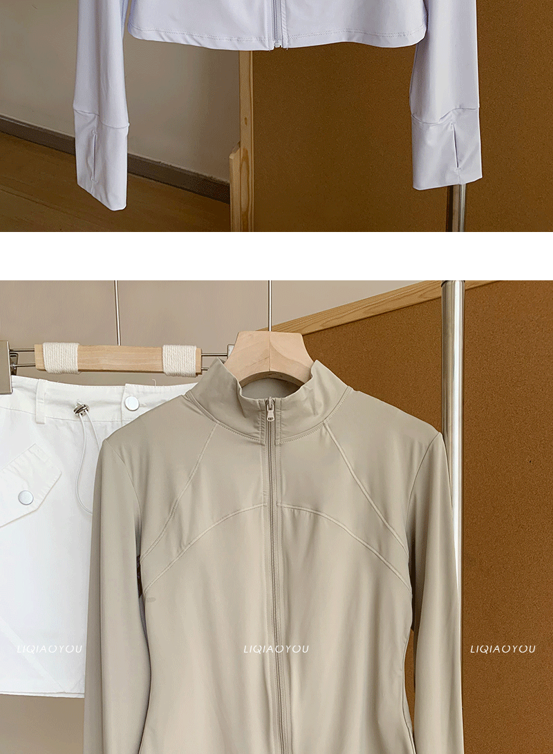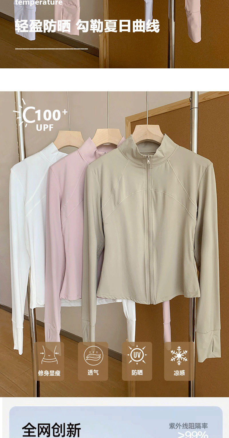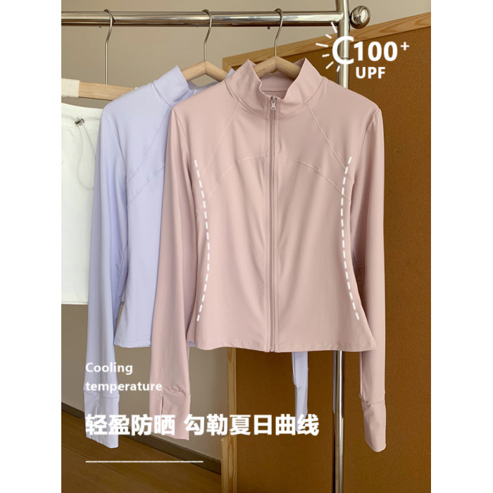 李喬優 冰感立領修身防曬衣女2025夏抗UV輕薄透氣顯瘦瑜珈服外套