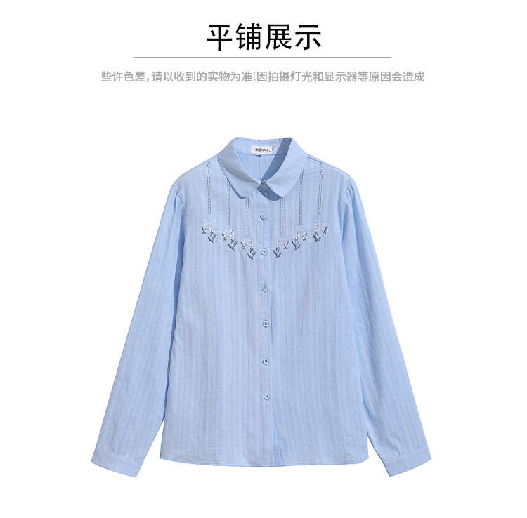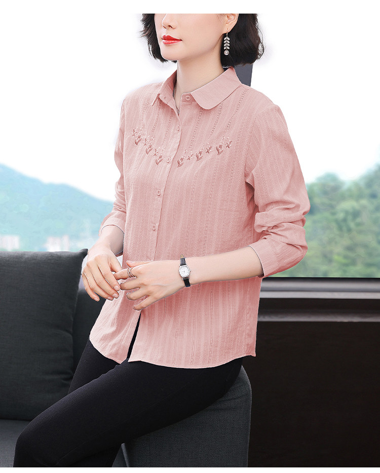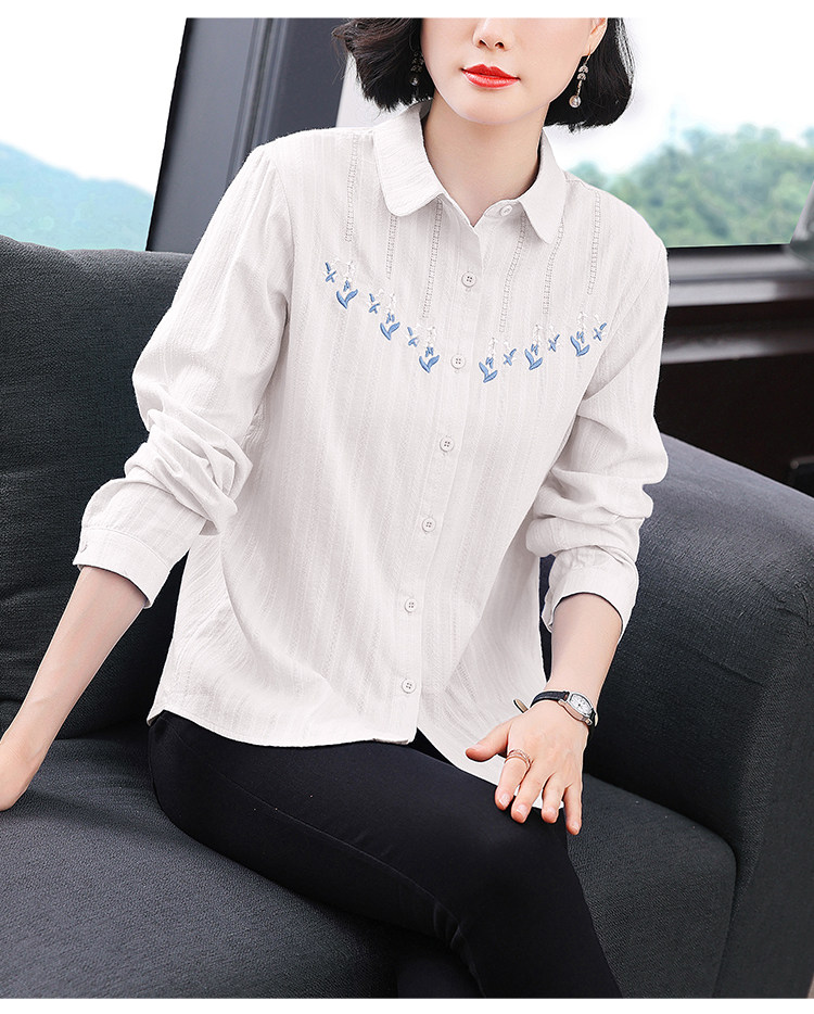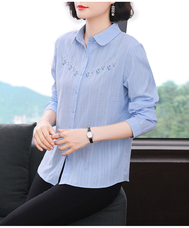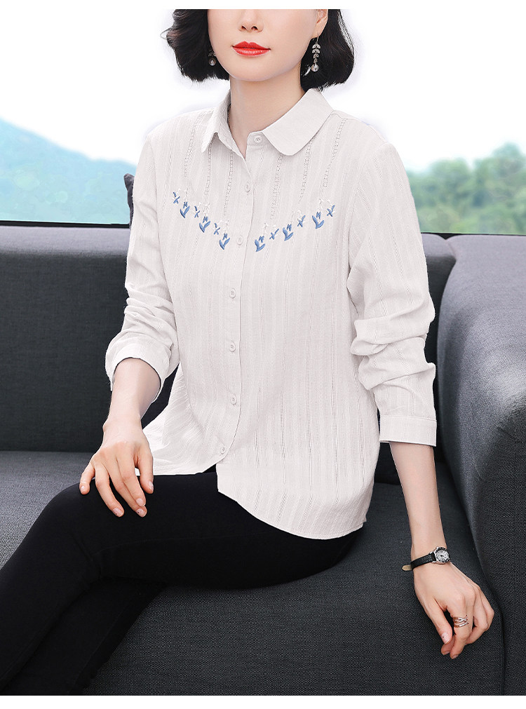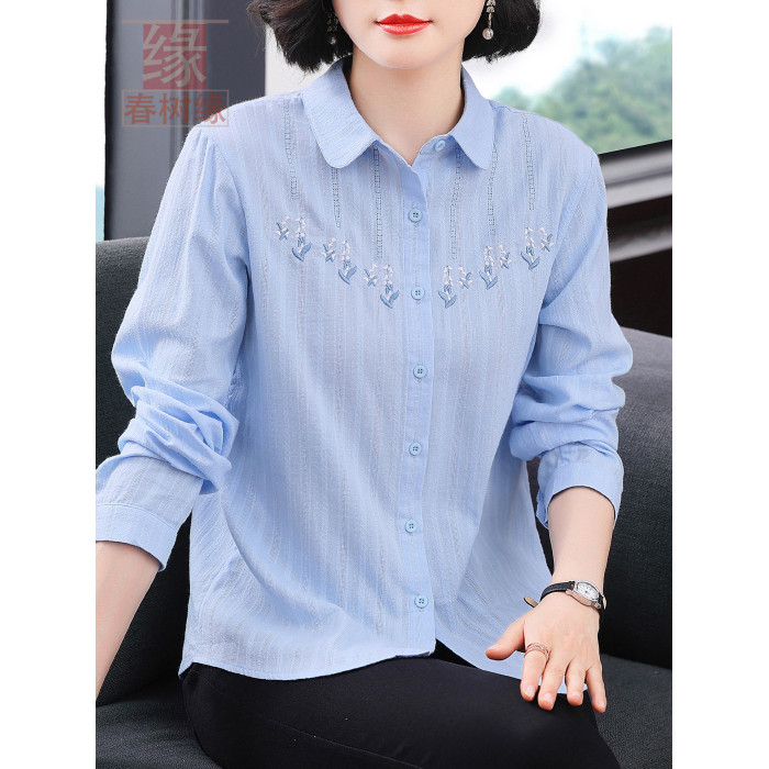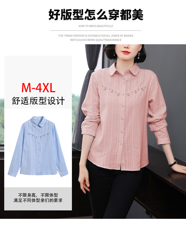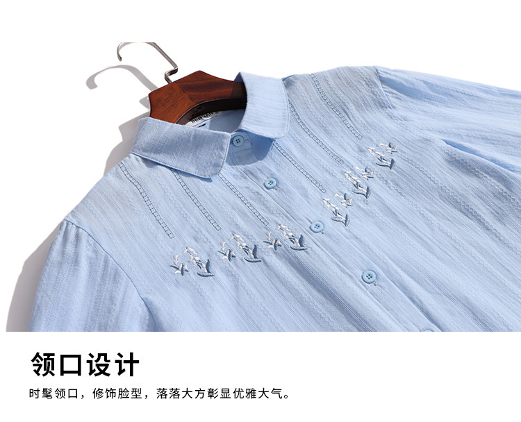 純棉防曬衣女春夏薄款寬鬆綉花純棉長袖襯衣中年媽媽開衫防曬服