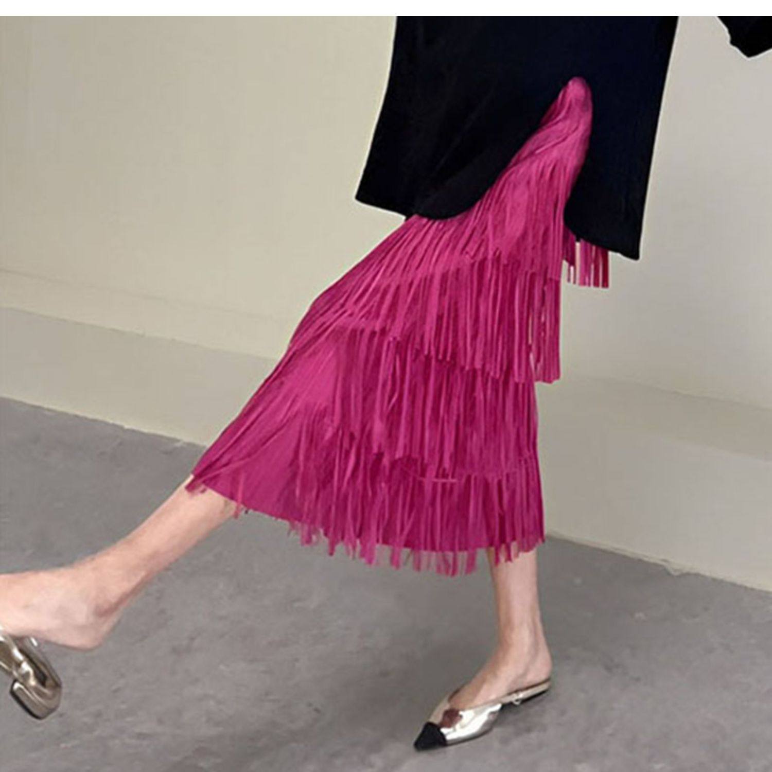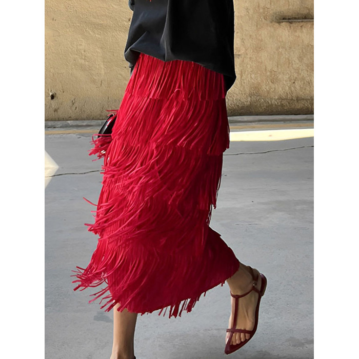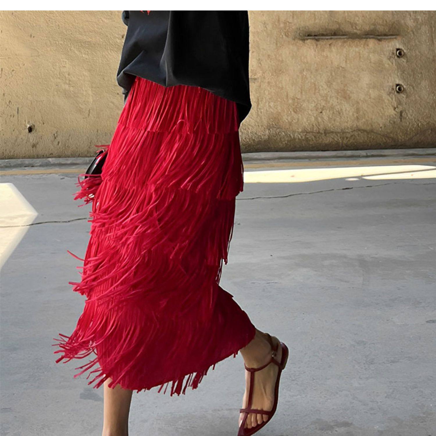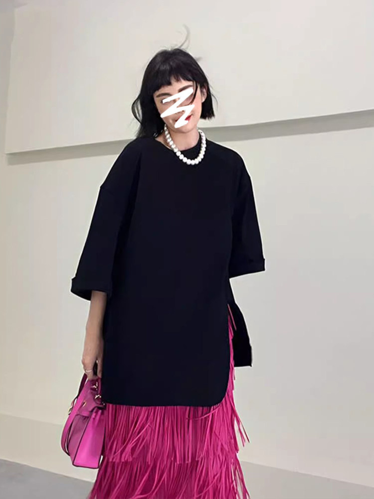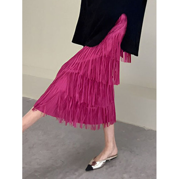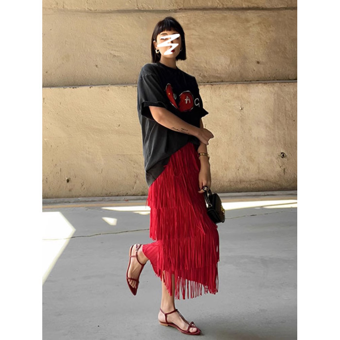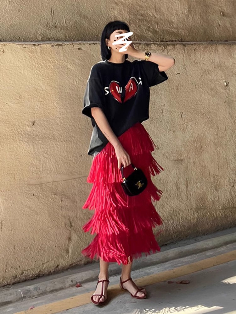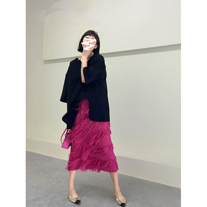 宅家褶皺高級流蘇裙2025女裝夏季新款小衆氣質百搭顯瘦上衣半身裙
