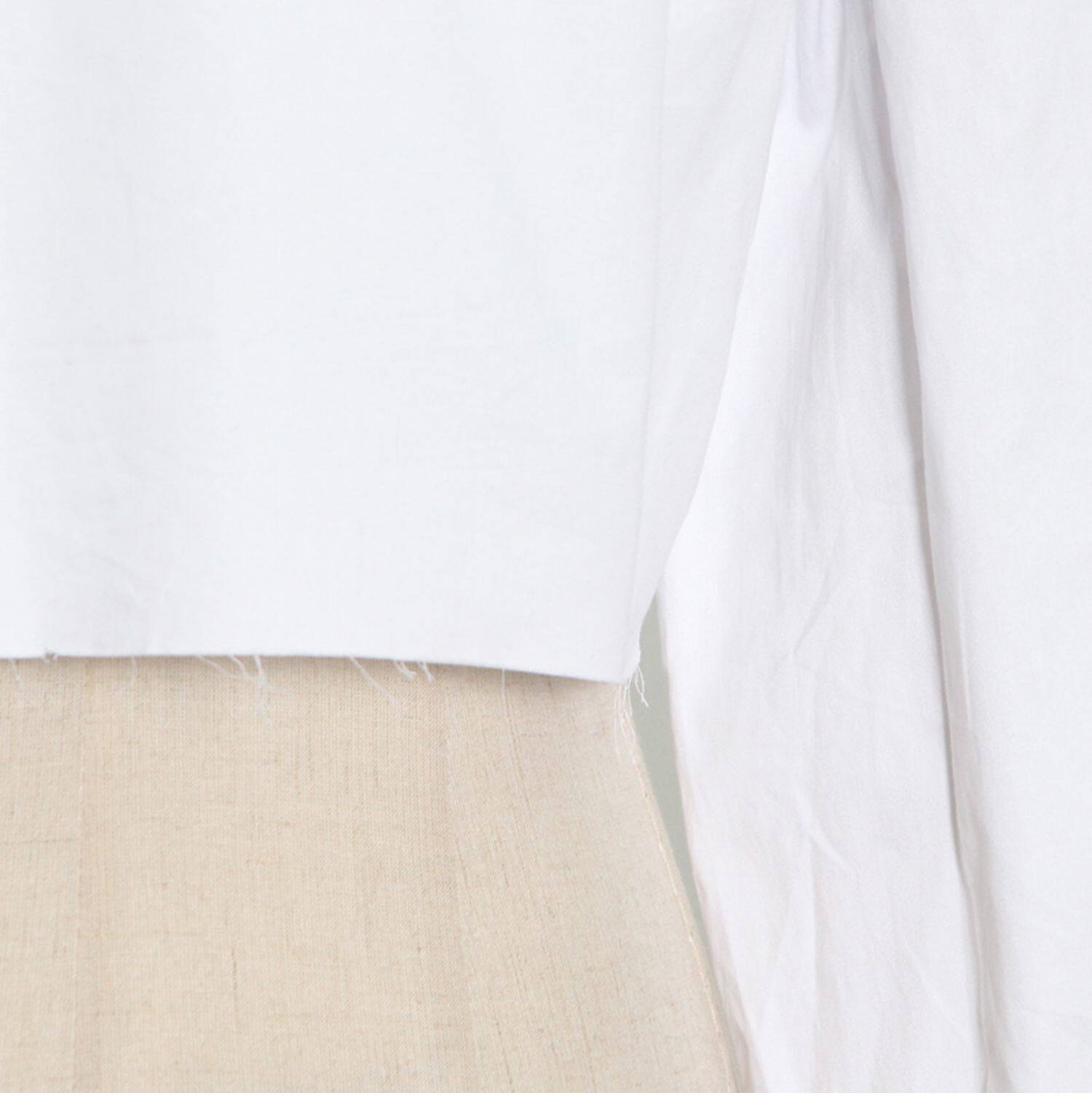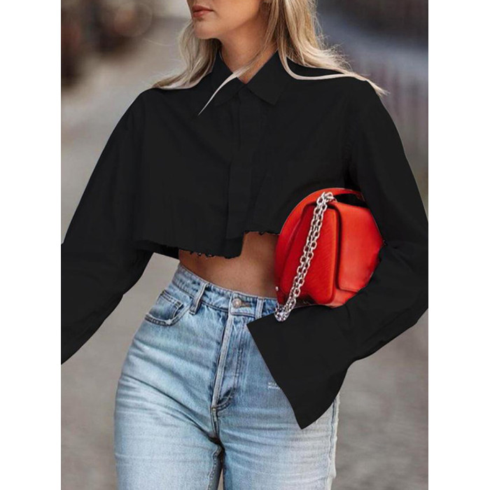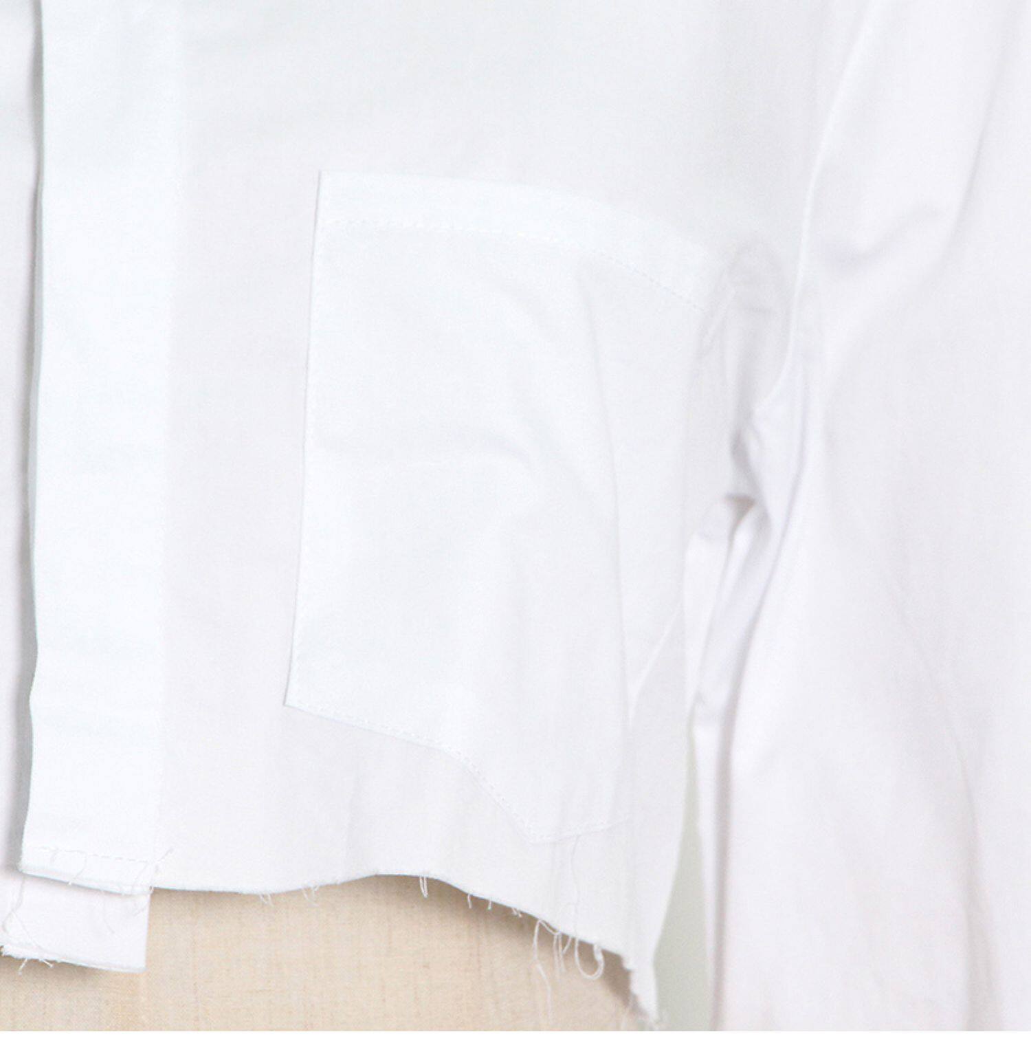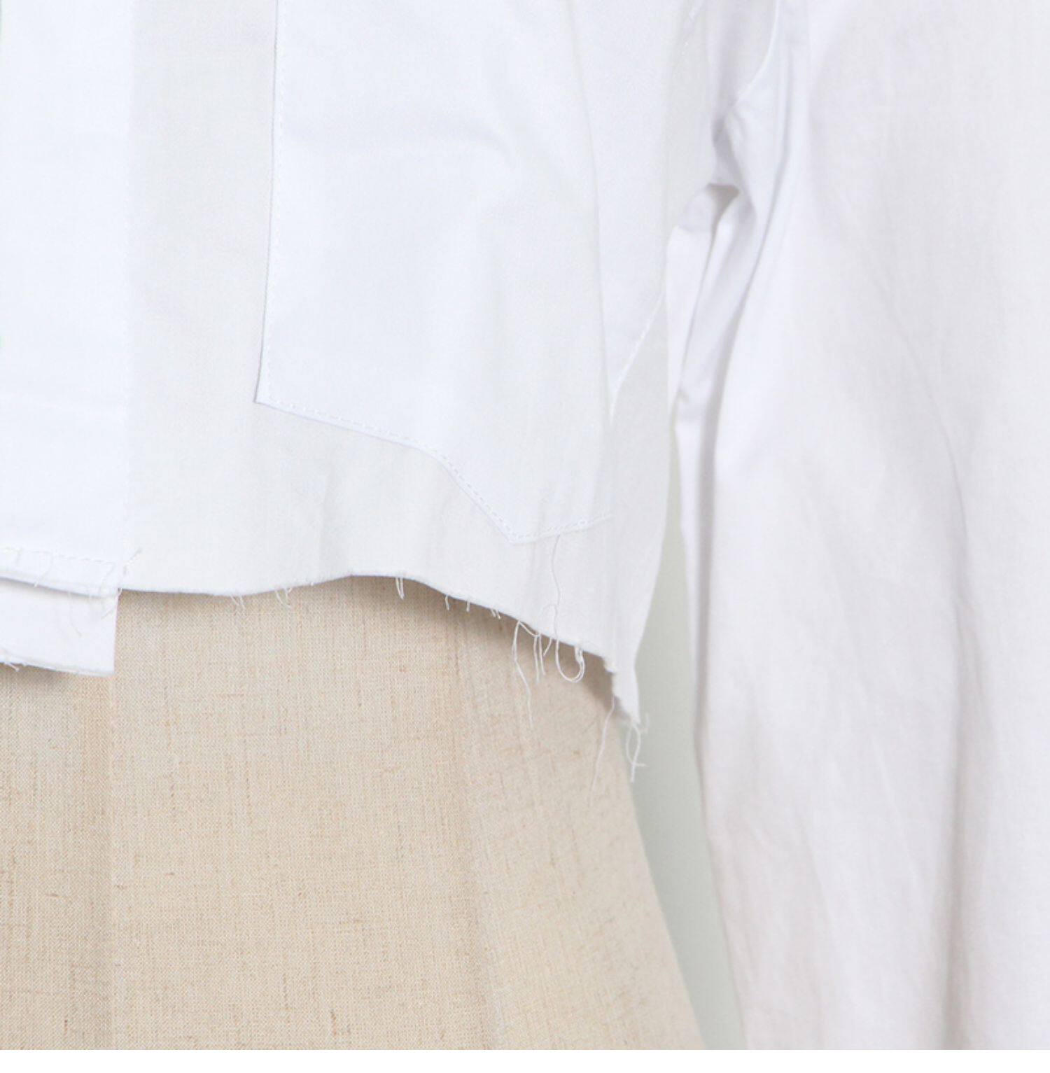 TWOTWINSTYLE歐美磨毛邊露腰短款白色襯衫女式襯衣不規則長袖上衣