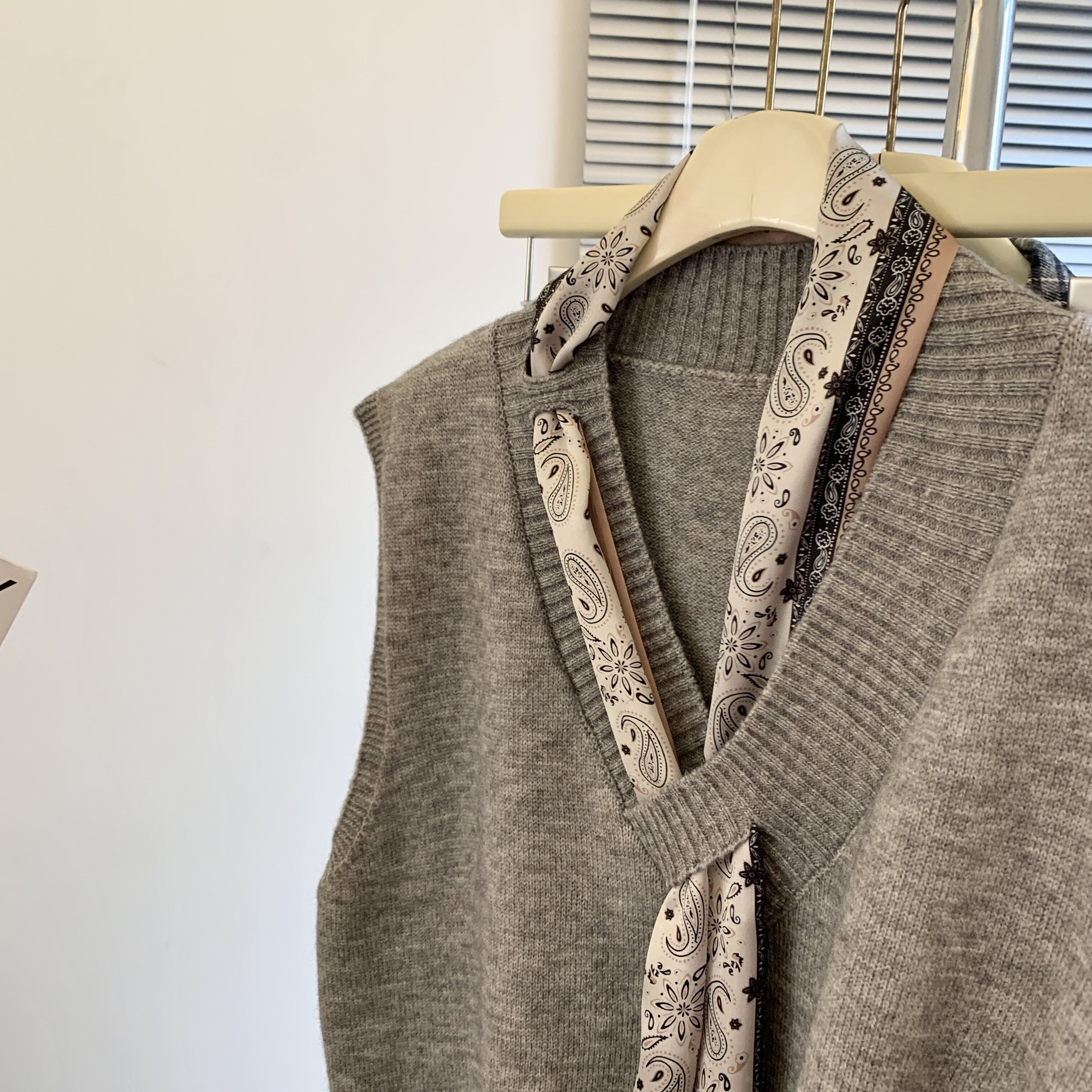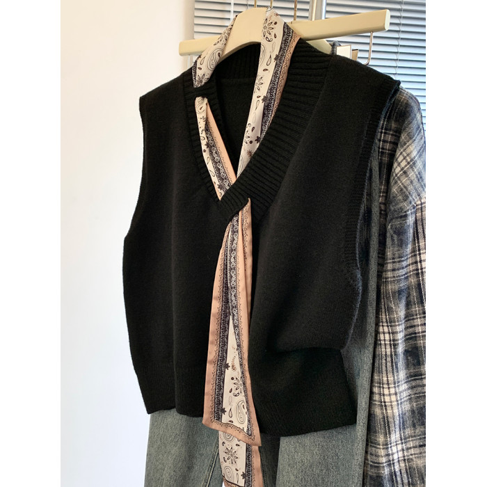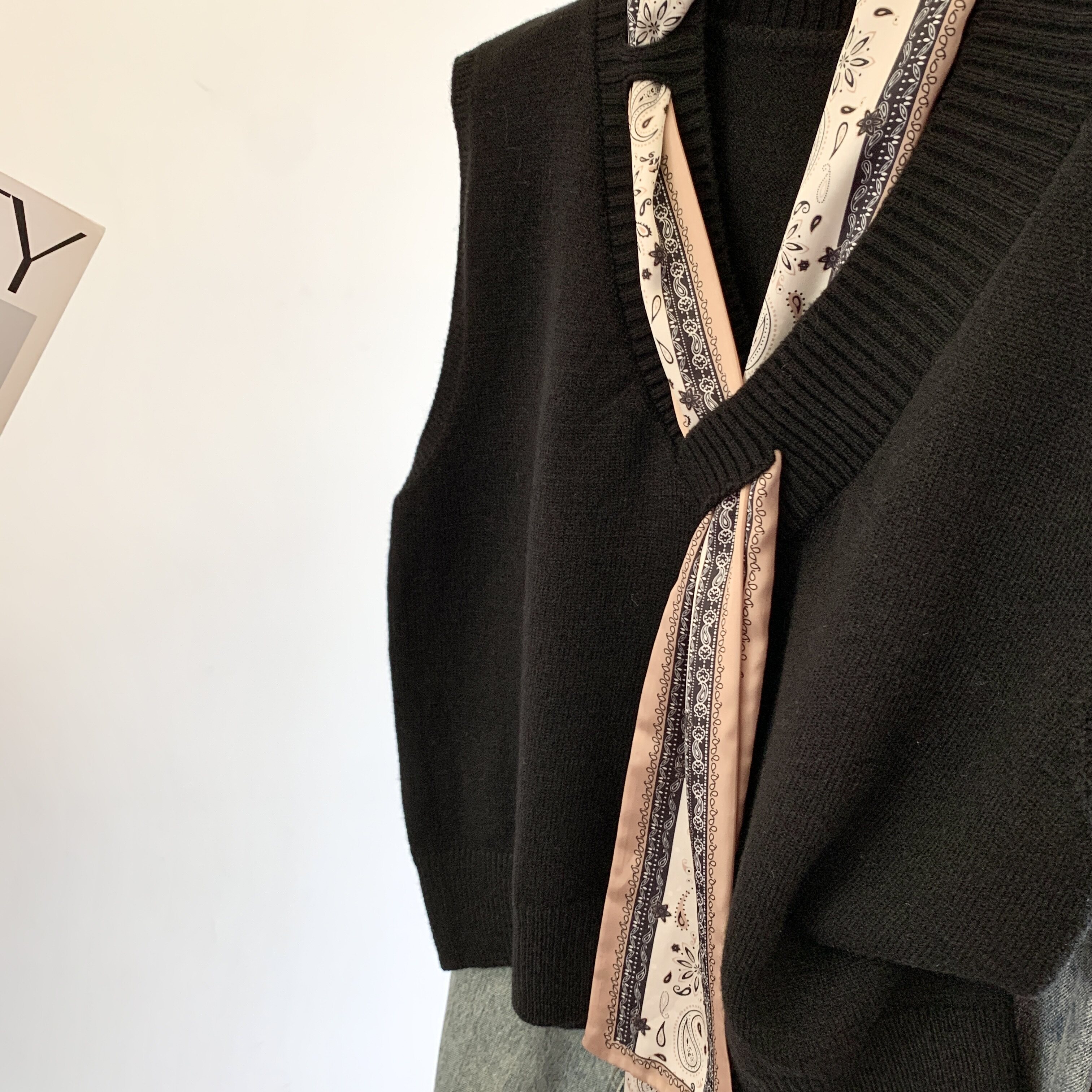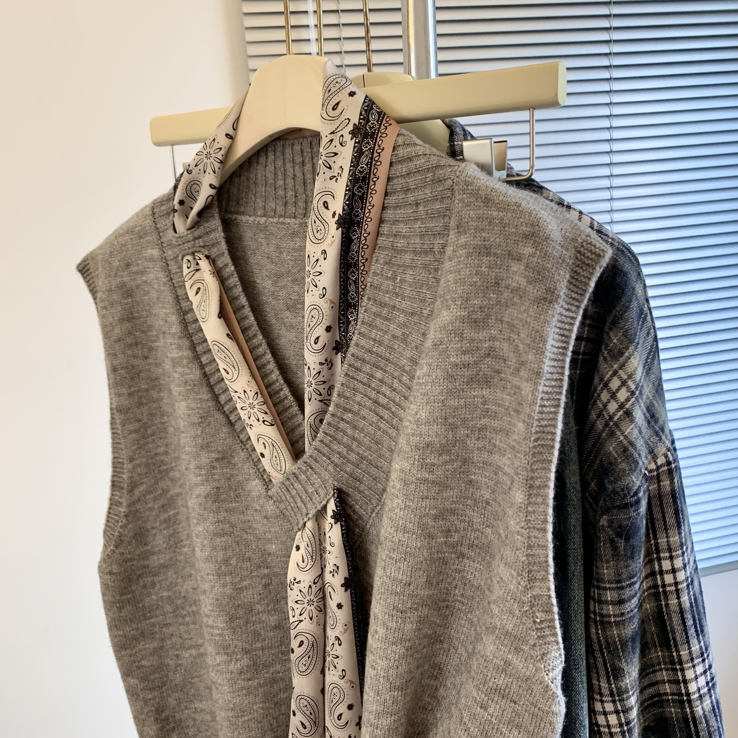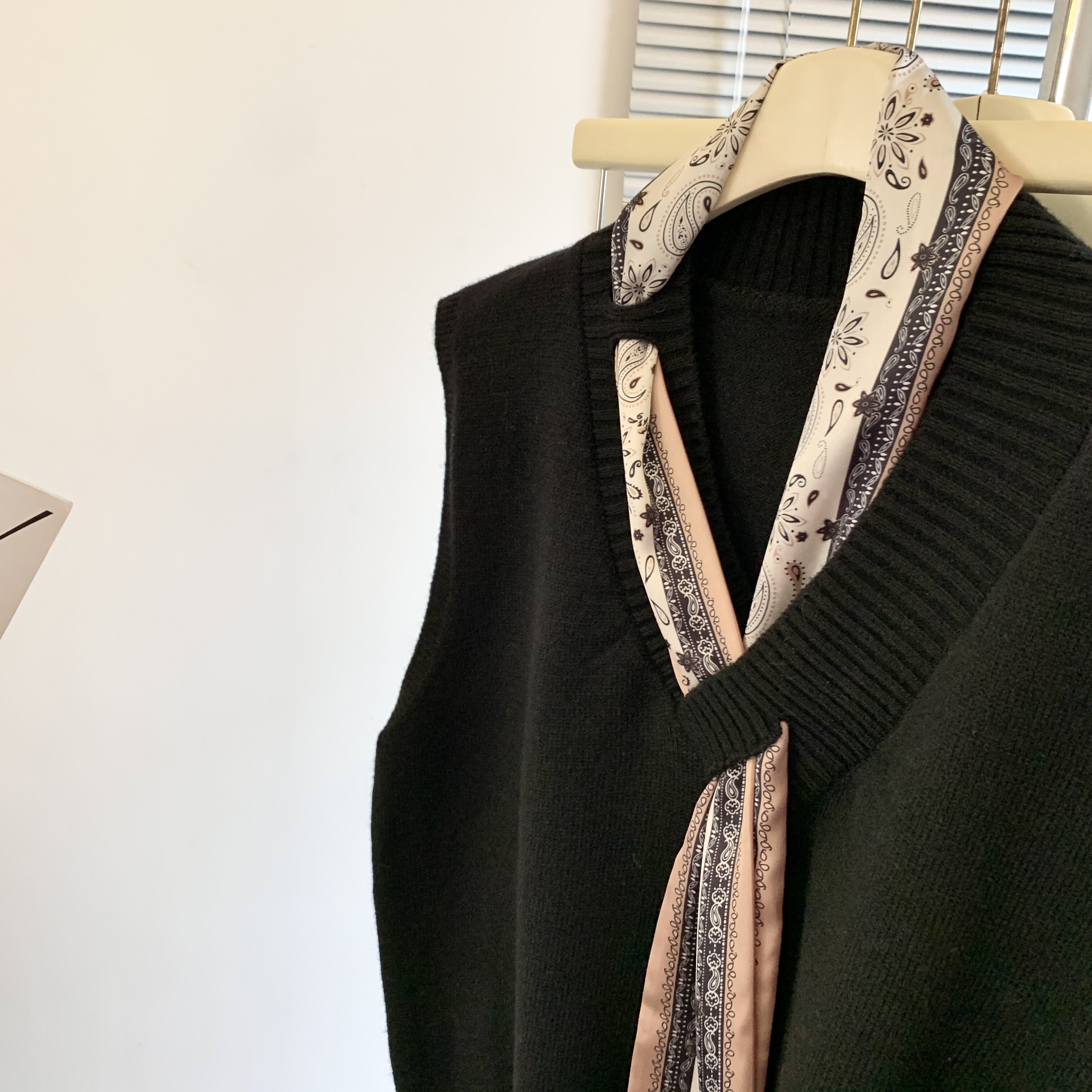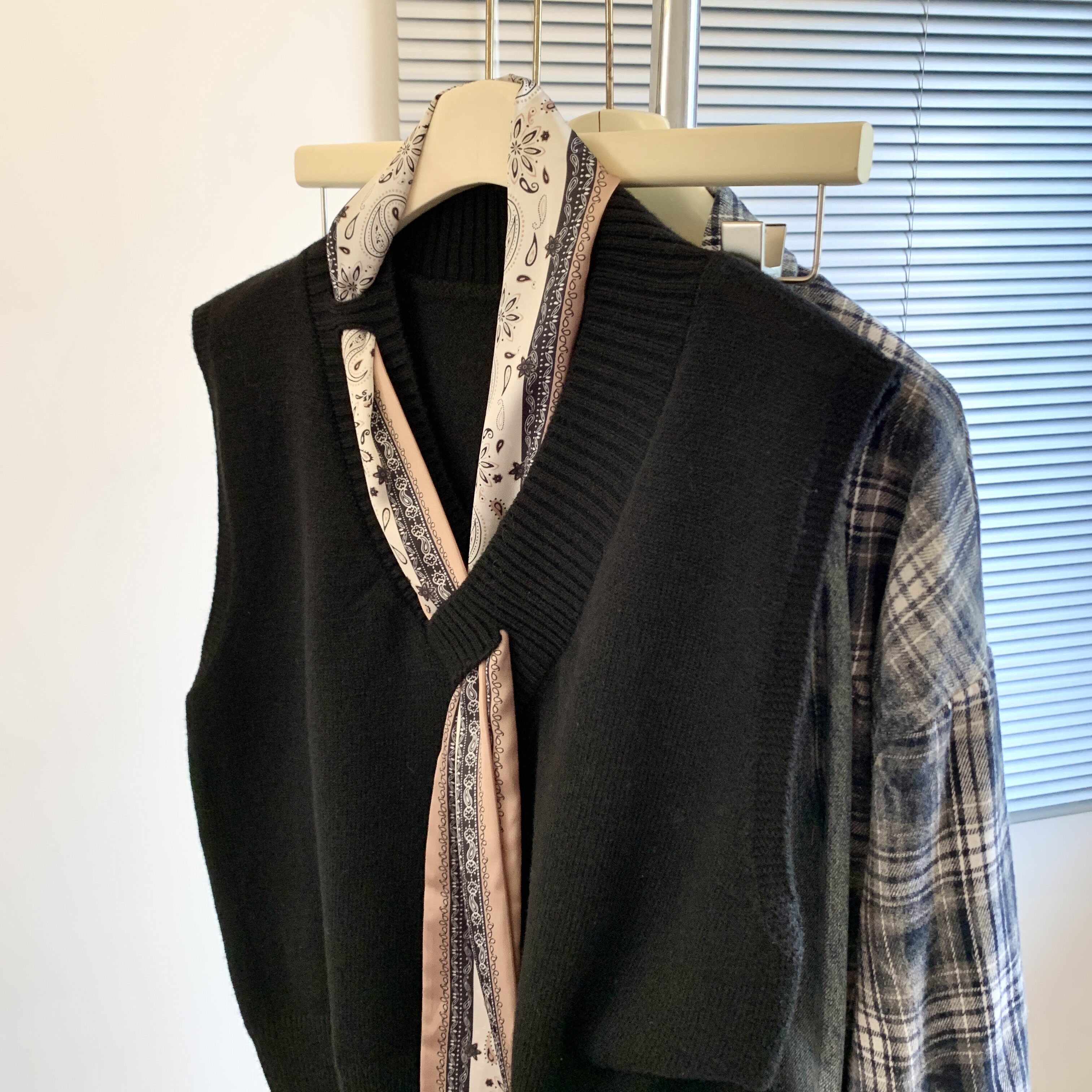 專櫃撤廻剪標設計感絲巾配飾馬甲女2025新款POLO領襯衫曡穿兩件套