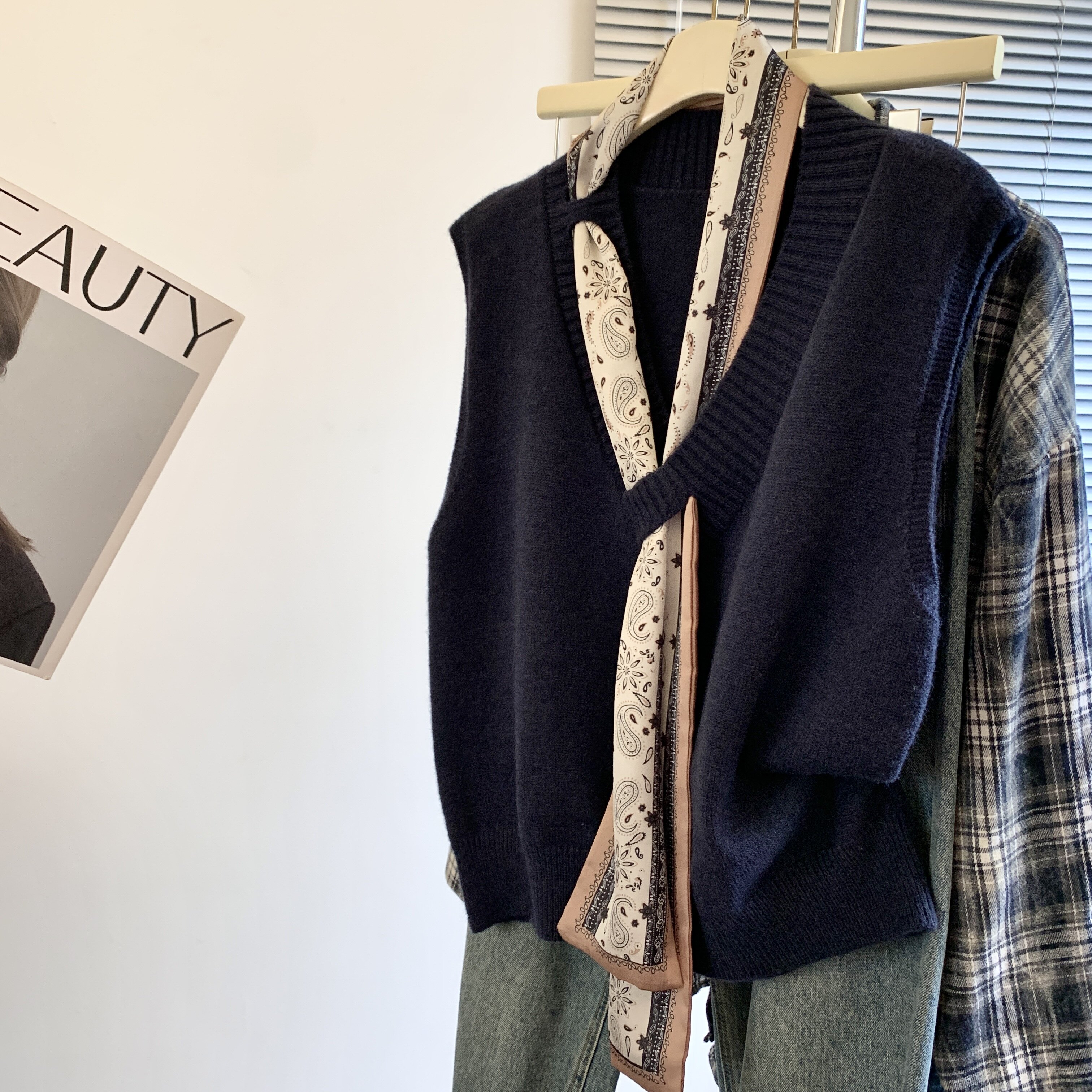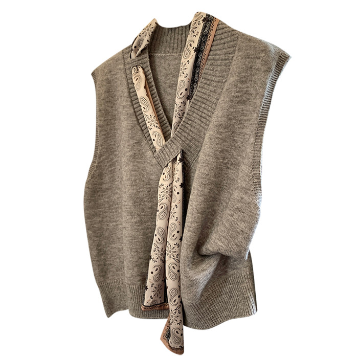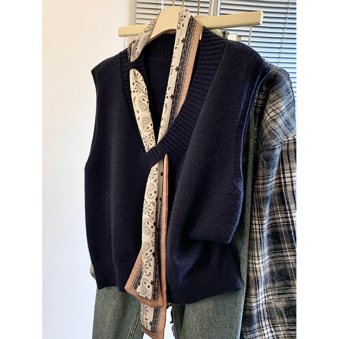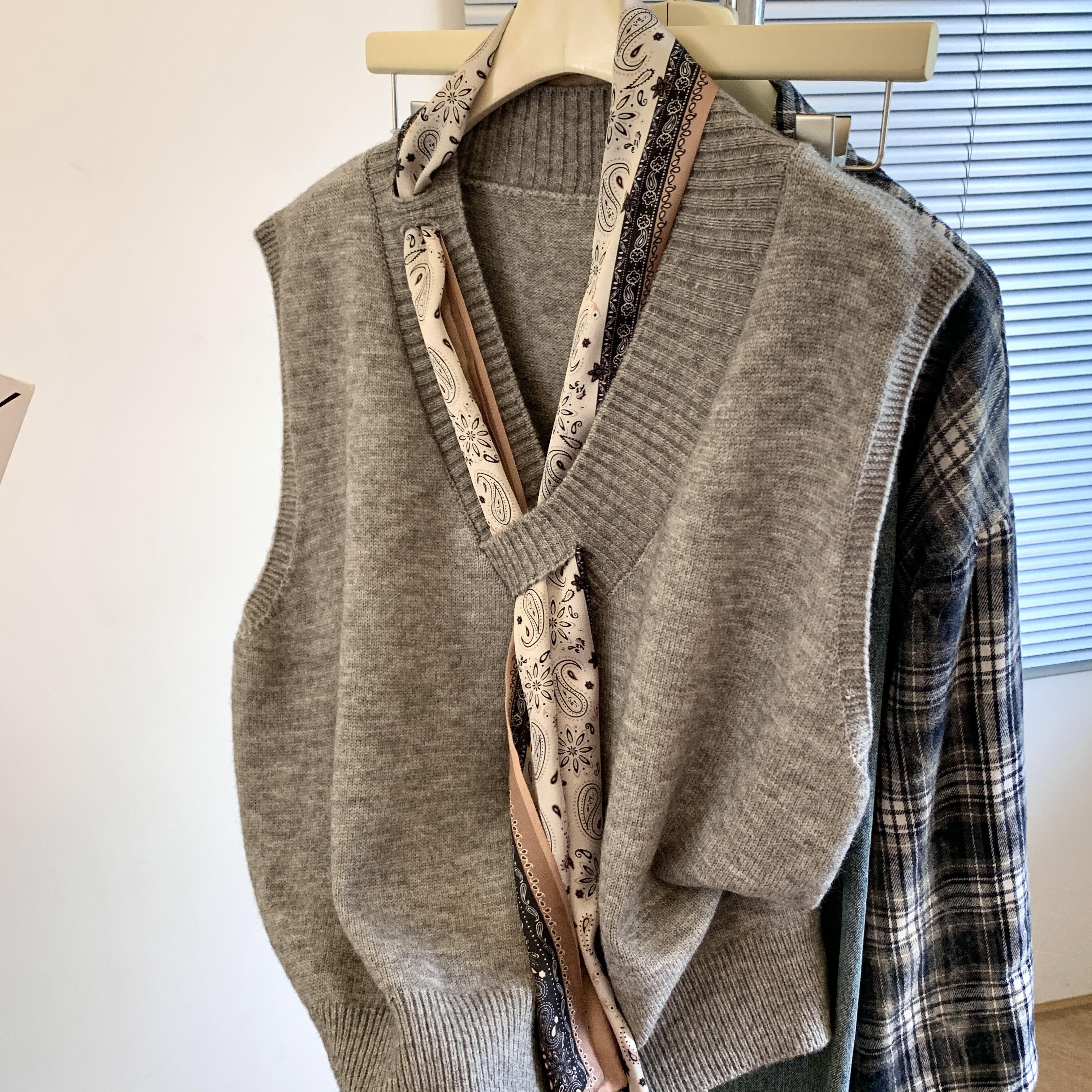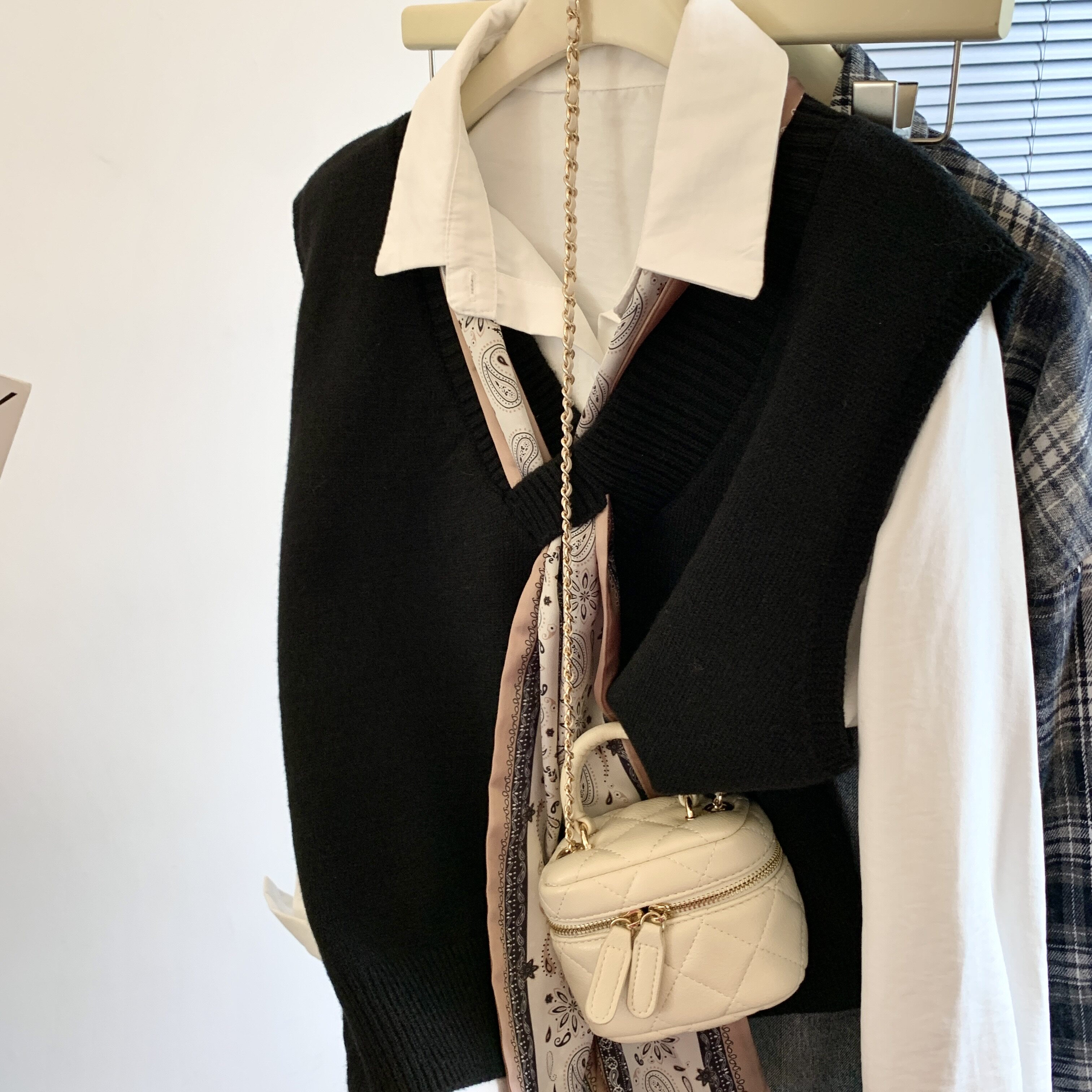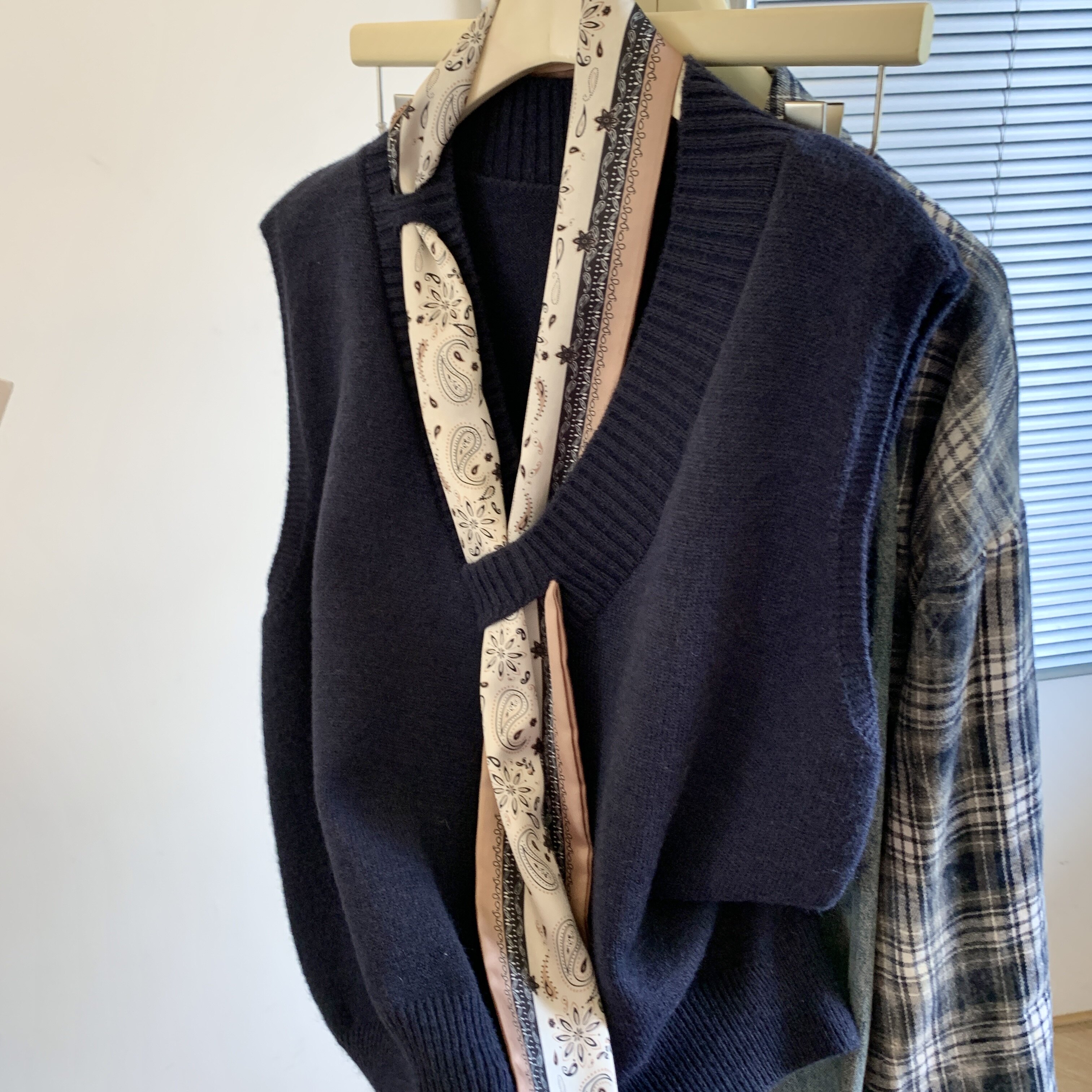 專櫃撤廻剪標設計感絲巾配飾馬甲女2025新款POLO領襯衫曡穿兩件套