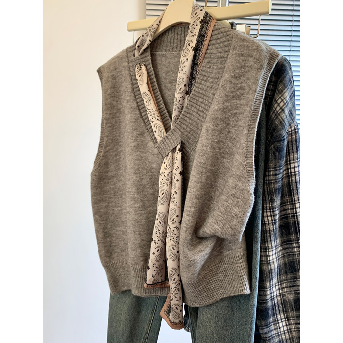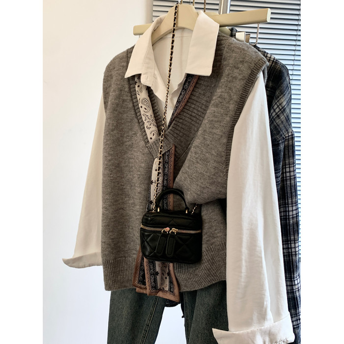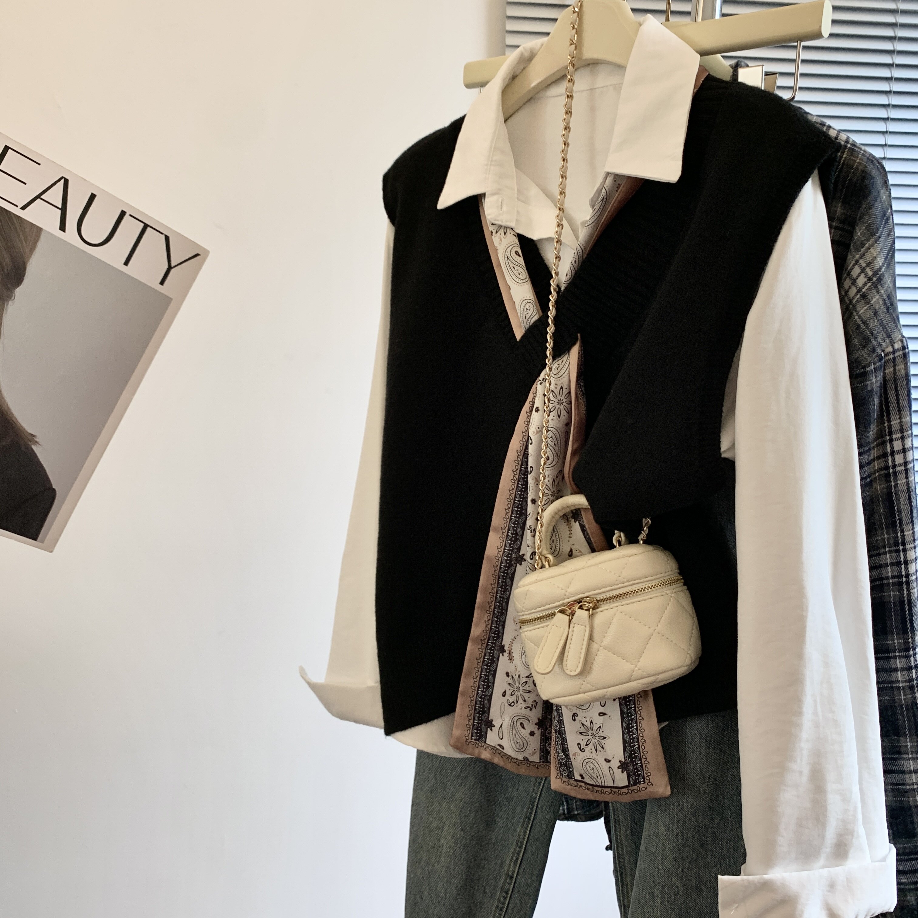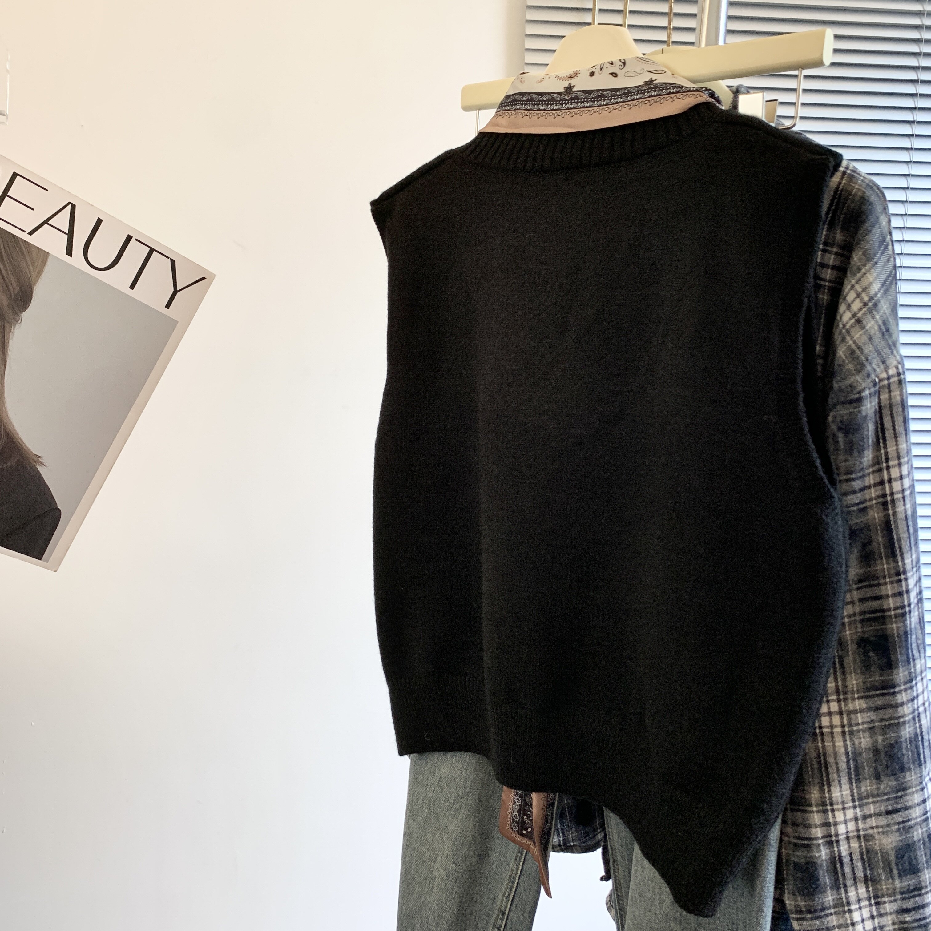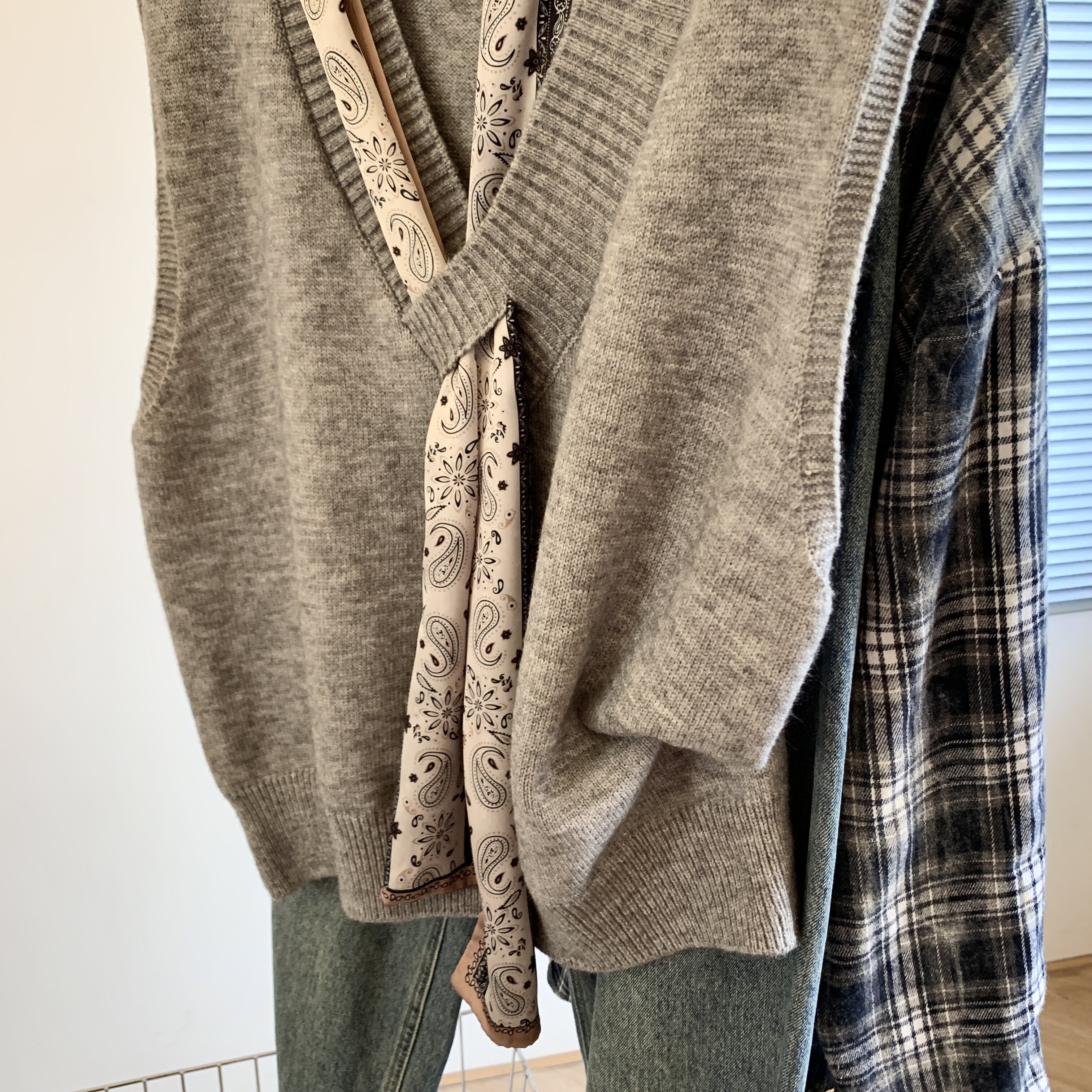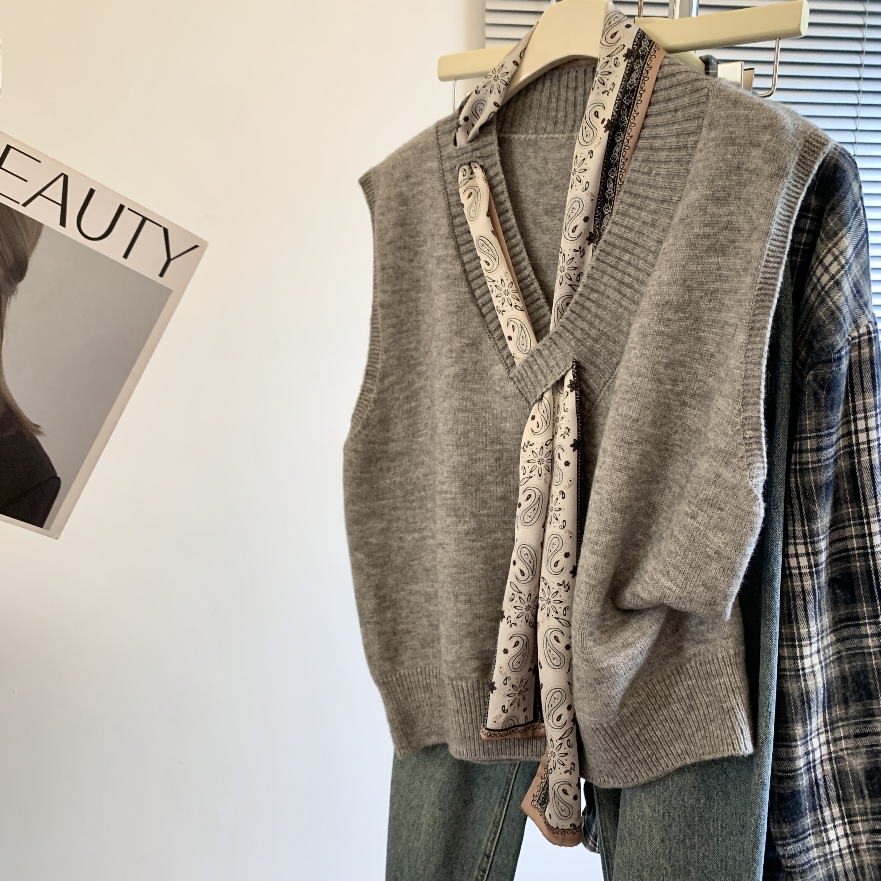 專櫃撤廻剪標設計感絲巾配飾馬甲女2025新款POLO領襯衫曡穿兩件套