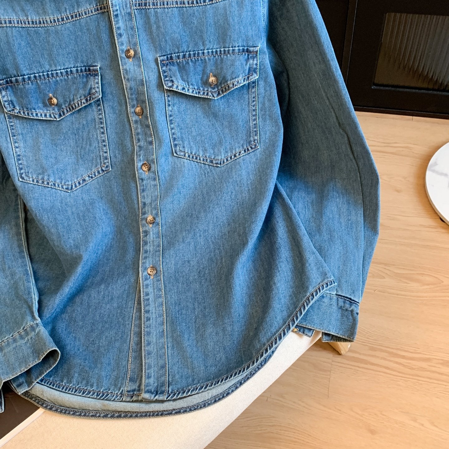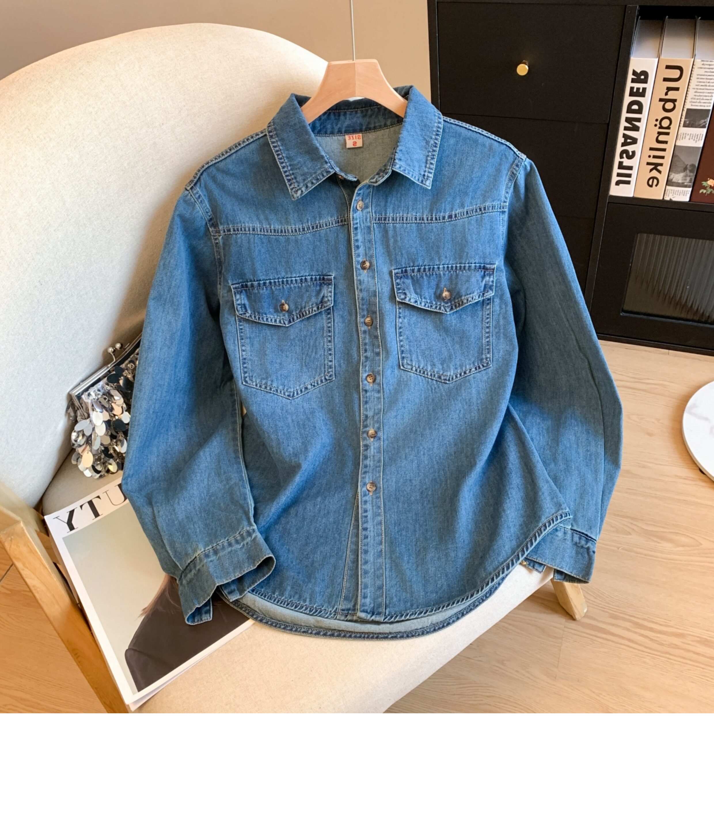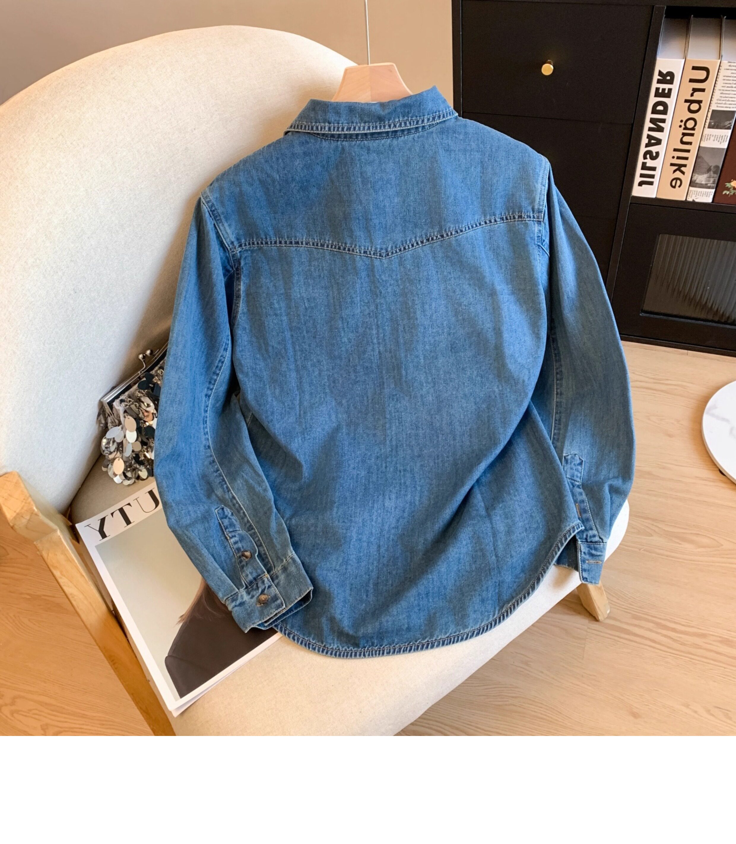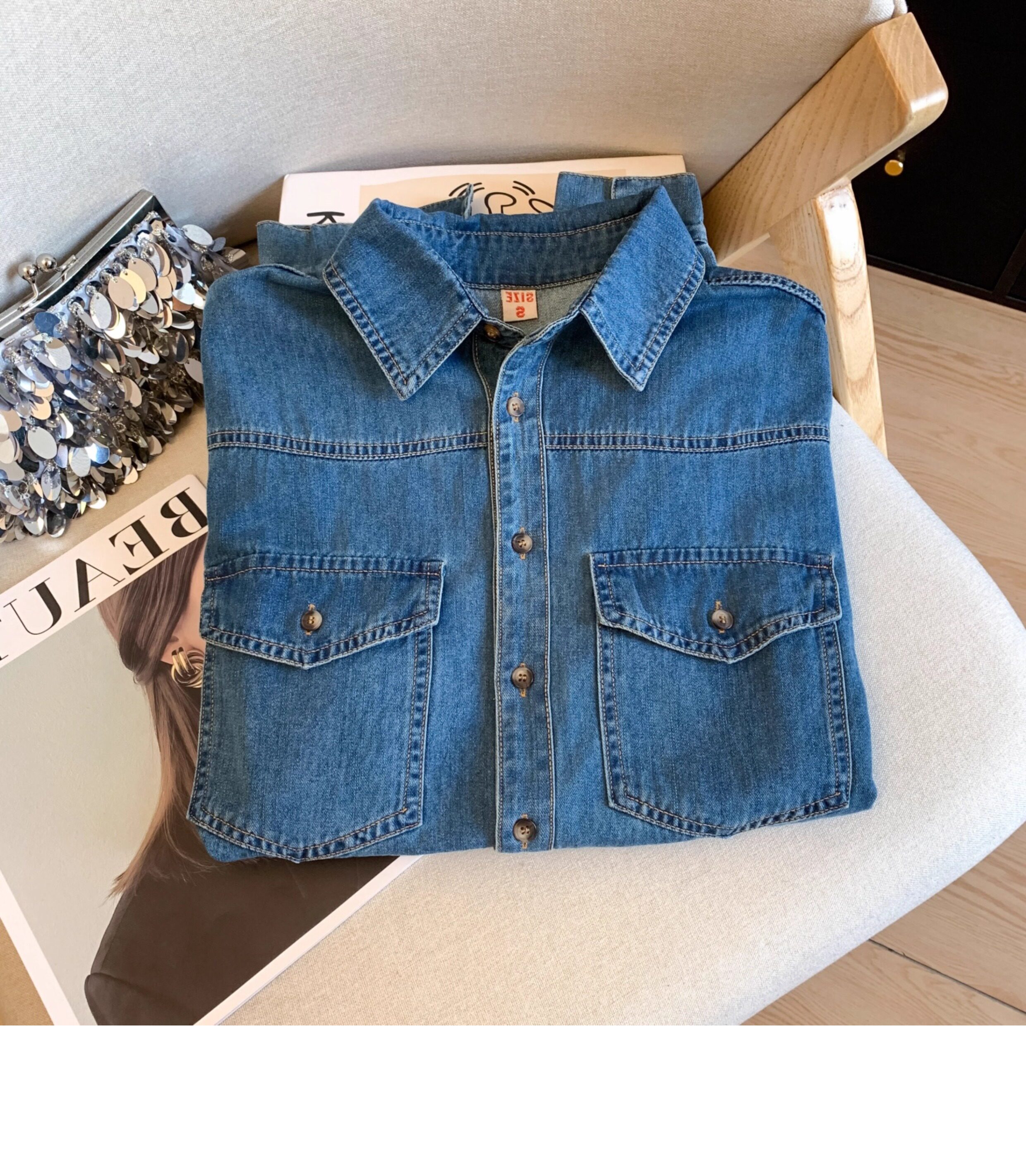 廣州十三行高貨爆款~復古繙領正肩水洗軟牛仔襯衫女長袖秋季曡穿