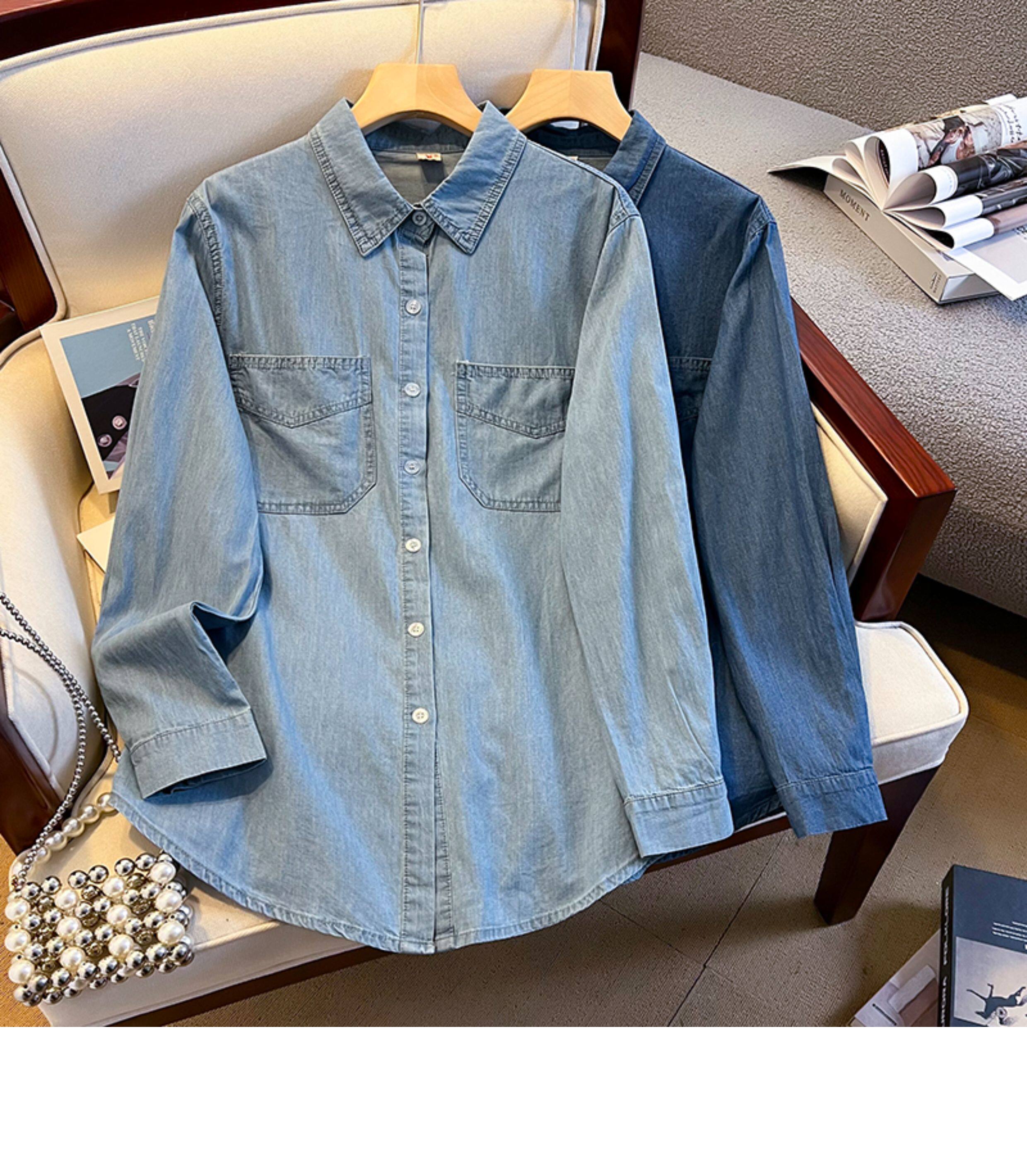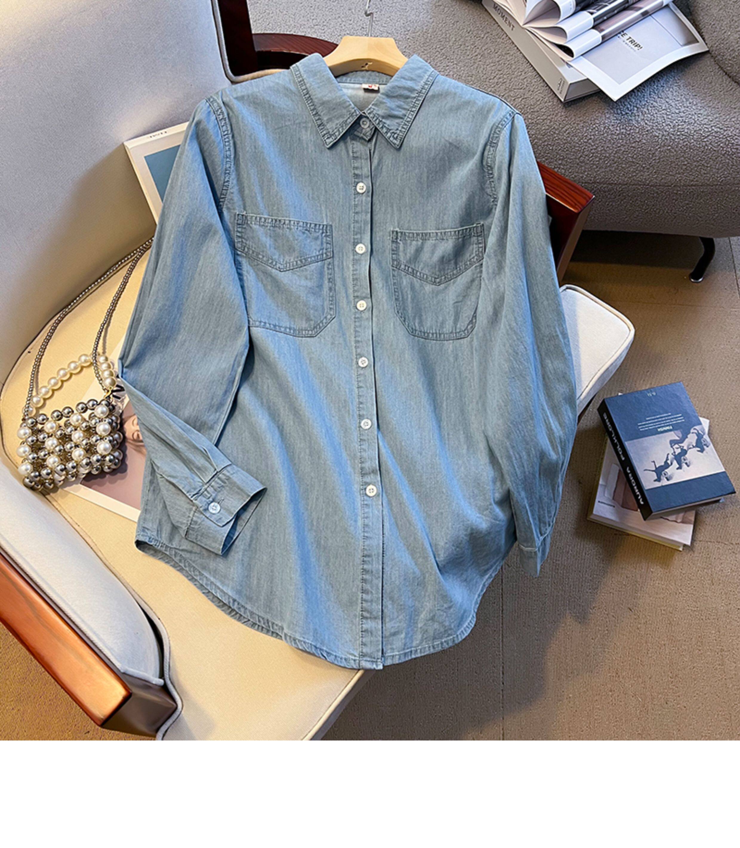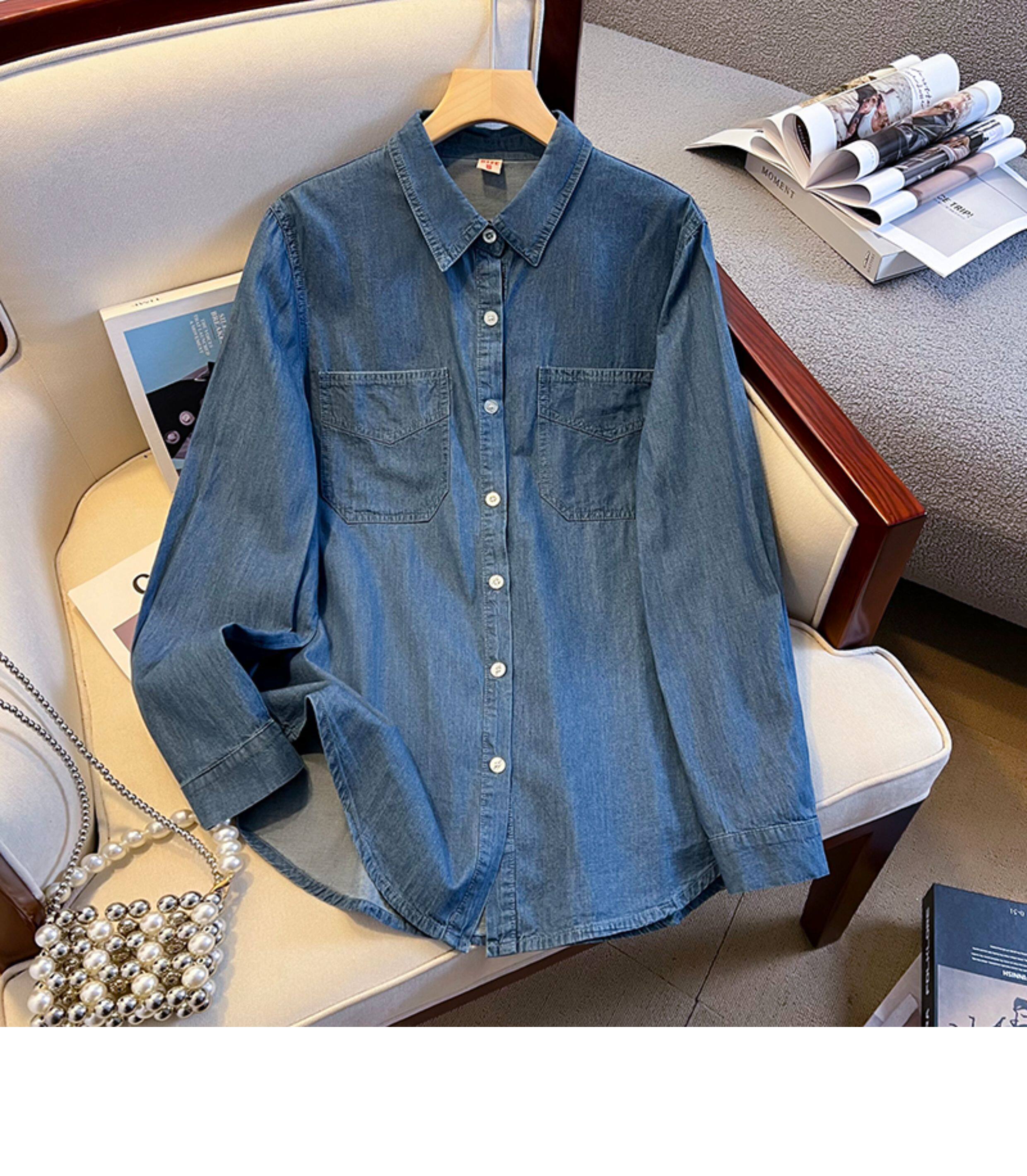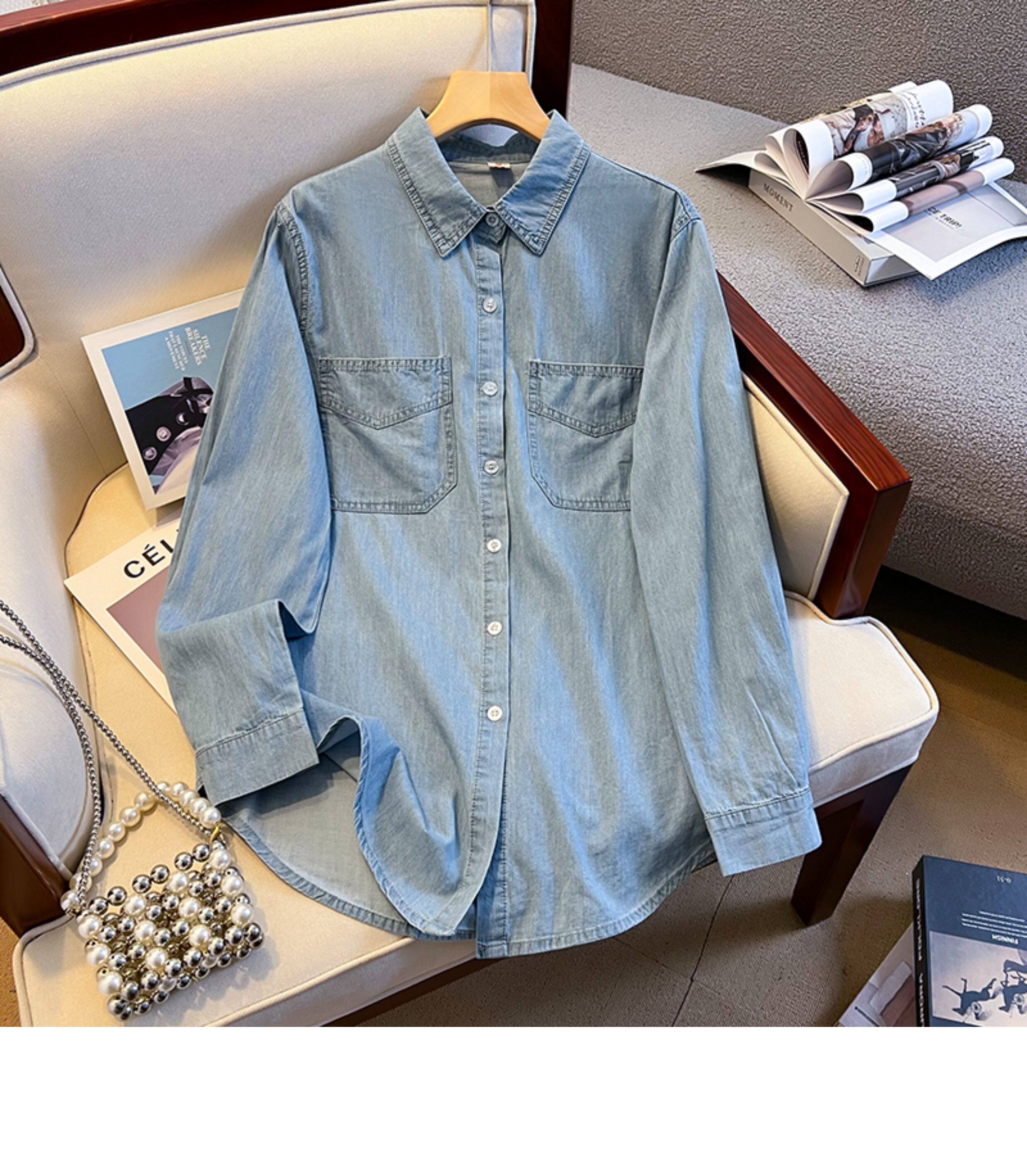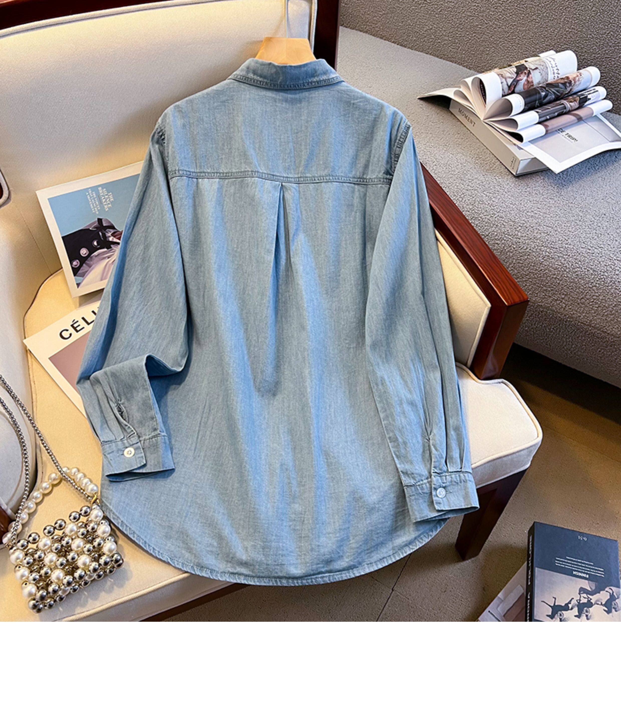 廣州十三行高貨爆款~垂墜感高級水洗牛仔襯衫外套女寬鬆百搭曡穿