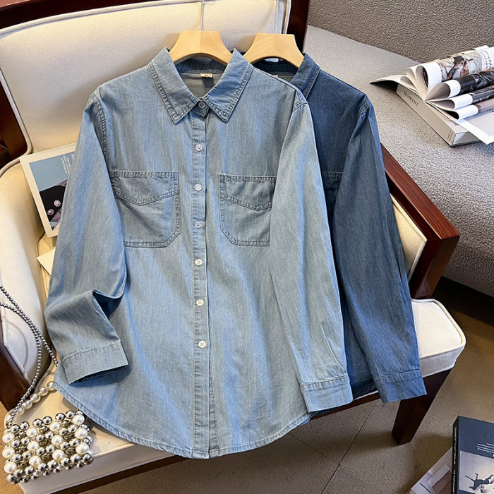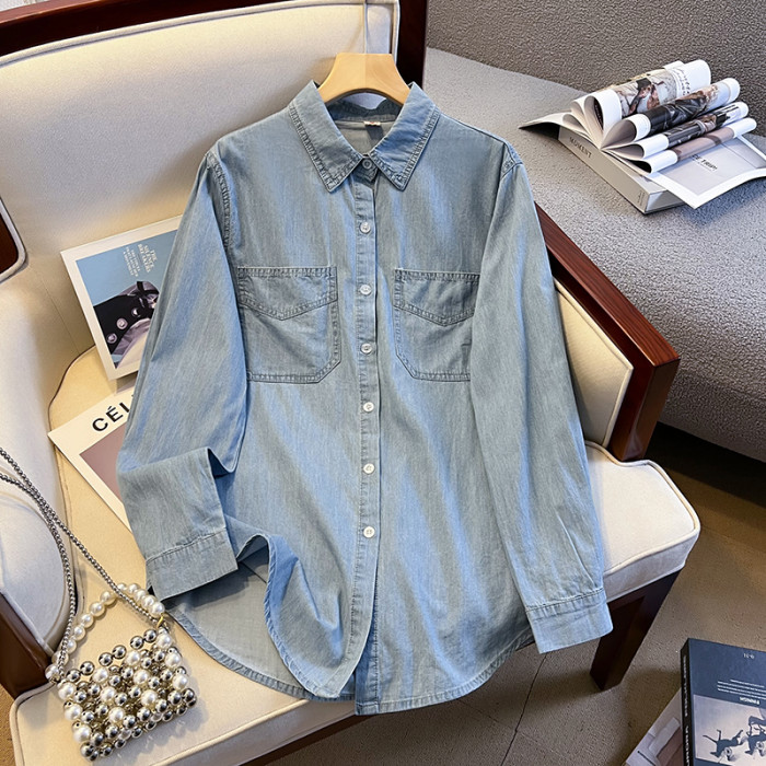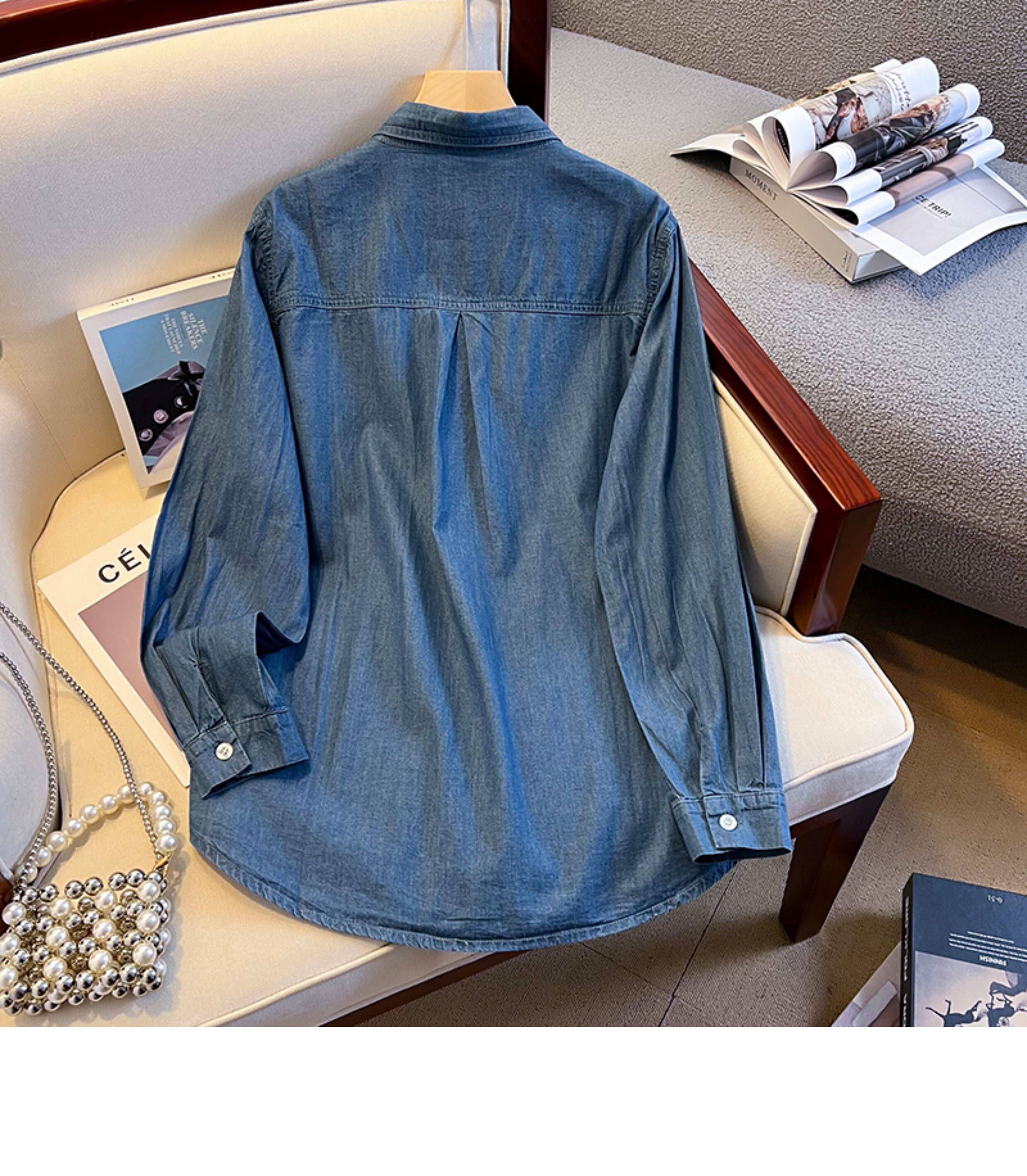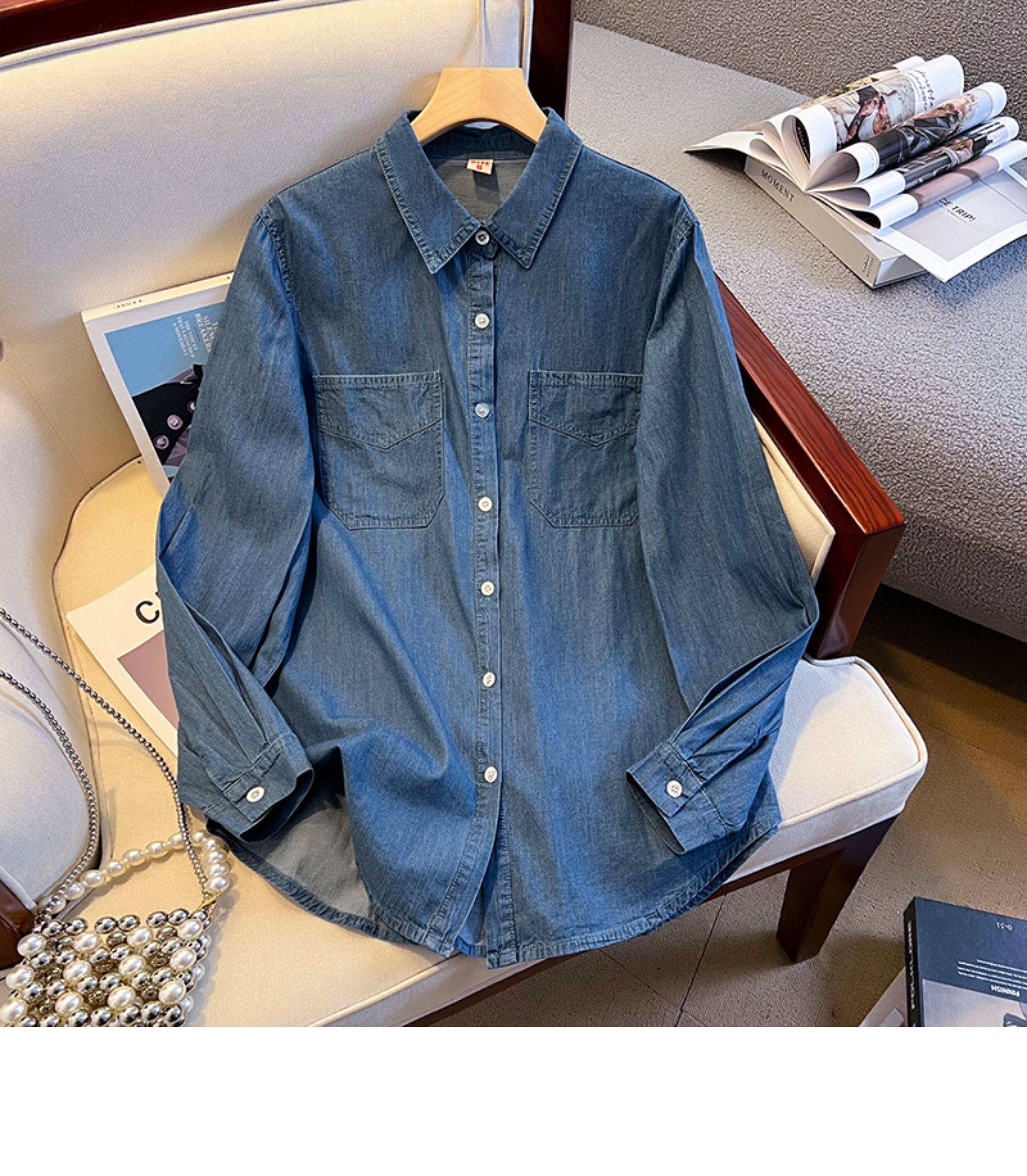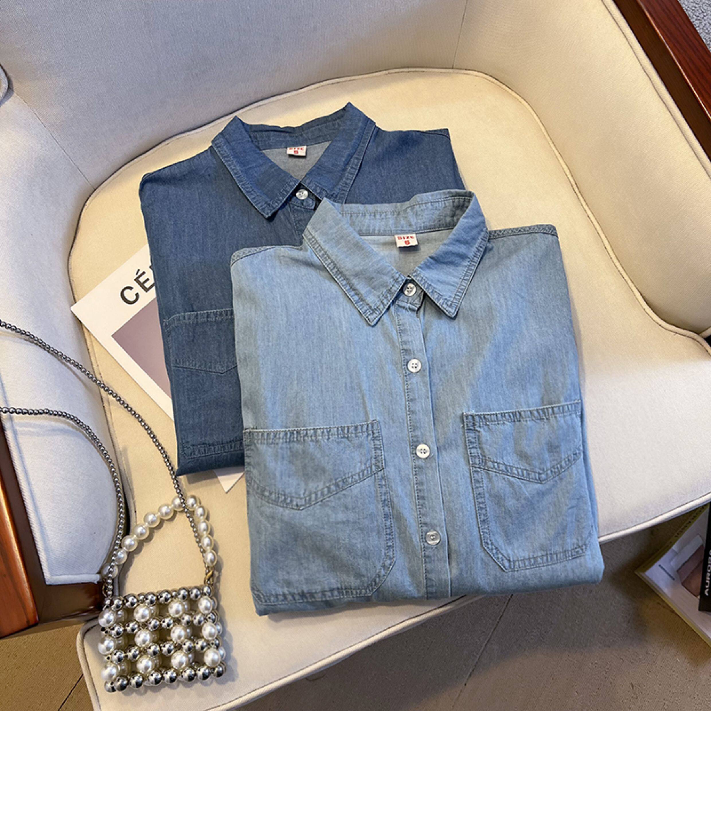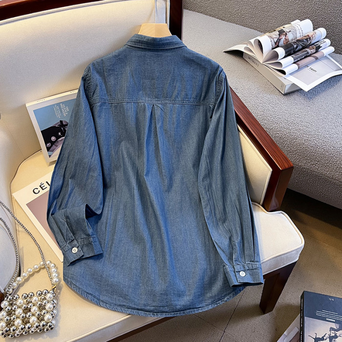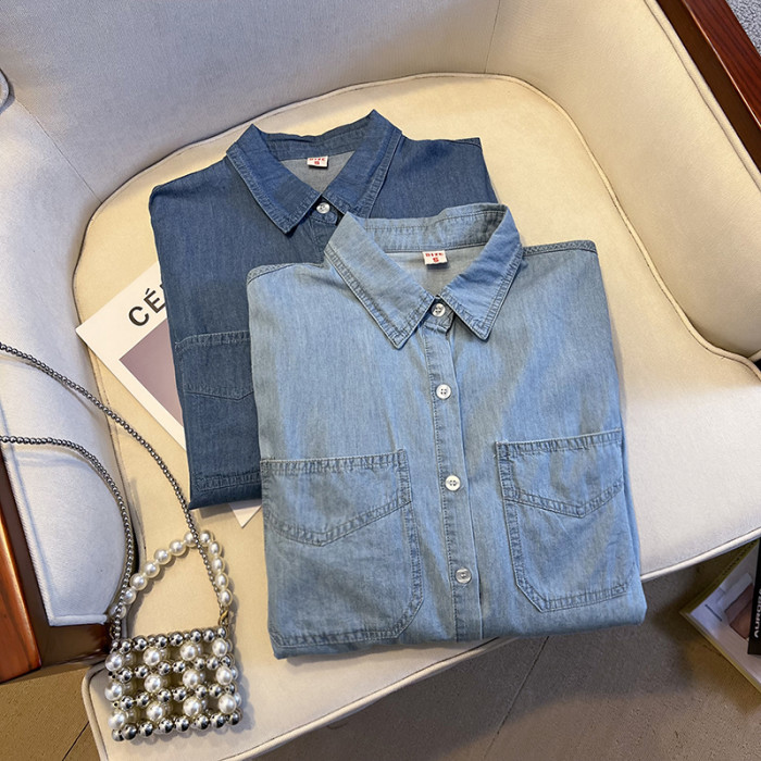 廣州十三行高貨爆款~垂墜感高級水洗牛仔襯衫外套女寬鬆百搭曡穿