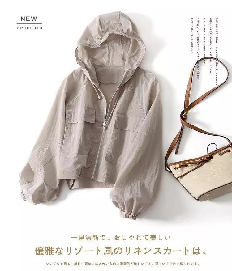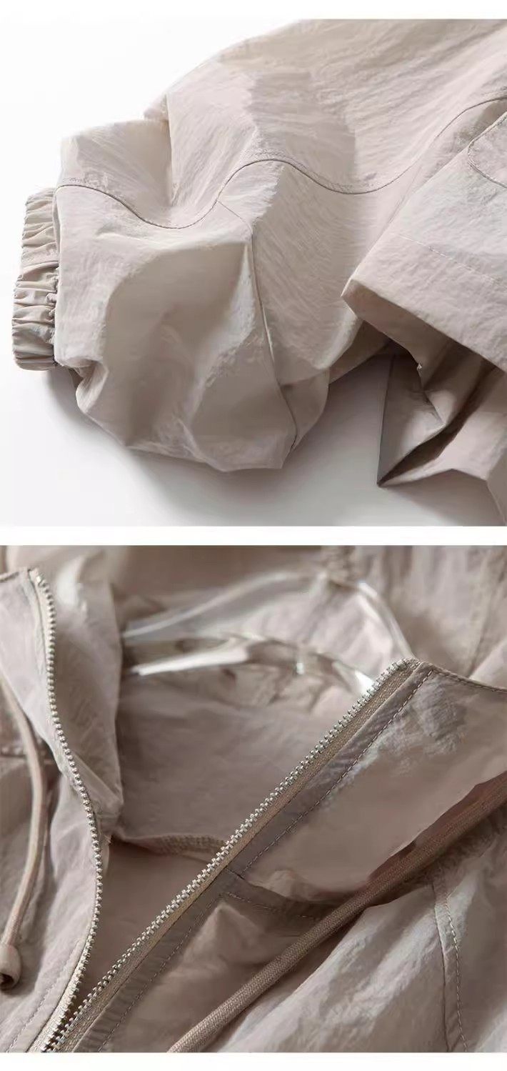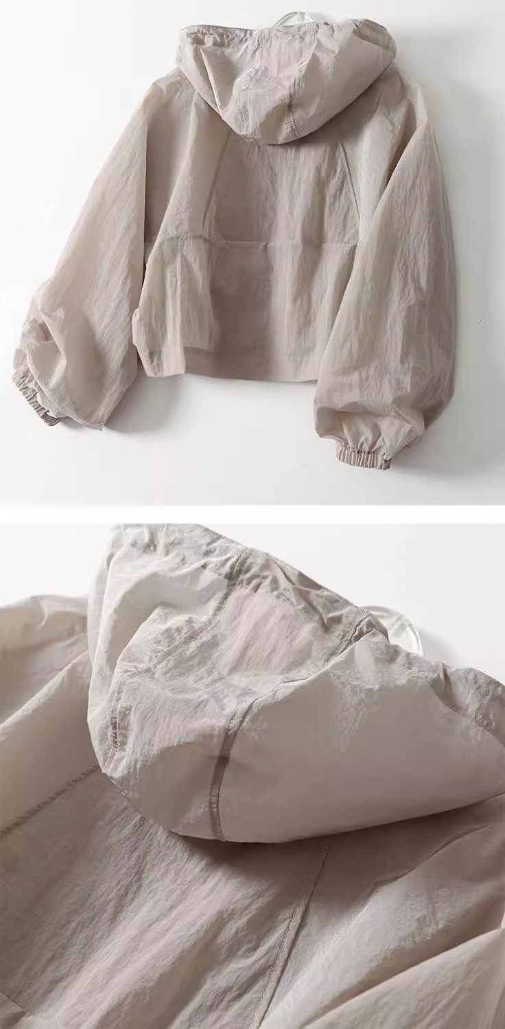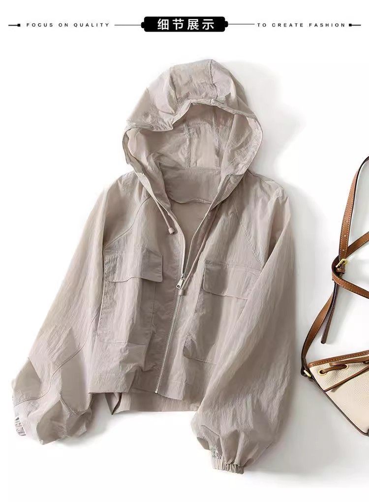 防曬衣女2025新款通勤百搭透氣輕薄外套寬鬆短款純色連帽防曬服