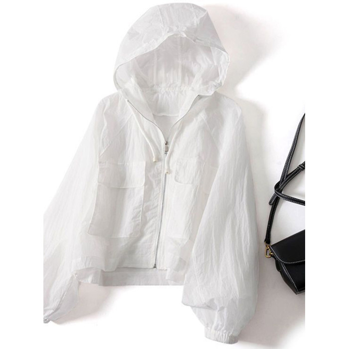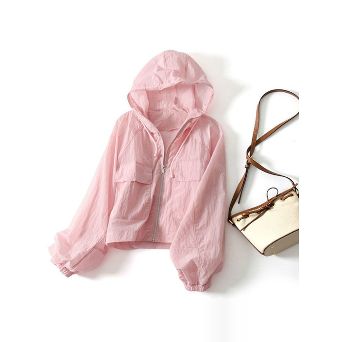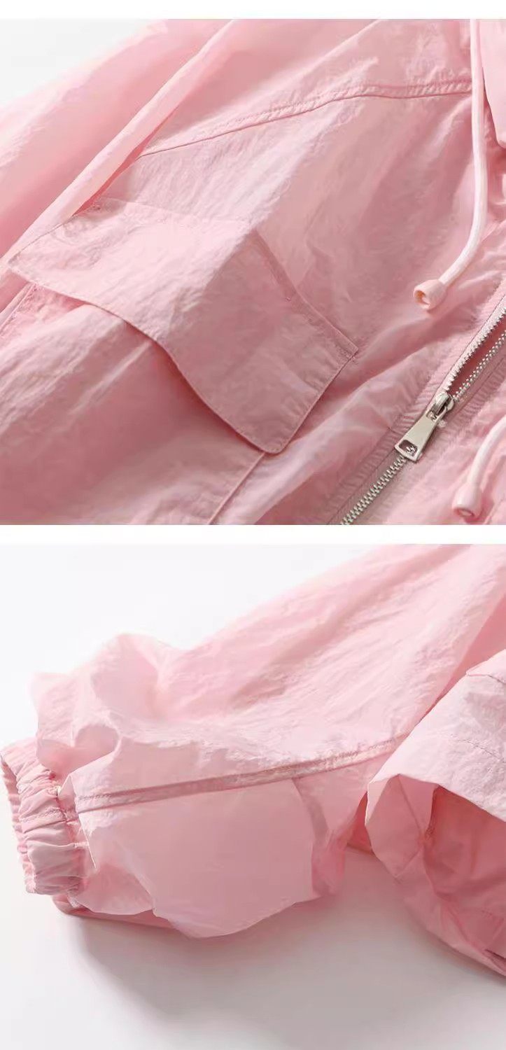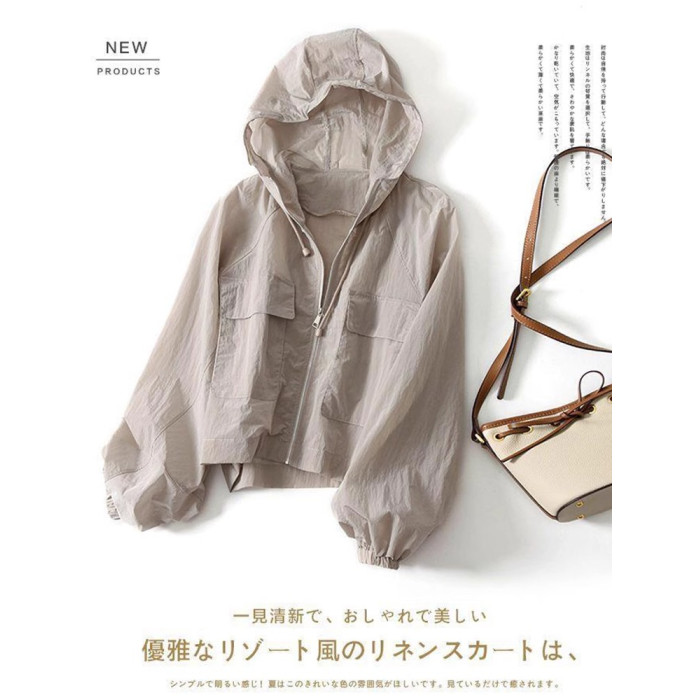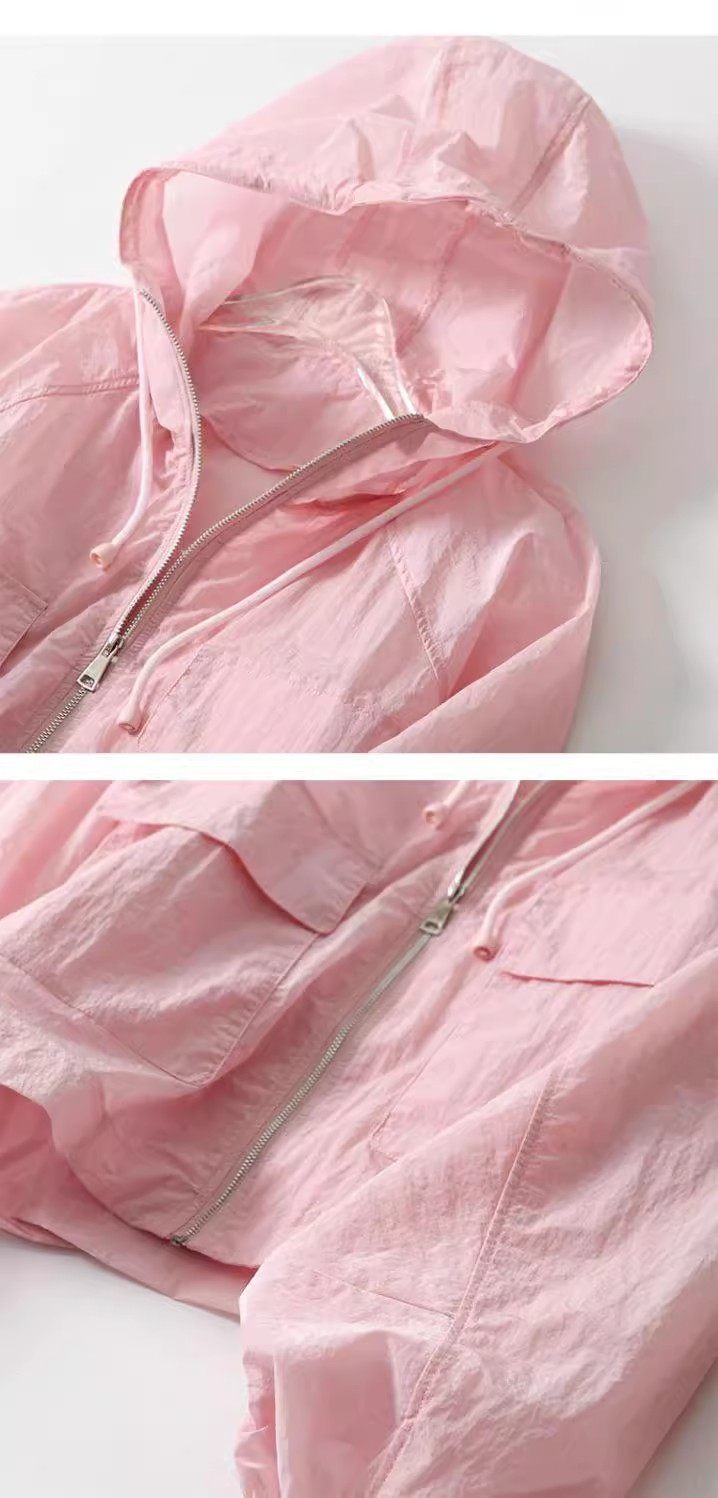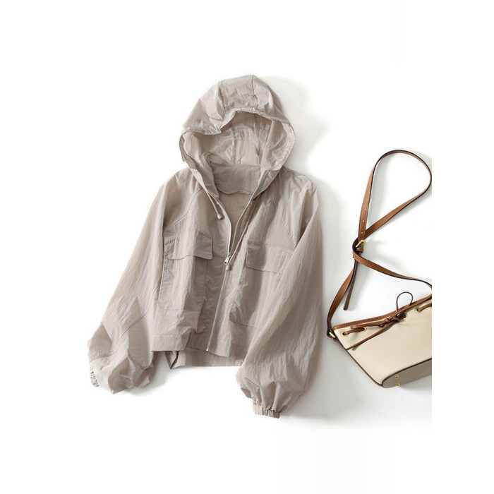 防曬衣女2025新款通勤百搭透氣輕薄外套寬鬆短款純色連帽防曬服